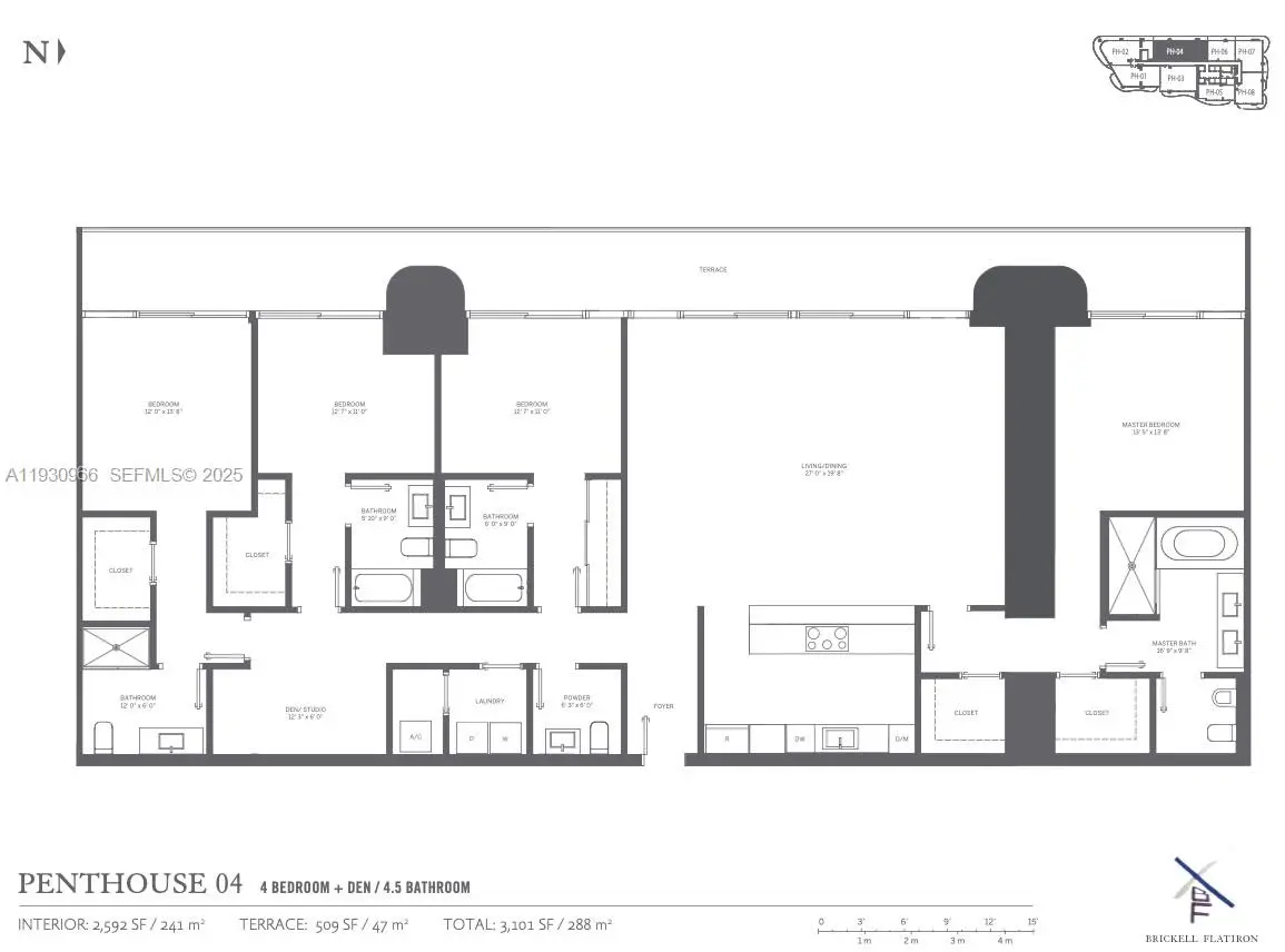 Penthouse 5904 at Brickell Flatiron offers a rare opportunity to own a truly exceptional turn-key residence high above the heart of Brickell. Perched on the 59th floor, this penthouse enjoys unparalleled, unobstructed sunset views stretching as far as the eye can see, delivering an elevated living experience for which the Flatiron is renowned. The residence is one of the largest in the building with the most ample floor plan, offering 2,418 square feet of interior space with 4 bedrooms, 4 full bathrooms, and 1 half bath. Professionally designed and furnished by renowned interior designer Steven G, the unit features curated finishes, refined textures, and a cohesive modern aesthetic throughout. Offered fully furnished, the residence has had only one owner and has been used sparingly as a second home, presenting in pristine, like-new condition. Developed by acclaimed builder Hugo Colombo, Brickell Flatiron is celebrated for its uncompromising construction quality, architectural sophistication, and one of the most impressive amenity collections in Miami. Residents enjoy resort-style indoor and outdoor amenities, world-class fitness and wellness spaces, and a level of service that defines luxury urban living. The offering includes two assigned parking spaces and valet, adding both convenience and value. This penthouse reflects thoughtful design, comfort, and sophistication—ideal for a discerning buyer seeking a turnkey luxury home in one of Brickell’s most iconic towers.