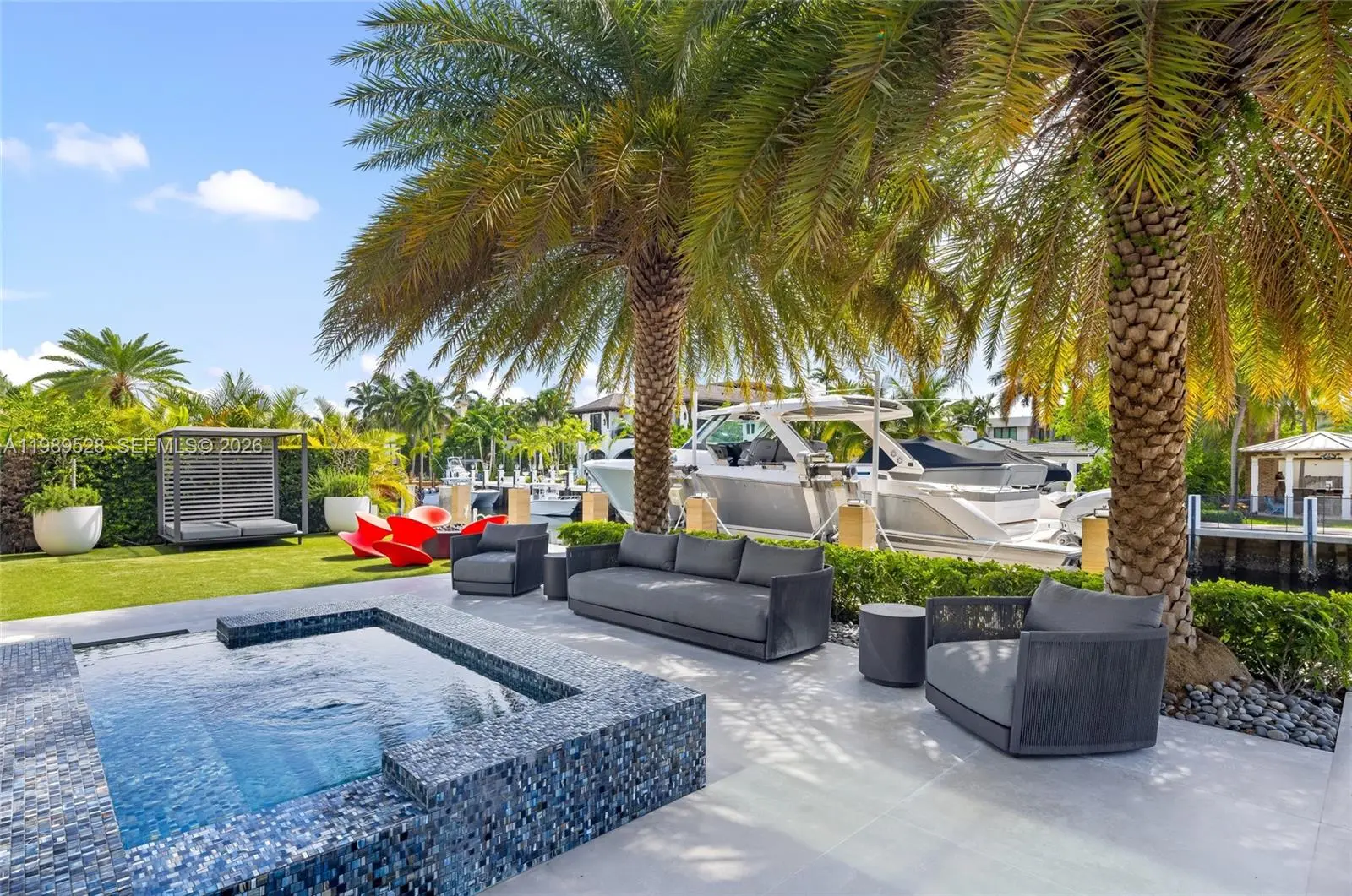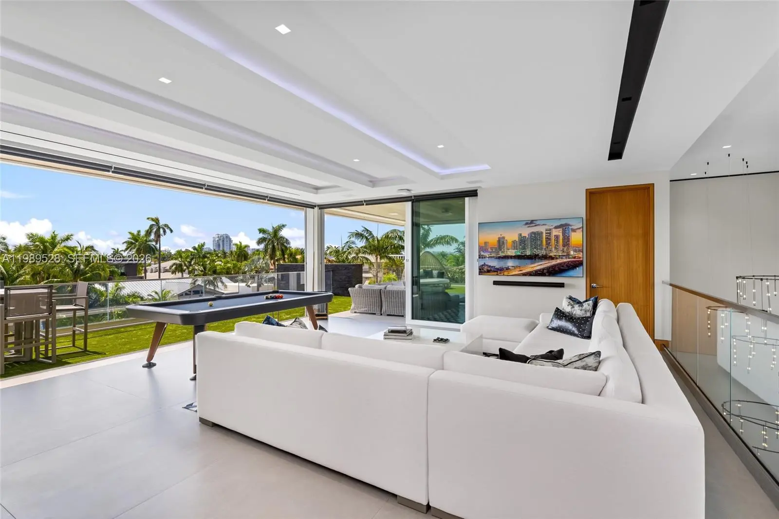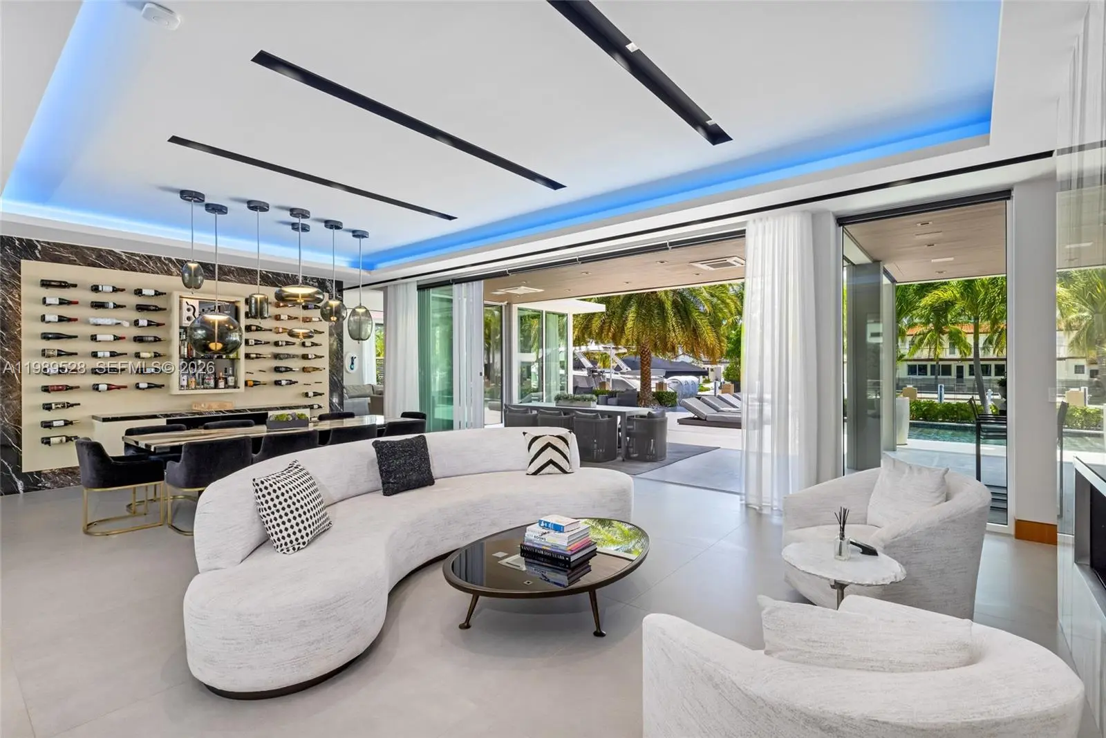 Positioned along 131 ft of prime deep-water frontage within Fort Lauderdale’s coveted Las Olas Isles, 650 Royal Plaza is a residence defined by scale, precision, and quiet grandeur. Set on a 15,720 sq ft lot along a wide canal with no fixed bridges, the property offers immediate ocean access and the ability to accommodate substantial vessels. Spanning over 9,200 interior sq ft, the home unfolds with intention. Seven bedrooms, eight full bathrooms, and two bathrooms are thoughtfully distributed across a layout that balances openness with privacy. Voluminous living areas are framed by water views, while more intimate spaces offer a sense of retreat. At the center, a sculptural Italian kitchen anchors the home, outfitted with Wolf and Sub-Zero appliances and designed as both a functional workspace and a visual statement. Multiple living areas transition seamlessly for both everyday living and entertaining. The primary suite is conceived as a private sanctuary with spa-caliber finishes, oriented toward the water. Additional features include a fully integrated smart home system with Savant and Lutron controls, elevator access to all levels, multi-zone climate control, and a six-car garage. A club level and rooftop terrace offer sweeping Intracoastal views and a setting that transitions effortlessly from day to evening. Outdoors, a lap pool and spa sit along the water’s edge, framed by manicured landscaping, capturing a refined expression of South Florida waterfront living.