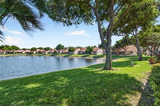 Welcome to the desirable active community of Emerald Pointe,This Cameo Model has vaulted ceilings throughout.Total square footage of 2,034 with the attached screened in porch on back with a lake view,Plenty of room with a split bedroom floor plan,There are 2 bedrooms and 2 full baths .This model also has a large den room.Many activities and clubs plenty of things to do.Great location in West Delray which has everything you need surrounding this community.Fees cover cable, internet,water,exterior insurance, alarm and all exterior maintenance and roof maintenance.