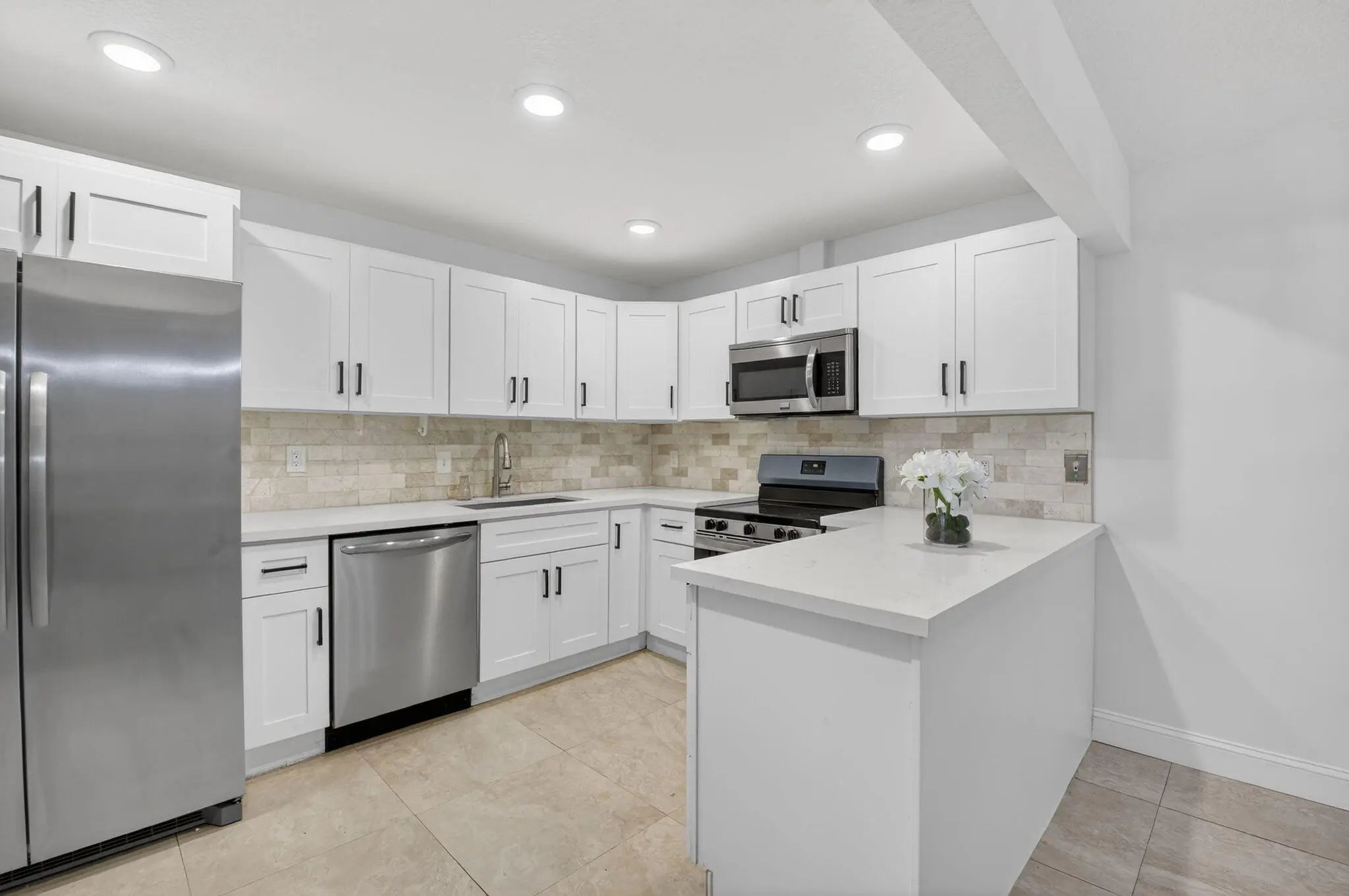 Welcome to your private coastal retreat in the heart of Delray Beach—where modern luxury meets serene, spa-inspired living. This renovated 2-bedroom, 2.5-bath residence offers a rare blend of sophistication and tranquility. From the moment you step inside, you're greeted by a calming, zen-like aesthetic—freshly painted interiors, a striking beach-inspired stairwell accent wall, and thoughtfully curated finishes that evoke a high-end resort experience. The fully equipped kitchen, featuring sleek white quartz countertops paired with brand-new stainless steel appliances, including a refrigerator and range/oven—perfect for both everyday living and entertaining in style. Each of the 2.5 bathrooms has been completely renovated, delivering a spa-like ambiance with modern finishes and a clean, elevated design. Step outside onto your brand-new natural wood patio—an inviting extension of your living space, ideal for morning coffee, sunset unwinding, or hosting under the South Florida sky. Additional upgrades include a brand-new HVAC system, ensuring comfort and efficiency year-round. Location is everything—and this home delivers. You're just a short drive (approximately 10-12 minutes, about 3 miles) from Delray's pristine, award-winning beaches, where turquoise waters and vibrant beach culture await. Enjoy easy access to the upscale boutiques, art galleries, and renowned dining scene along Atlantic Avenue—featuring everything from chic cafés to world-class restaurants and lively nightlife. Whether you're seeking a full-time residence or seasonal escape, this 55+ community offers 5 pools, clubhouse, fitness center, tennis courts, and a scenic, walkable environment with calming lakes and lush landscaping. This home offers the ultimate in luxury coastal living—where every detail has been elevated, and every day feels like a getaway.