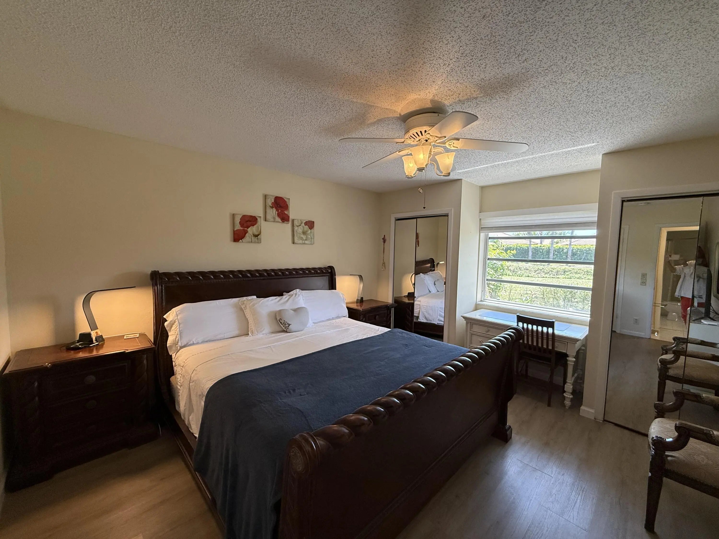 Live the Florida lifestyle in this well-maintained, furnished 2BR villa in the 55+ community of Boca Lakes. Spacious primary bedroom with 3 closets, in-unit stackable washer/dryer, and 2 assigned parking spaces right outside. Private back patio overlooks serene green space and canal. Rent includes water, basic cable, security, and pest control. Enjoy 24-hour guard-gated living with clubhouse, pool, tennis, and shuffleboard. Conveniently located near shopping, dining, the beach, and Town Center Mall. 6-month minimum may be considered at $2,600/month.