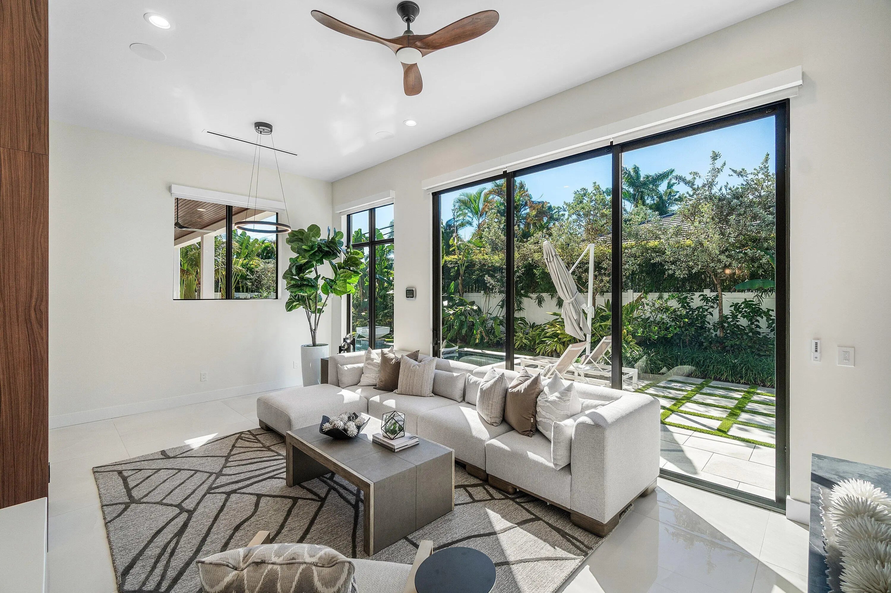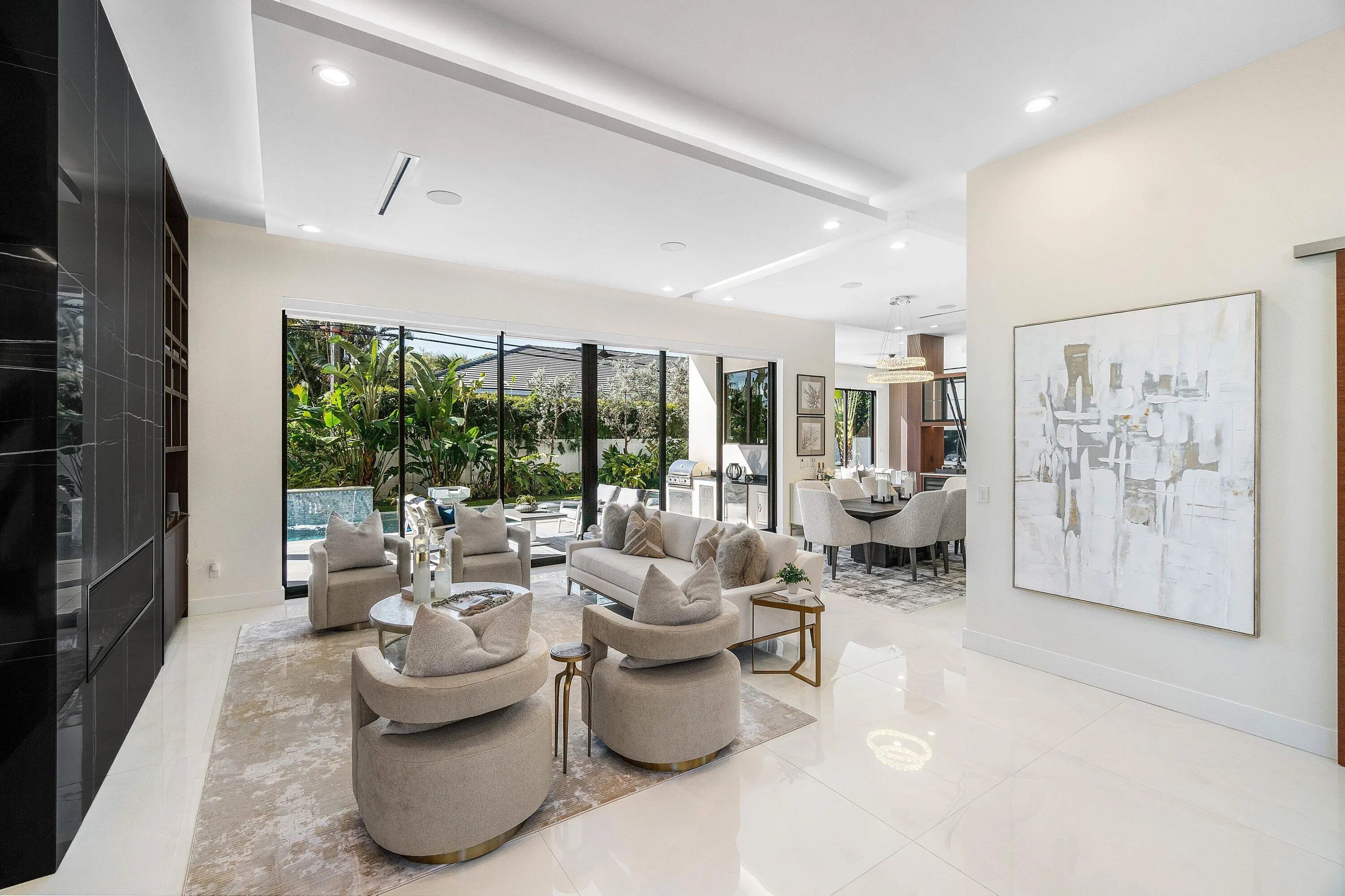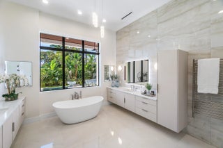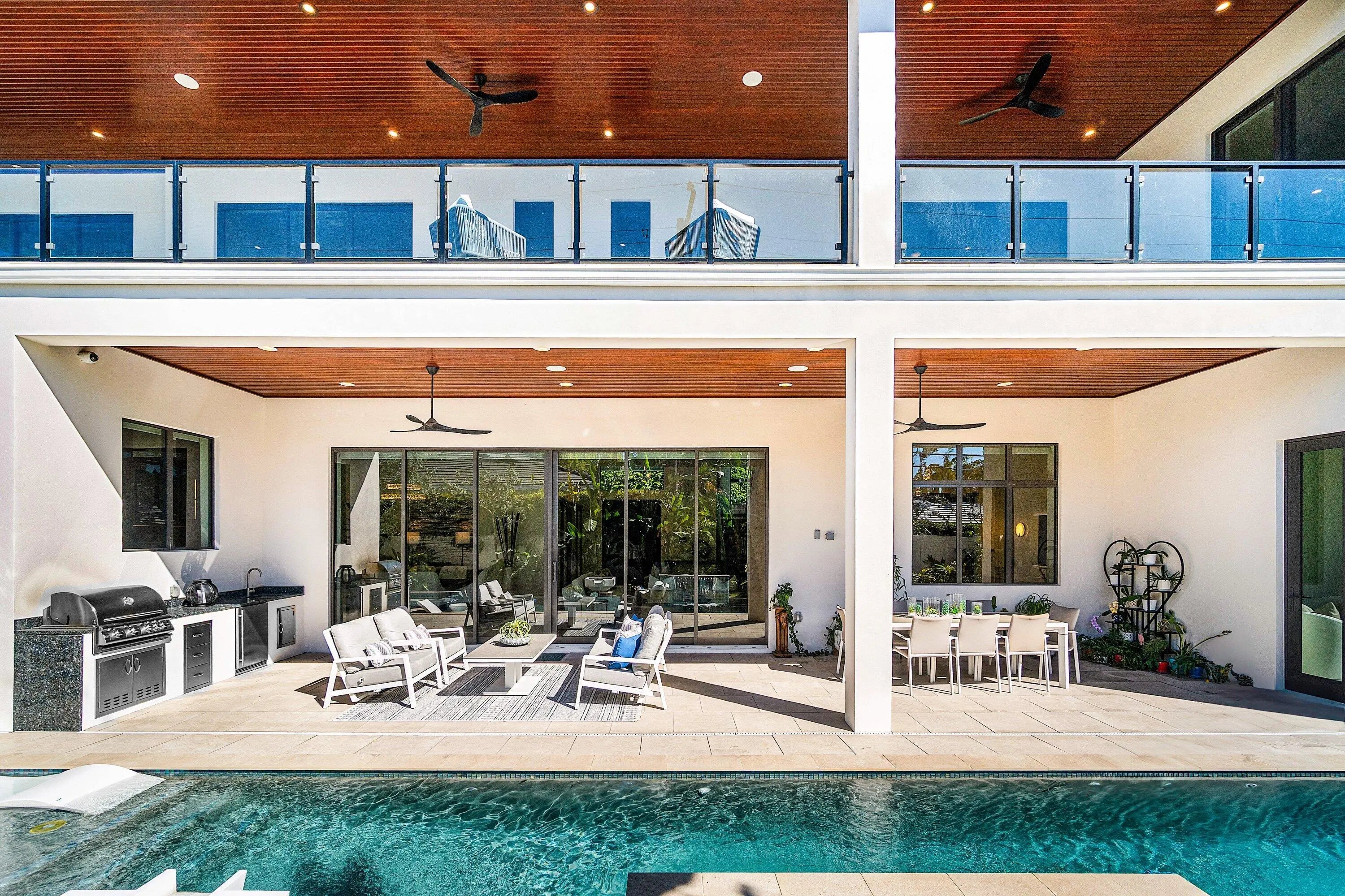 Modern coastal luxury awaits in Boca Villas. Built in 2023, this exceptional contemporary estate blends sophisticated architecture with effortless South Florida living. Located just moments from Mizner Park, the Atlantic Ocean, and the world-class amenities of The Boca Raton, the home offers the ultimate Boca lifestyle. Spanning approximately 5,578 square feet, the residence features five spacious ensuite bedrooms, six and a half bathrooms, soaring ceilings, dramatic glass stairway, private elevator, and walls of impact glass that fill the home with natural light. The gourmet chef's kitchen is equipped with premium appliances, custom cabinetry, and an oversized island designed for entertaining. Expansive living areas seamlessly connect indoor and outdoor spaces. The backyard is a private resort-style retreat featuring a sparkling pool and spa, covered patio, summer kitchen, and beautifully landscaped grounds—perfect for entertaining or relaxing year-round. Additional highlights include a 3-car garage, generator, smart home features, and high-end finishes throughout. Ideally situated in one of Boca Raton's most desirable neighborhoods, this residence offers walkable access to dining, shopping, beaches, and downtown Boca's vibrant lifestyl