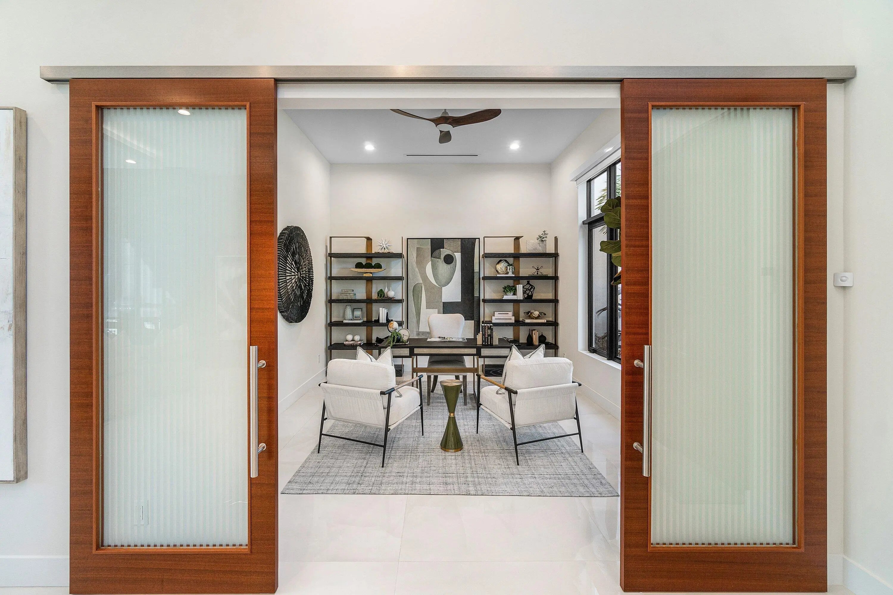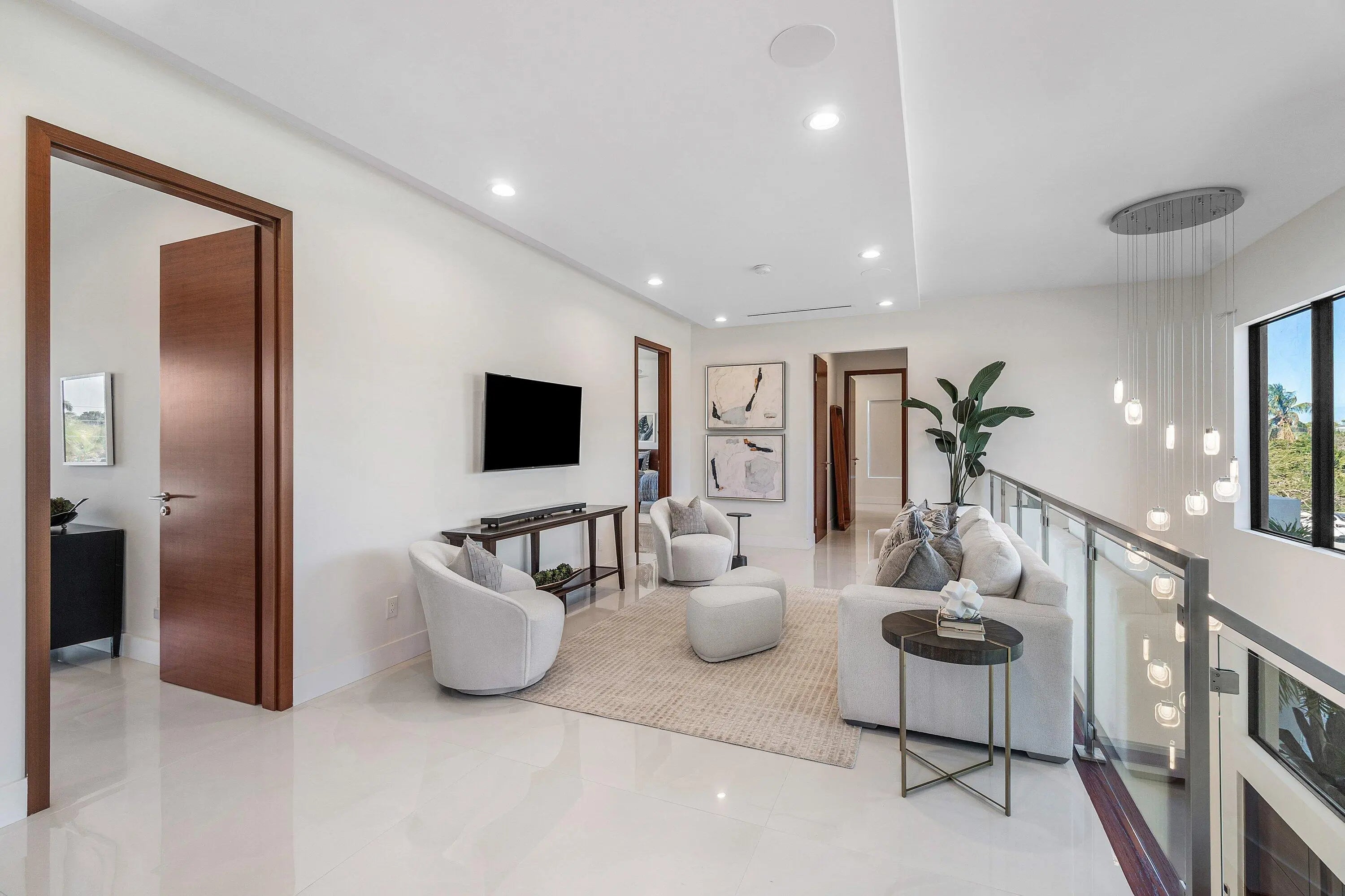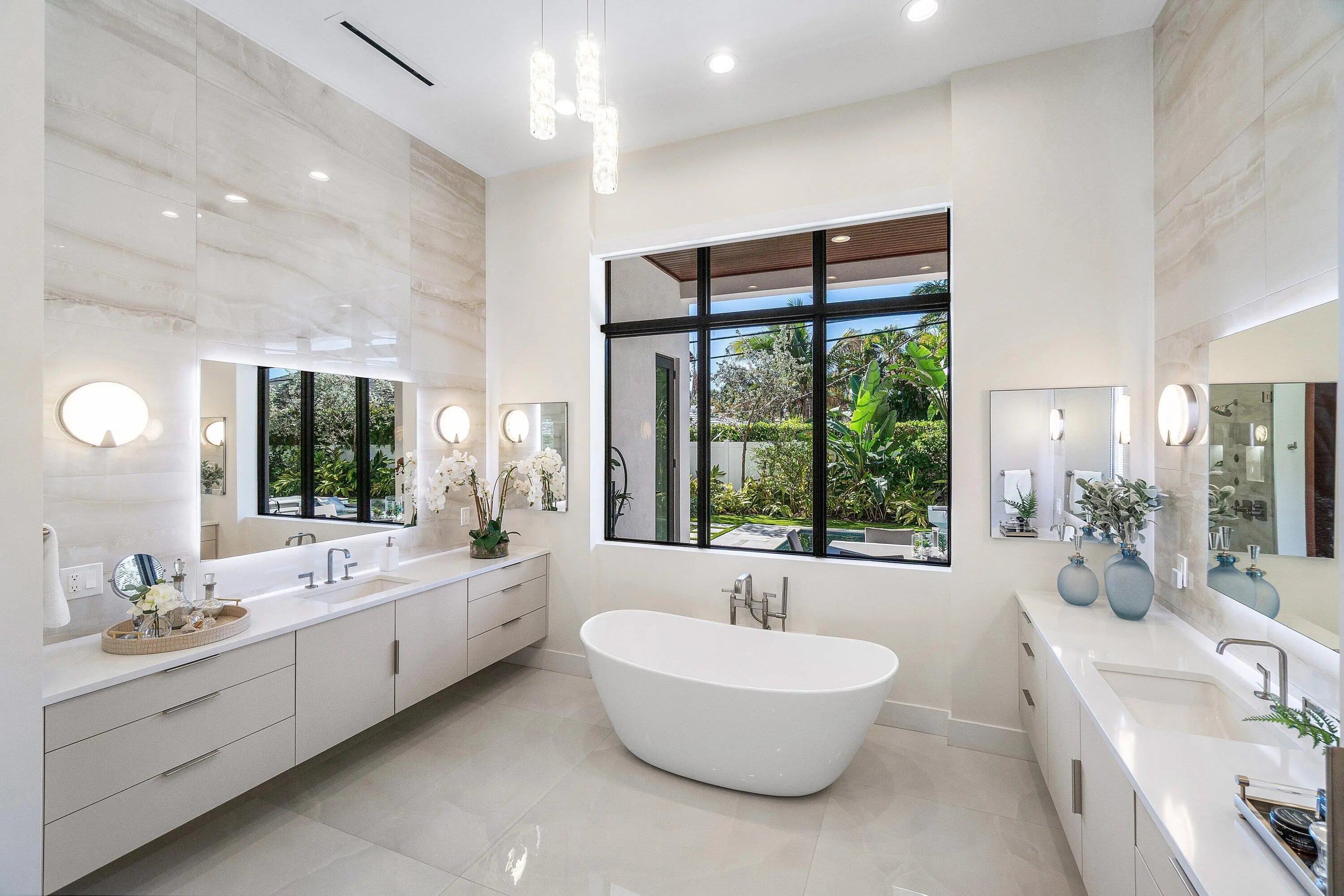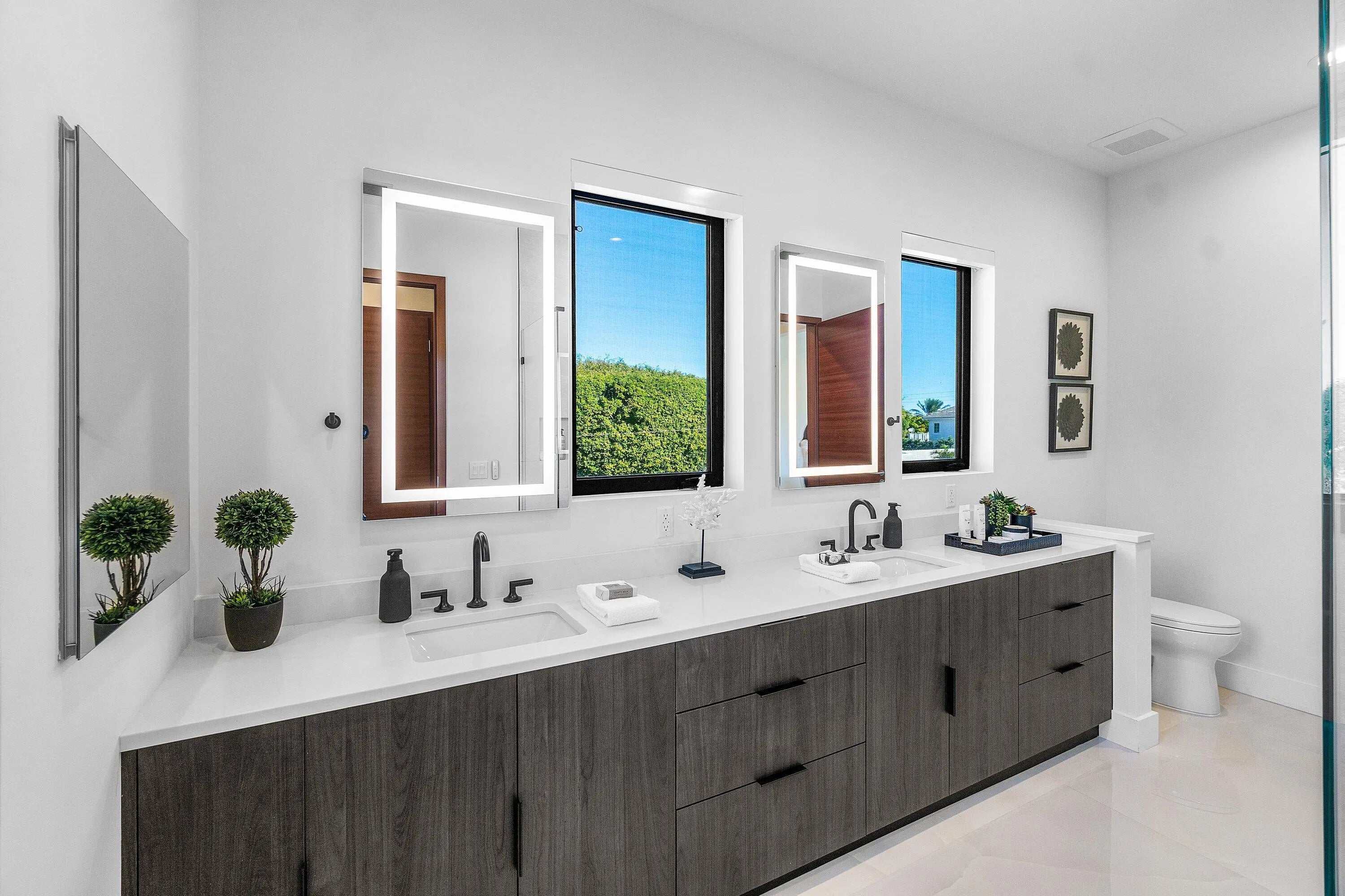 Modern coastal luxury awaits in Boca Villas. Built in 2023, this exceptional contemporary estate blends sophisticated architecture with effortless South Florida living. Located just moments from Mizner Park, the Atlantic Ocean, and the world-class amenities of The Boca Raton, the home offers the ultimate Boca lifestyle. Spanning approximately 5,578 square feet, the residence features five spacious ensuite bedrooms, six and a half bathrooms, soaring ceilings, dramatic glass stairway, private elevator, and walls of impact glass that fill the home with natural light. The gourmet chef's kitchen is equipped with premium appliances, custom cabinetry, and an oversized island designed for entertaining. Expansive living areas seamlessly connect indoor and outdoor spaces. The backyard is a private resort-style retreat featuring a sparkling pool and spa, covered patio, summer kitchen, and beautifully landscaped grounds—perfect for entertaining or relaxing year-round. Additional highlights include a 3-car garage, generator, smart home features, and high-end finishes throughout. Ideally situated in one of Boca Raton's most desirable neighborhoods, this residence offers walkable access to dining, shopping, beaches, and downtown Boca's vibrant lifestyl