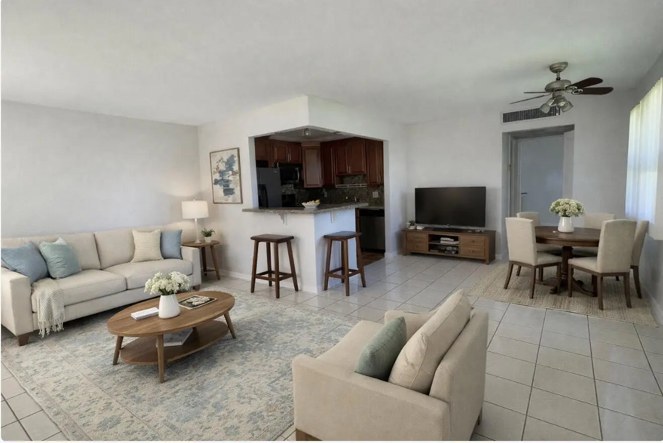 Beautifully renovated one story corner villa with windows on three sides, like a house, with no walls attached to a neighbor. This villa offers abundant natural light and serene canal views with a brand-new patio enclosure coming soon—perfect for relaxing or entertaining. All-tile flooring throughout makes for easy maintenance. The kitchen features granite countertops and stainless steel appliances. Enjoy a vibrant lifestyle with access to a resort-style clubhouse offering indoor and outdoor pools, a fitness center, tennis, golf, live entertainment, a theater, and convenient bus service.