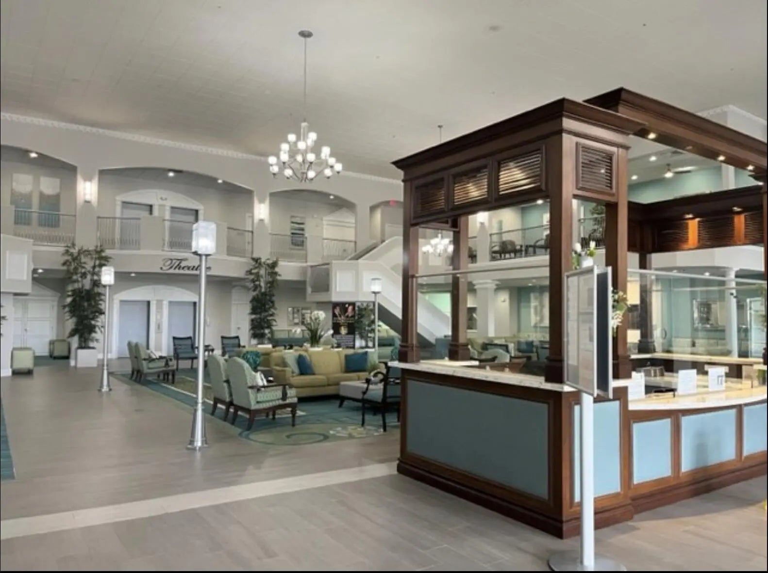 Clubhouse, Fitness Center, Golf Course, Game Room, Indoor Pool, Pool, Shuffleboard Court, Spa/Hot Tub, Tennis Court(s), Workshop Area, Cafe/Restaurant, Community Room, Courtesy Bus, Library, Putting Green
