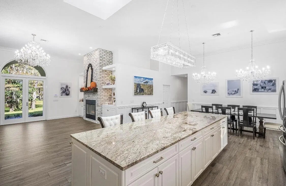 Indulge in the unparalleled opportunity to own your forever home, nestled in serene tranquility on an expansive five-acre estate. Homeland stands as a distinguished and highly coveted community, renowned for its exceptional design and ambiance. This residence boasts luxurious finishes and an array of remarkable features. The property offers a secluded par-3 golf course, enhanced by misting fans. Please refer to the supplementary info for details on the $750,000 renovation in 2022.' This property caters to individuals who prioritize privacy and relish activities such as golfing or shooting, or who envision a personal retreat complete with a sophisticated man cave in a private loft setting. Envision comfortably parking your Jupiter 31 w/i the garage, conveniently located beneath the ma Enjoy the benefits of a low Homeowners Association fee and minimal taxes, complemented by an extensive network of fifteen miles of bridle paths. This residence is equipped with a 40 kW standby Generac propane generator, capable of sustaining power for up to three weeks during outages. Alligator Trail is recognized as the premier street in Homeland, where adherence to the principles of conformity ensures you are surrounded by newly constructed homes valued between $7 million and $10 million. The property features a resurfaced in-ground salt water pool, complete with a new heater, as well as a new modern reverse osmosis water heater and zoned irrigation system. Inside, you'll find a fully functional indoor fireplace adorned with a brick surround, an impressive walk-in pantry, and a spacious eat-in kitchen showcasing a grand Italian marble cooking island and stainless steel appliances. For added convenience, there are two distinct laundry facilities, a colossal open-concept master closet, and California Closets throughout every room. This residence is officially classified as a five-bedroom home; however, the primary suite has been elegantly reconfigured to combine the primary suite and an additional bedroom into a spacious area, which can be easily restored to its original five-bedroom layout. The primary suite includes separate his and her bathrooms, with one featuring a luxurious whirlpool spa, while another boasts a standalone Roman tub; three bathrooms are equipped with walk-in showers, all culminating in a 6-bedroom, 4-bathroom layout with a 6-car garage. Adding to the property's appeal is a secure safe room, perfect for storing valuable items, outfitted with independent air conditioning, a reinforced concrete door, rebar support, and a key that cannot be duplicated. The security system is comprehensive, featuring a 12-camera CCTV setup, a burglar alarm, hurricane-impact windows and doors, high ceilings, and a 2018 painted metal roof. The exterior has been refreshed with Alabaster White paint, providing stunning panoramic views of the lake, alongside ample parking for visitors. The home is enhanced with automatic roll-up patio screens and retractable automatic drapes for convenience and style. A private security gate, complemented by an armed guard at the front, ensures peace of mind. Proof of funds and/or a pre-qualification letter is required for showings, and the listing agent must accompany all visits. Given the presence of pets and children on the premises, no showings are permitted between 11AM & 1PM, or after 6:30 PM. Located just 3.2 miles from the Winter Equestrian Festival (WEF) and Palm Beach International Equestrian Center (PBIEC), 1.1 miles from the Poli Grounds, and a mere five-minute drive to the Wellington Mall, FL Turnpike, Whole Foods, Publix, Movie Theater, Wellington Mall, fine dining and local golf courses. This property is also only fifteen minutes from Palm Beach International Airport.
