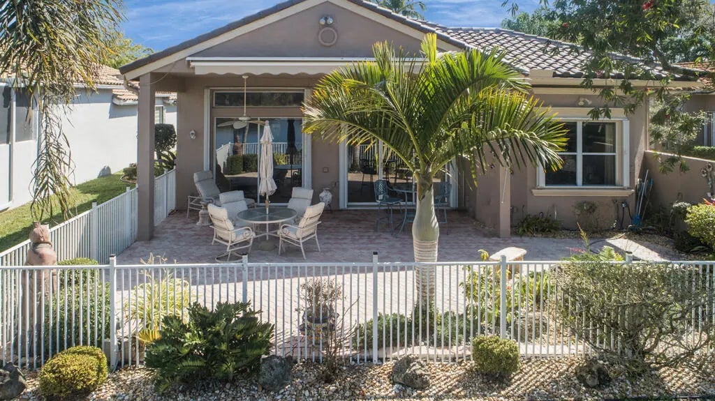 Step into S. Florida's best, a sophisticated LAKEFRONT on a CUL DE SAC in luxurious Bellaggio, an active adult community. Enjoy uncommon peace of mind with features such as: new 2024 ROOF, 2025 Whole-house GENERATOR, 2021 AC w/UV PURIFICATION, 2022 water heater, 2023 refrigerator, 2024 washer/dryer and Accordion shutters throughout. The traditional interior is a perfect canvas for your personal touches. Note, Murphy's bed, bay window bench, high ceilings & large windows flood the space with natural light & dreamy lake views. The oversized & fenced patio is a tropical showstopper with coy-pond, exotic palms & sculptures. Centrally located with quick access to the FL Turnpike, 441, the beach, equestrian sports, hospitals, PBI airport & miles of shopping & dining - this home has it all. Measurements and information offered is deemed reliable but is not guaranteed. Storage cabinets in the garage convey. Offered As-Is with right to inspect.