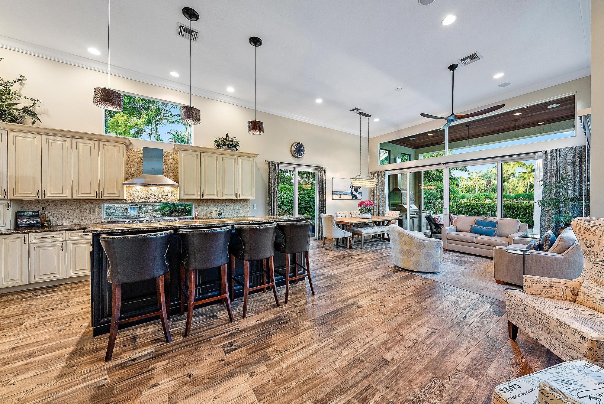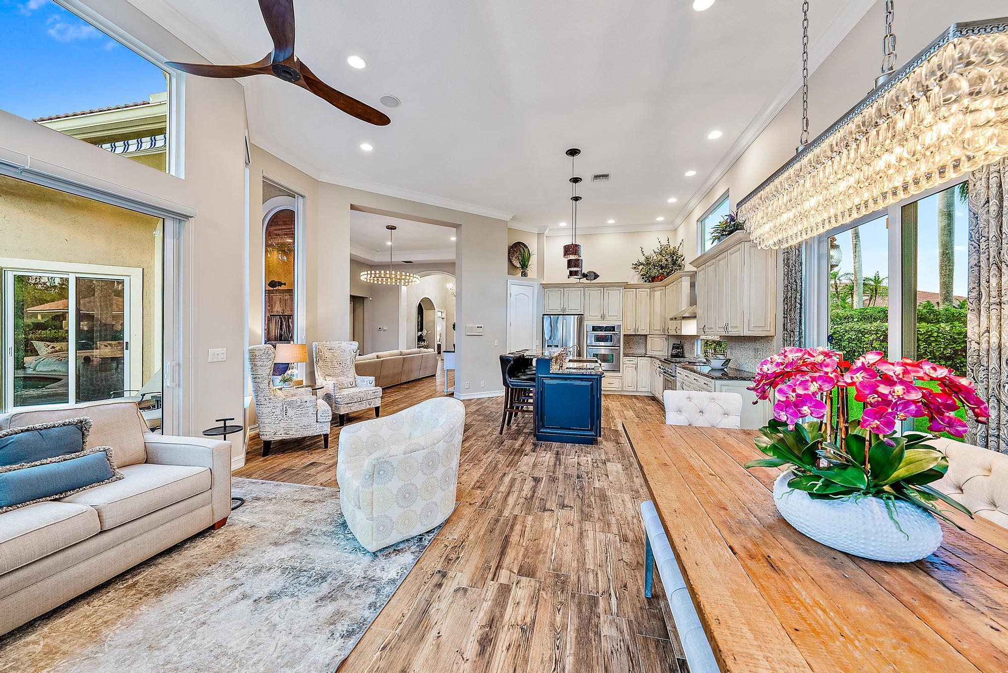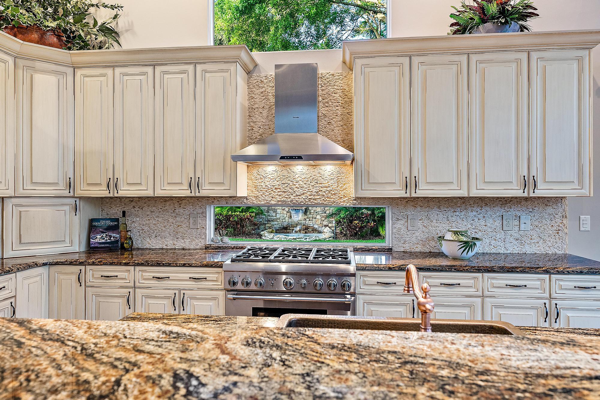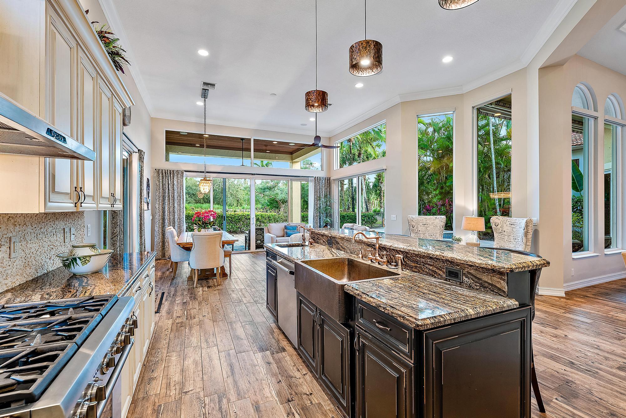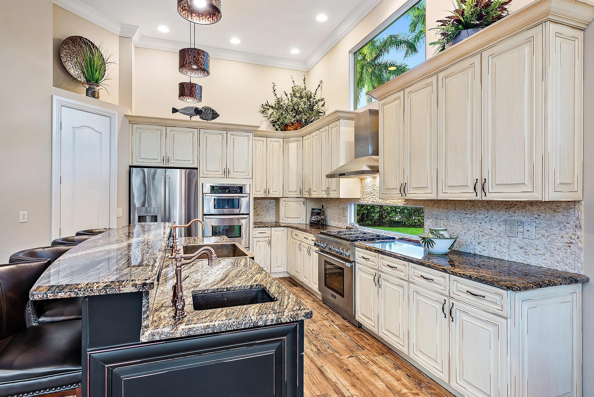 Featuring one of the largest lots in Tradition Cove, this one-of-a-kind, FULLY RENOVATED home offers incredible upgrades, luxurious finishes and fixtures. Everything has been done for you. The NEW ROOF was installed in 2023, along with all new IMPACT GLASS throughout, installed in 2023 as well. The magnificent .34-ACRE LOT offers an enormous fenced in side yard and a tranquil stone waterfall that provides a unique focal point from inside the home. The interior has been fully reimagined and beautifully renovated in a warm transitional aesthetic. Featuring Italian porcelain wood-look tile flooring throughout, there is no carpet in this home. Available FULLY FURNISHED with designer curated furnishings.Enjoy a fully renovated custom chef's kitchen with high-end stainless appliances including a Thermador 6-burner range and Thermador dishwasher. There are two sinks: a stunning copper farm sink as well as smaller prep sink. The spacious covered patio features designer-done outdoor kitchen. Remote-controlled Phantom Screens providing versatility, convenience and making dining al-fresco ideal at any time of day. Additionally, there is a large Sunbrella remote-controlled awning. All three bathrooms, and the powder room, have been renovated and feature designer fixtures and accents as well as custom cabinetry. The Primary Suite features closet built-ins and a showstopping primary bath, including a large walk-in shower. Restoration Hardware light fixtures add drama and style. There is a 3-zone HEOS sound system in primary suite, living room and patio. Custom shades in the kitchen area and electric shades in the living room. In addition to the incredible fenced in side yard with fountain, the rear of the home is a lushly landscaped to add beauty and privacy to the views of Tradition #7. This home features a generator, pool and spa with gorgeous designer accent tile, and there is also a brick patio with built-in fire pit. In addition to the two-car garage there is also a golf cart garage. The front of the home features a gorgeous view of the magnificent Tradition Cove fountain. Available FULLY FURNISHED with designer curated furnishings. The Club at Ibis is an award-winning community that boasts a 90,000 sq. ft. clubhouse, three 18-hole Nicklaus-family Championship courses, five restaurants, a world-class fitness complex, spa, and incredible tennis and pickleball facility.