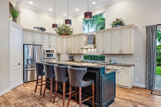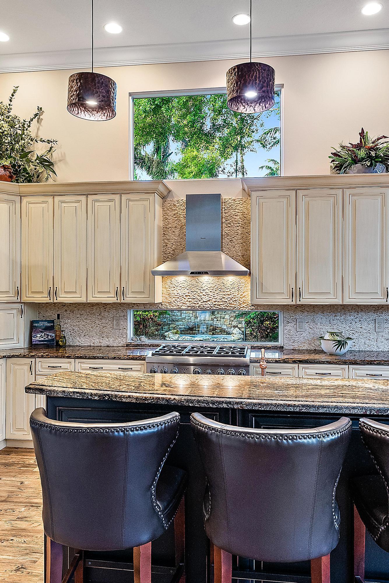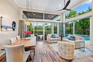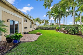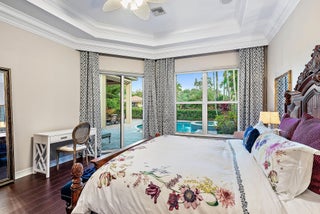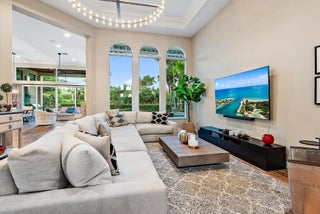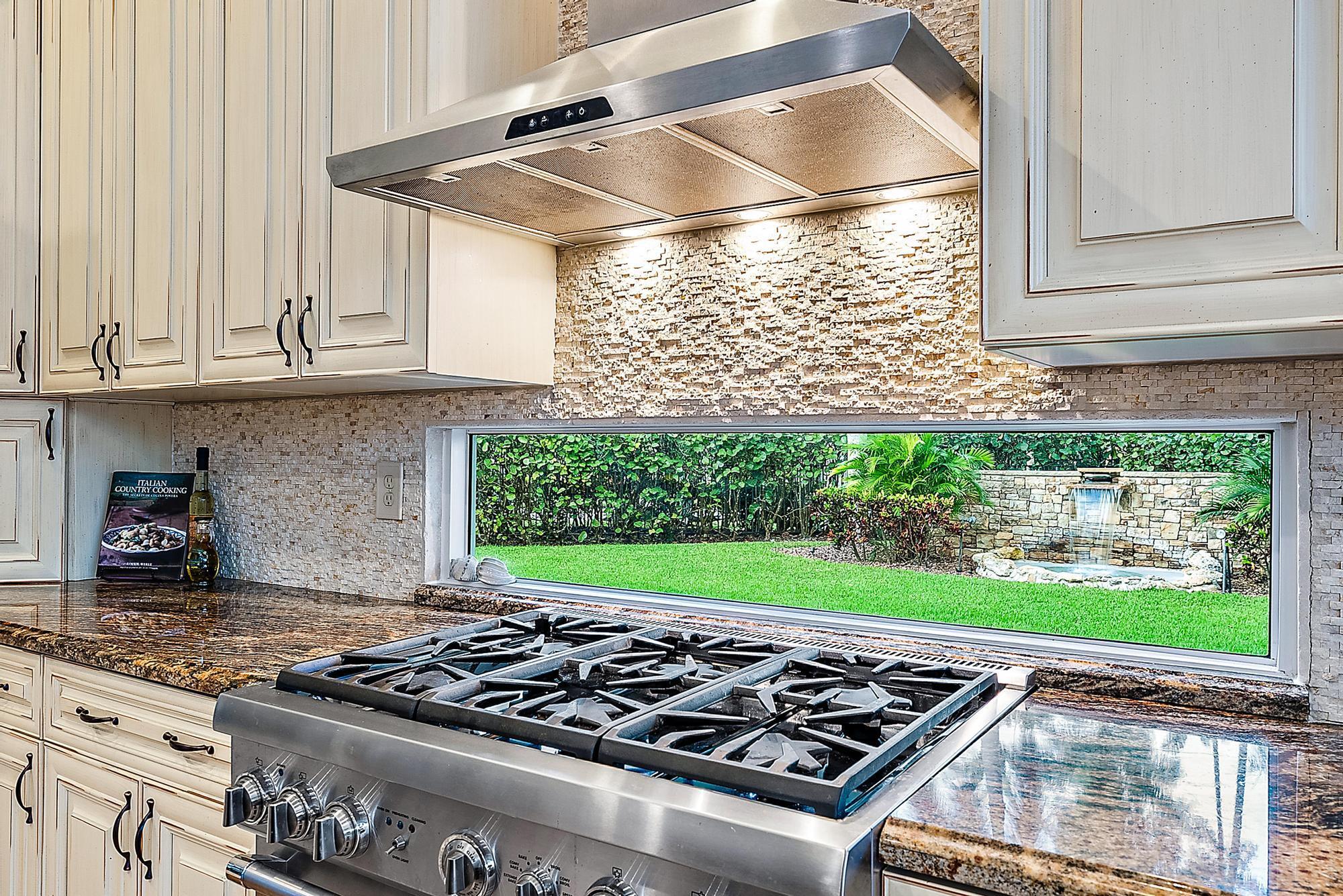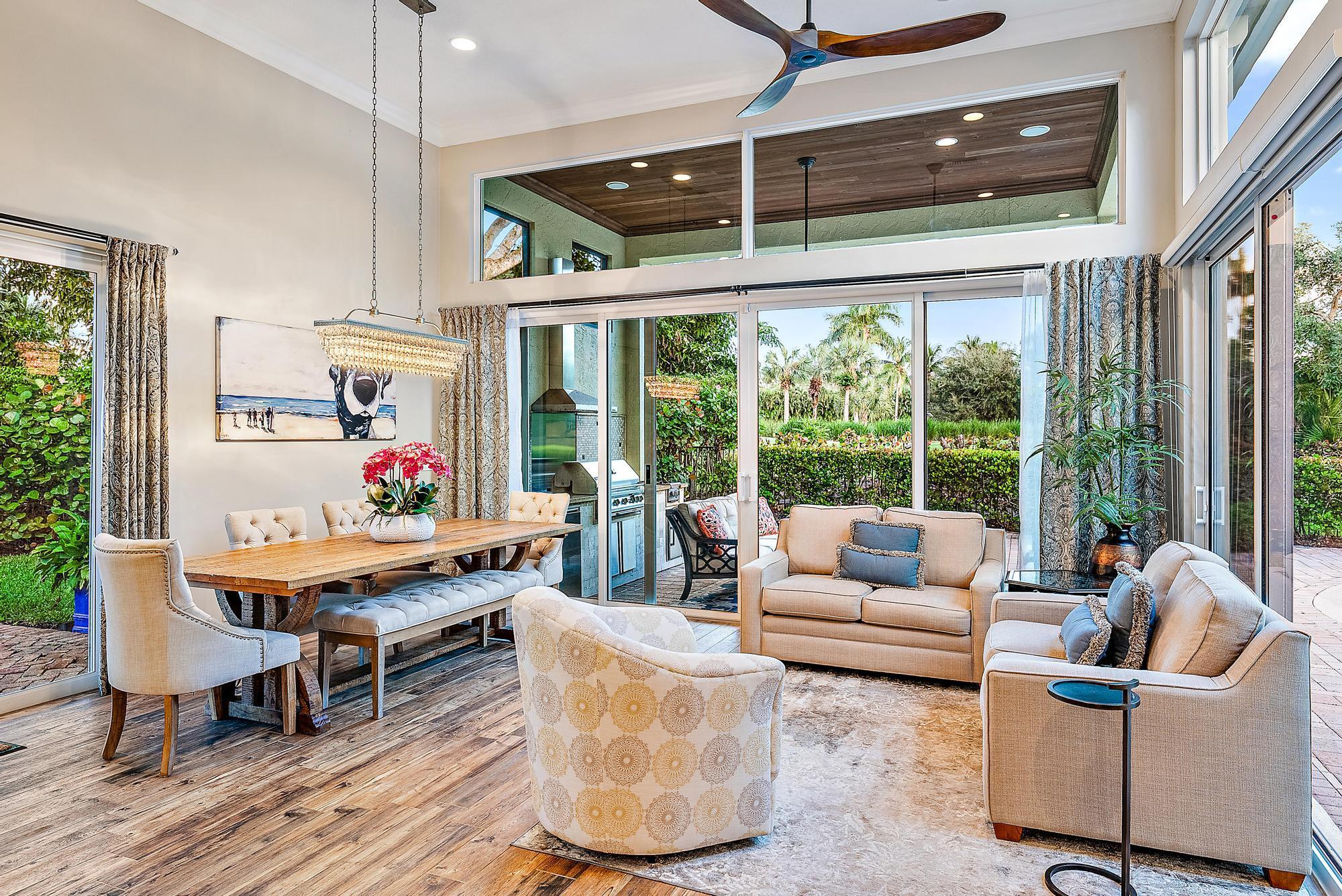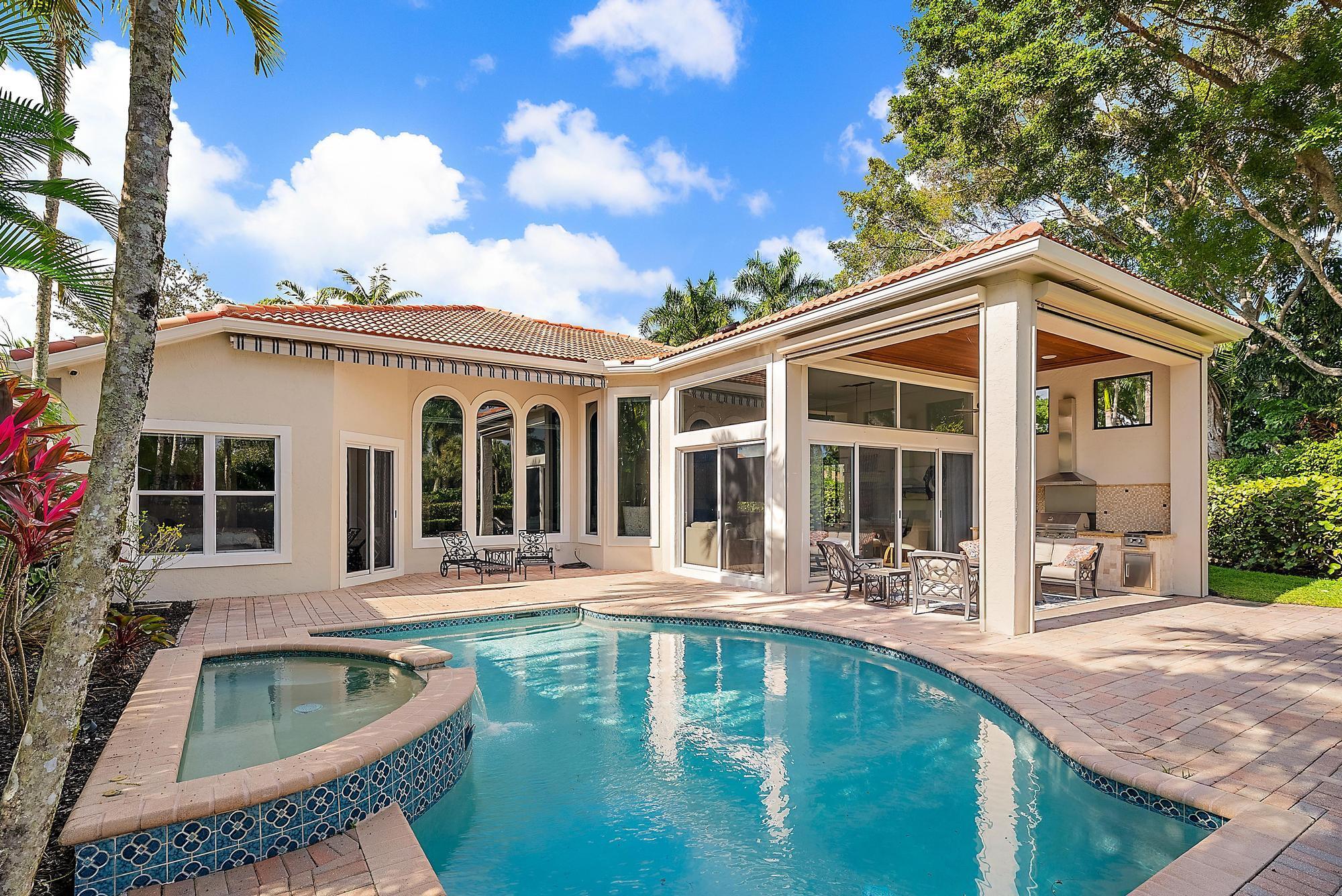 Featuring one of the largest lots in Tradition Cove, this one-of-a-kind, FULLY RENOVATED home offers incredible upgrades, luxurious finishes and fixtures. Everything has been done for you. The NEW ROOF was installed in 2023, along with all new IMPACT GLASS throughout, installed in 2023 as well. The magnificent .34-ACRE LOT offers an enormous fenced in side yard and a tranquil stone waterfall that provides a unique focal point from inside the home. The interior has been fully reimagined and beautifully renovated in a warm transitional aesthetic. Featuring Italian porcelain wood-look tile flooring throughout, there is no carpet in this home. Available FULLY FURNISHED with designer curated furnishings.Enjoy a fully renovated custom chef's kitchen with high-end stainless appliances including a Thermador 6-burner range and Thermador dishwasher. There are two sinks: a stunning copper farm sink as well as smaller prep sink. The spacious covered patio features designer-done outdoor kitchen. Remote-controlled Phantom Screens providing versatility, convenience and making dining al-fresco ideal at any time of day. Additionally, there is a large Sunbrella remote-controlled awning. All three bathrooms, and the powder room, have been renovated and feature designer fixtures and accents as well as custom cabinetry. The Primary Suite features closet built-ins and a showstopping primary bath, including a large walk-in shower. Restoration Hardware light fixtures add drama and style. There is a 3-zone HEOS sound system in primary suite, living room and patio. Custom shades in the kitchen area and electric shades in the living room. In addition to the incredible fenced in side yard with fountain, the rear of the home is a lushly landscaped to add beauty and privacy to the views of Tradition #7. This home features a generator, pool and spa with gorgeous designer accent tile, and there is also a brick patio with built-in fire pit. In addition to the two-car garage there is also a golf cart garage. The front of the home features a gorgeous view of the magnificent Tradition Cove fountain. Available FULLY FURNISHED with designer curated furnishings. The Club at Ibis is an award-winning community that boasts a 90,000 sq. ft. clubhouse, three 18-hole Nicklaus-family Championship courses, five restaurants, a world-class fitness complex, spa, and incredible tennis and pickleball facility.