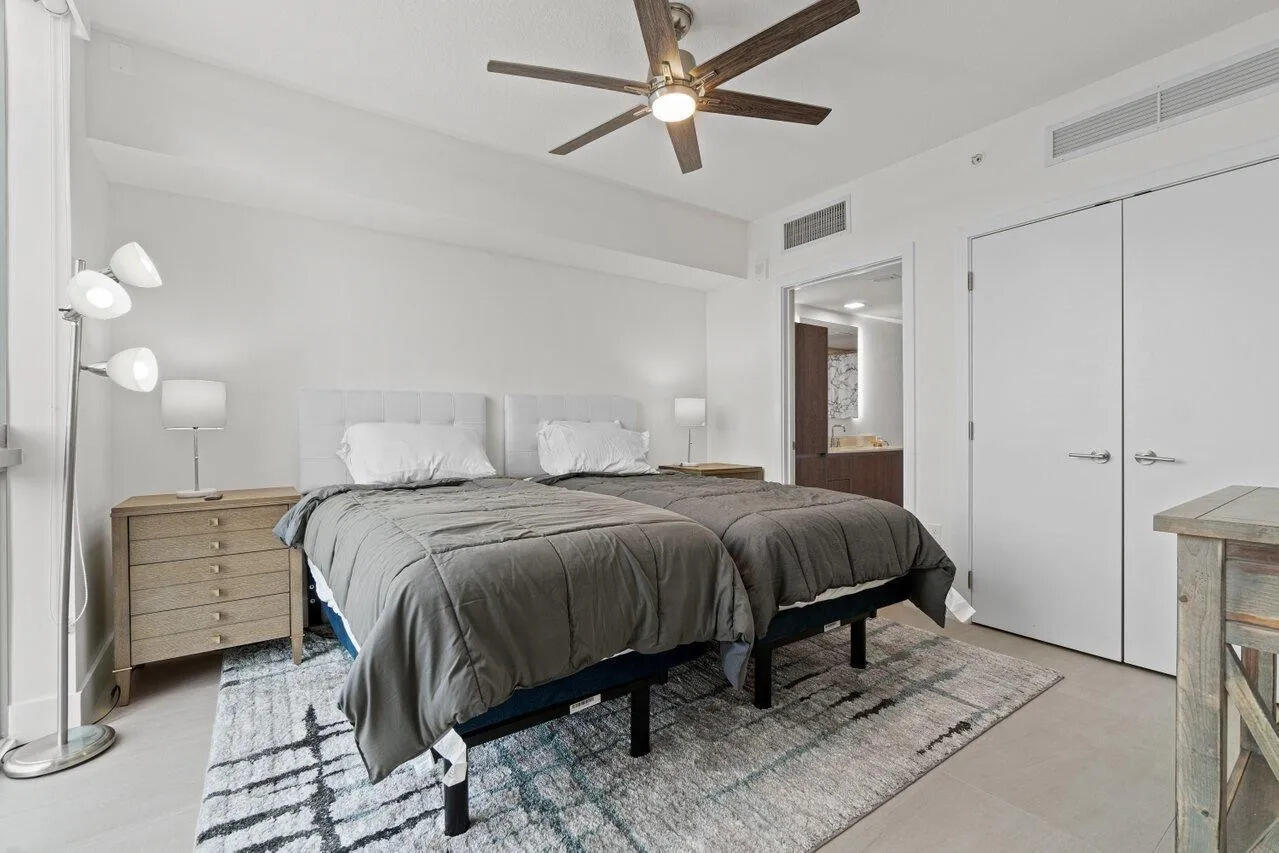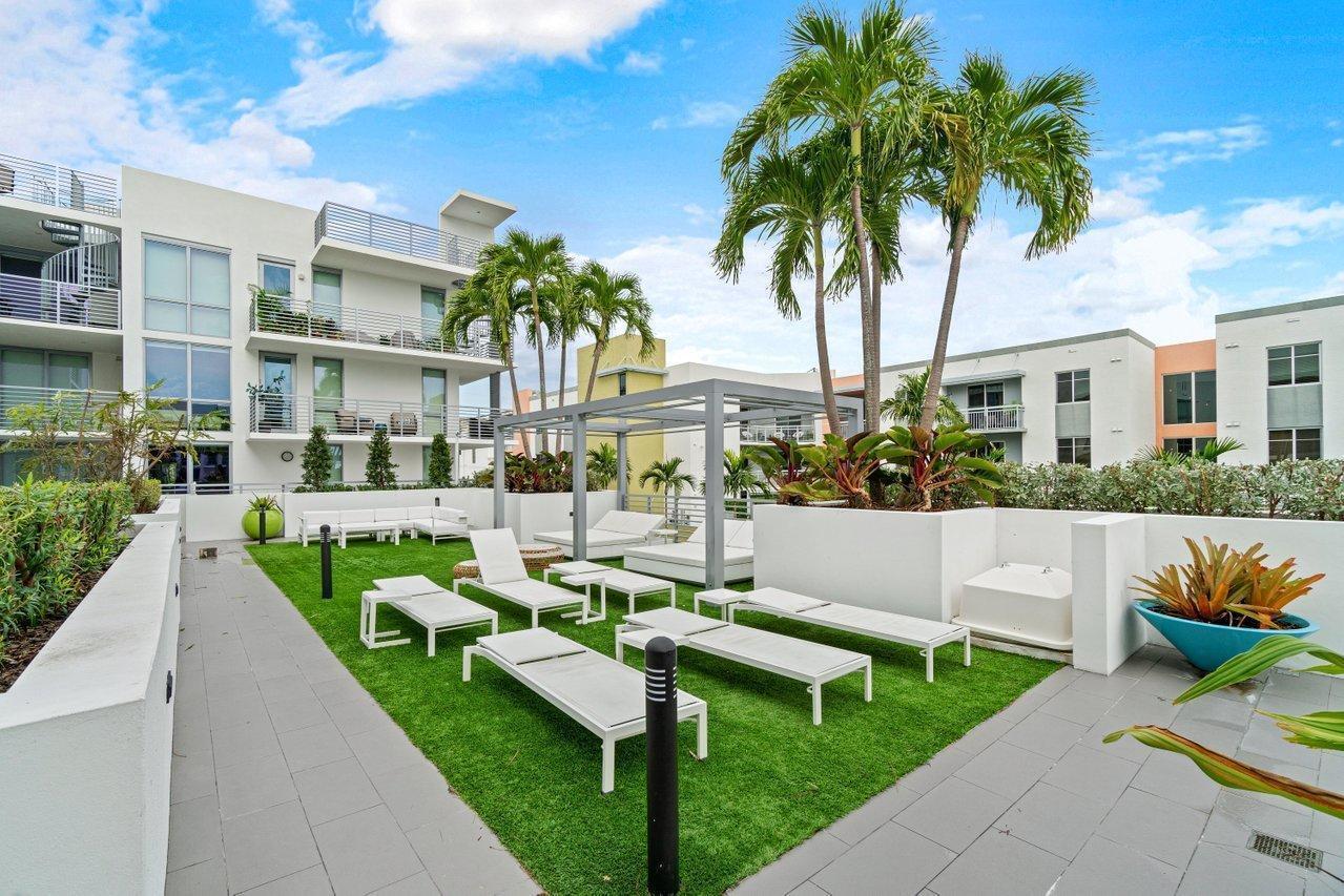 Modern Luxury Living in the Heart of Downtown Delray. Step into your own private oasis, a sophisticated 2BED/2BATH condo offering perfect blend of modern design & coastal charm. Located just steps from the vibrant Atlantic Avenue, this residence defines convenient luxury living.This stunning home features a split floor plan w/ wood-look porcelain tile flooring. The gourmet kitchen is outfitted w/ high-end Bosch appliances, sleek quartz countertops, & custom cabinetry, making it both functional & elegant. The spacious living areas are flooded w/ natural light, while the bedrooms provide comfort and privacy for ultimate relaxation. The sought-after location on 4th floor offers a quiet setting w/ sunset views. 1 deeded parking spot (2ndFL),1 storage spot, bike spots, 2 guest.see supplement