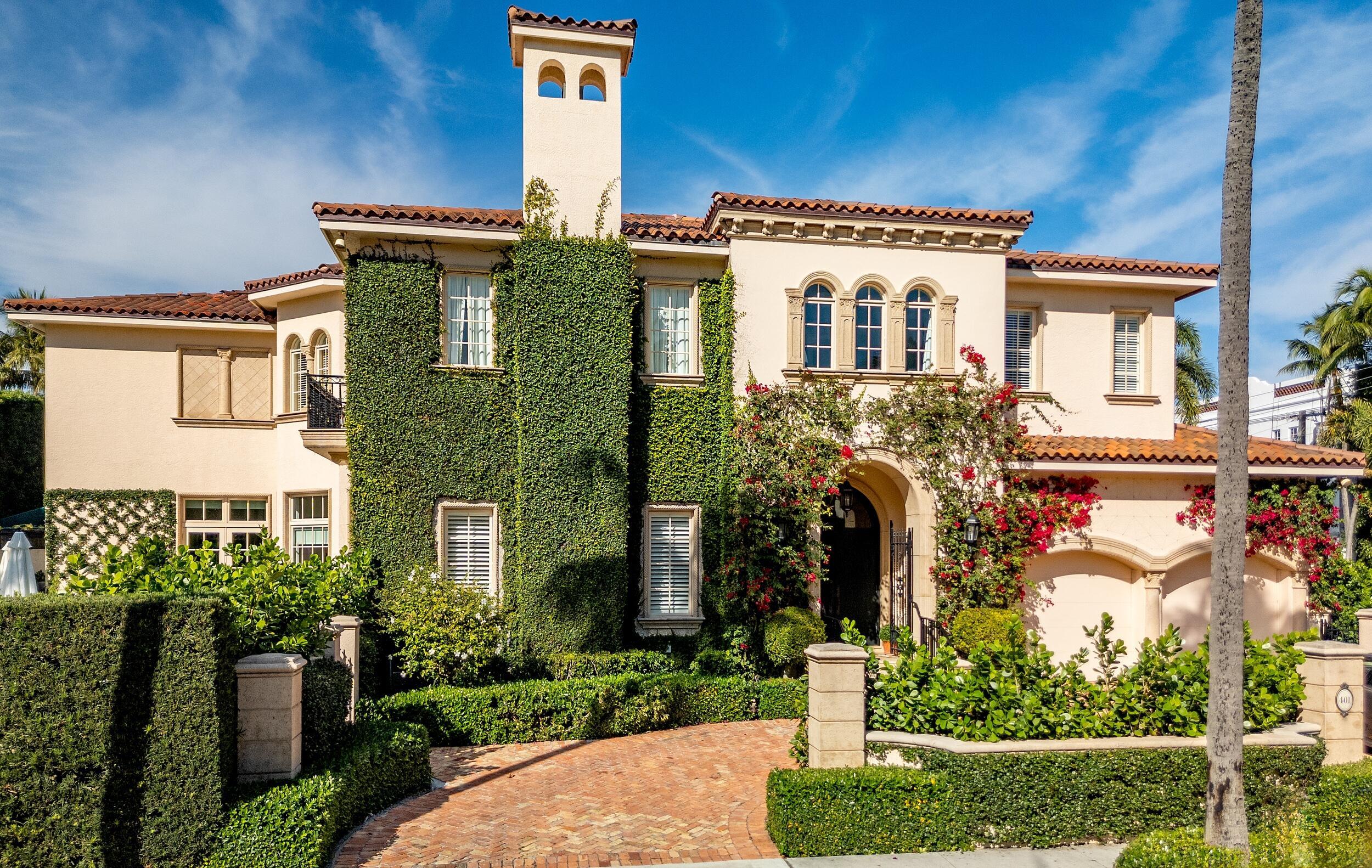 Beautiful, Light and Bright Mediterranean style townhome with soaring ceilings, 3 bedrooms plus den, 5 full bathrooms, and powder room. Large formal living room with fireplace, formal dining room, and kitchen with breakfast area. Fabulous den with courtyard patio. Expansive Primary Wing complete with sitting room, dual bathrooms and walk-in closets, and lounge area. The backyard features swimming pool with spa, large patio, and lush landscaping perfect for serene outdoor living. Additional highlights include elevator, large laundry room, and 2-car garage. Phenomenal In-Town location on the Lake Block of Chilean Avenue, just two blocks from the renowned shopping and dining of Worth Avenue.