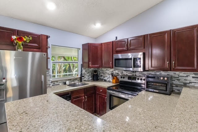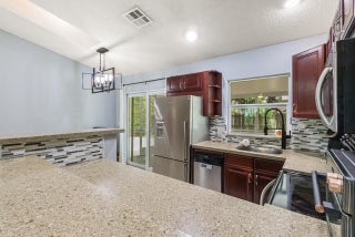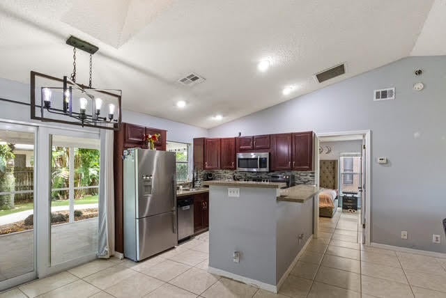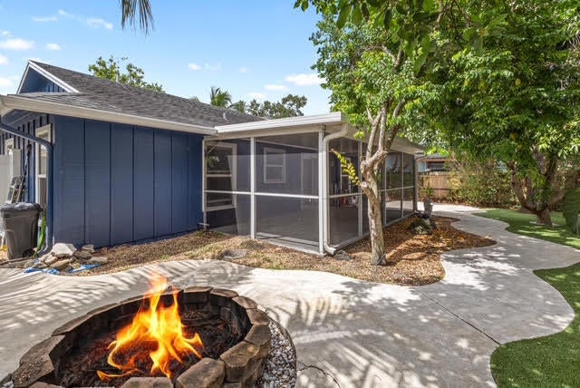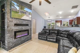This no HOA home boasts hurricane- impact windows and sliding doors, stainless steel appliances and elegant tile flooring throughout then house. Enjoy the comfort of screened in porch and patio. High ceilings with built in cabinets in the kitchen and a skylight that brings natural light to the breakfast room. Step outside to a Tropical Oasis with this beautifully landscaped backyard with new turf surrounding a cozy fire pit. Inside the living room features an electric fireplace perfect for relaxing evenings.
