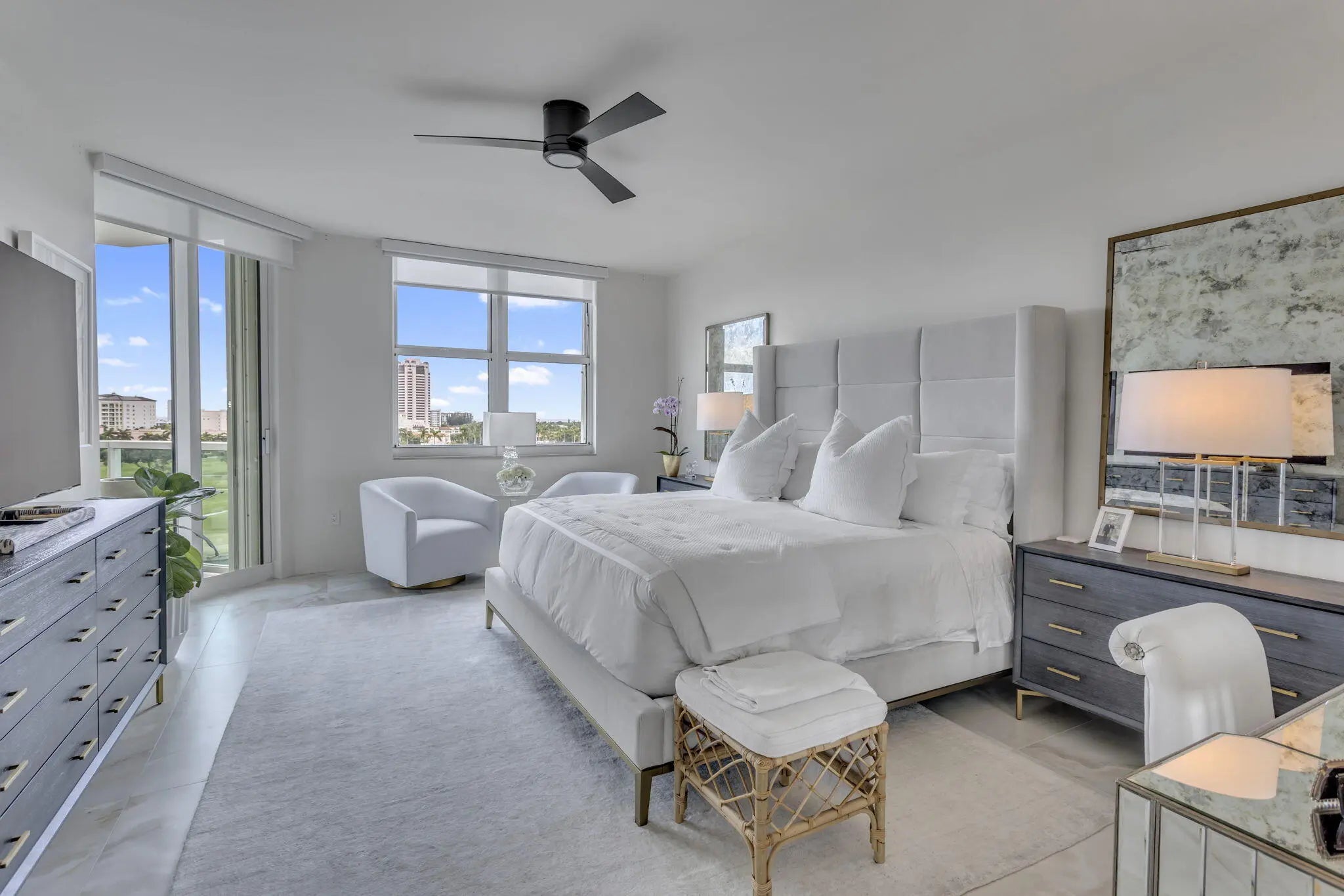 UNFURNISHED/ANNUAL LEASE ONLY. UNPARALLELED DIRECT GOLF COURSE VIEWS FROM THIS 7TH FLOOR STUNNING RESIDENCE, COMPLETELY RENOVATED TOP TO BOTTOM IN 2024 SPARING NO EXPENSE. A NEUTRAL COLOR PALETTE ELEVATES THIS SPLIT 2 BED | 2.5 BATH RESIDENCE FEATURING AN ALL NEW OPEN KITCHEN, CUSTOM GLASS COUNTER DINING TABLE, TOP OF THE LINE APPLIANCES, NEW W/D & A/C, SPA INSPIRED BATHROOMS, PORCELAIN FLOORING, TASTEFULLY APPOINTED WALLPAPER & ELECTRIC WINDOW SHADES AND MORE. ENJOY A COVERED SPACIOUS BALCONY THAT SPANS THE ENTIRE UNIT WITH ACCESS FROM EVERY ROOM. WAKE UP TO A BEAUTIFUL SUNRISE WITH YOUR MORNING CUP OF COFFEE OR RELAX IN THE EVENING WITH A GLASS OF WINE. TOWNSEND PLACE IS A LUXURY CONDOMINIUM IN THE HEART OF DOWNTOWN BOCA RATON, JUST STEPS TO MIZNER PARK AND ROYAL PALM PLAZA, ETC...