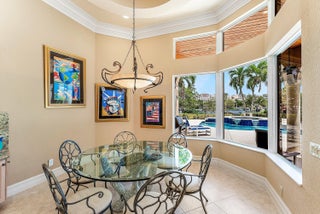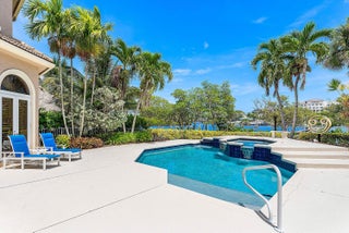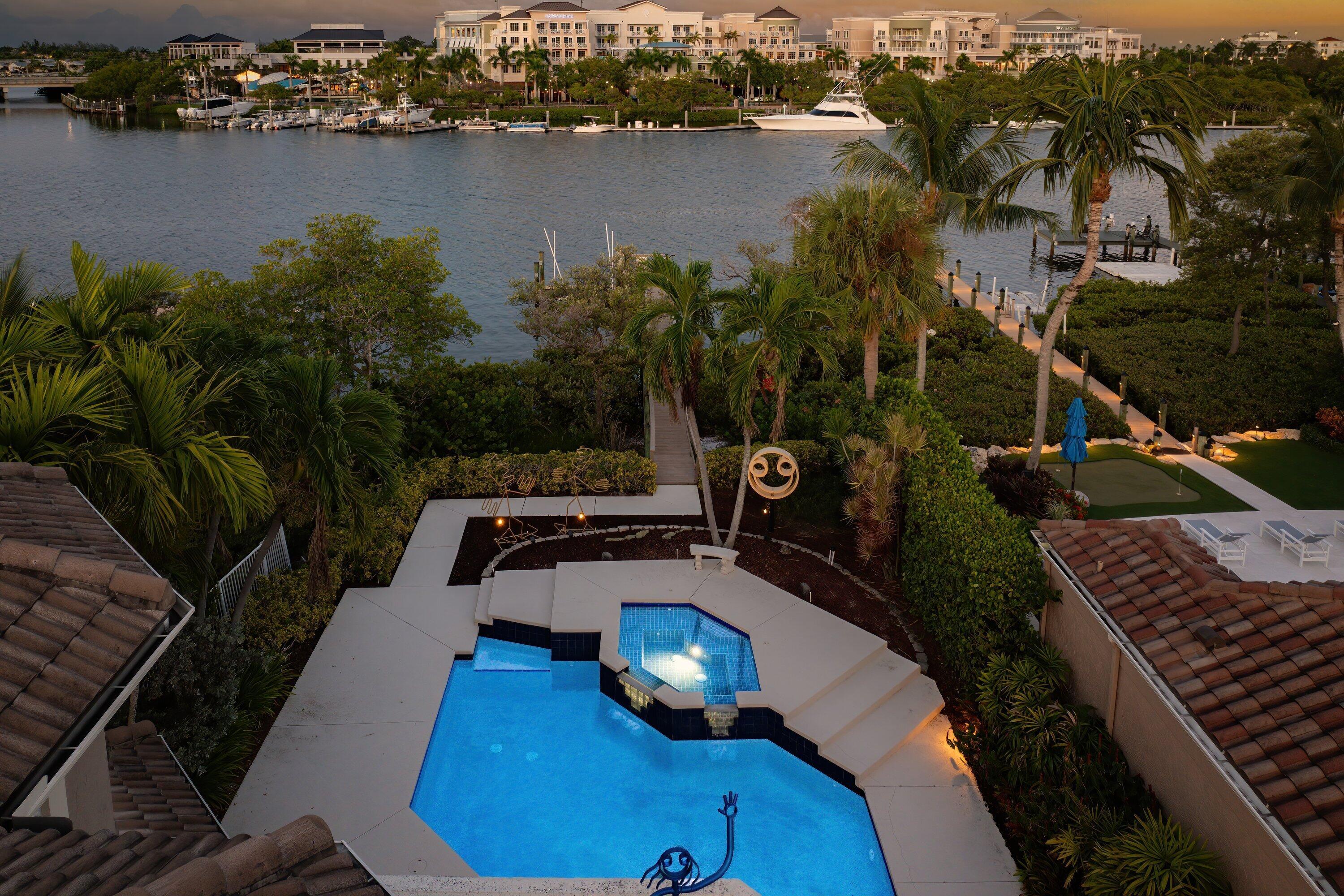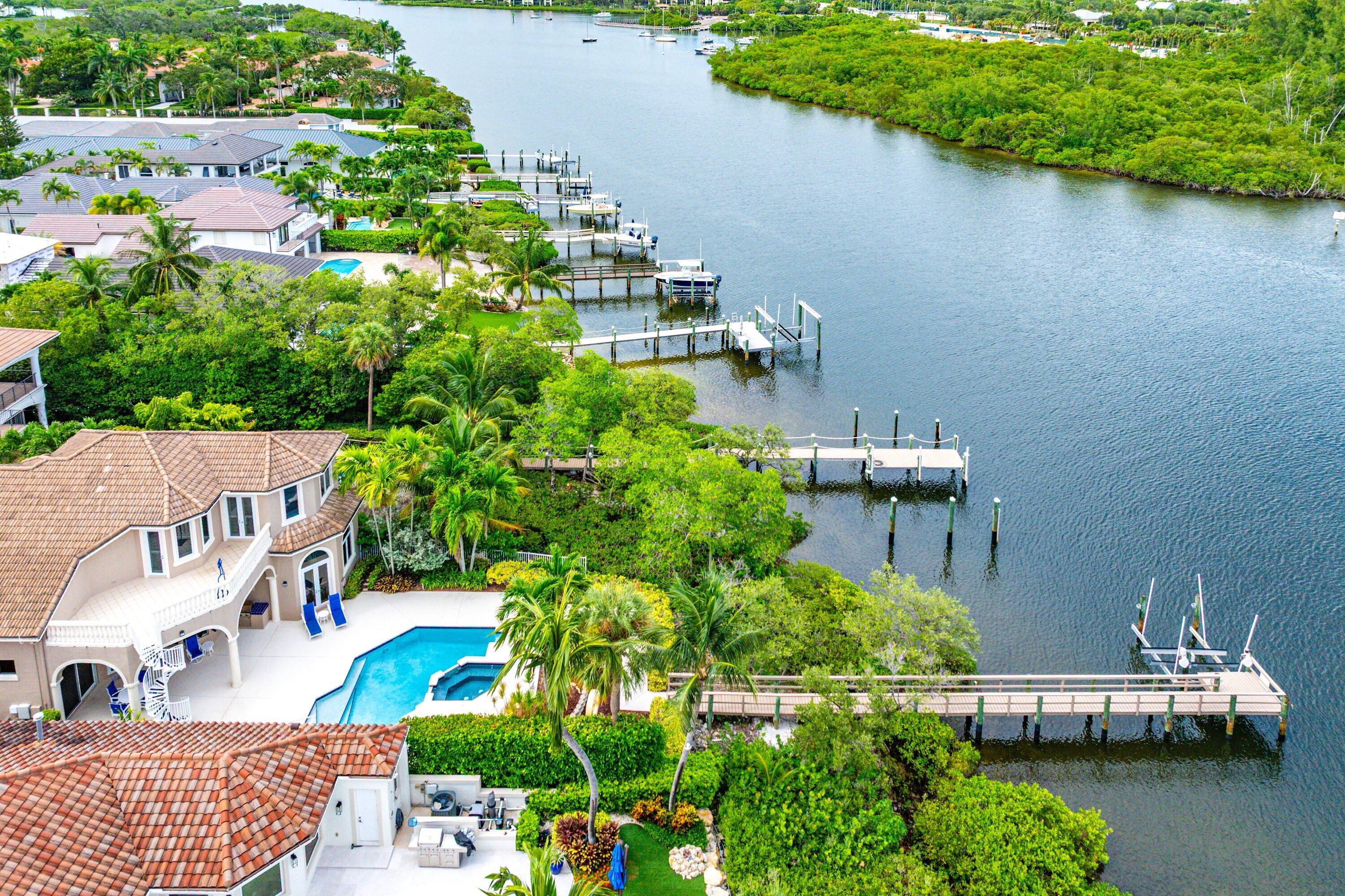 Experience unparalleled waterfront living in this stunning Jupiter estate on the Intracoastal with direct ocean access for boats with no fixed bridges. Boasting 4 spacious bedrooms, 3 bathrooms, and just under 4,000 sq. ft. of luxurious living space, this home perfectly blends elegance and comfort. Enjoy breathtaking water views from multiple rooms, a chef's kitchen with high-end appliances, and expansive living areas ideal for entertaining. The private dock with lift offers effortless boating, while the outdoor living spaces include a pool/spa and summer kitchen, providing a serene retreat for relaxation or gatherings. This one-of-a-kind luxury residence showcases exceptional custom upgrades throughout. Features include hurricane impact windows with plantation wood shutters, elegantcrown molding, a tankless water heater, and a central vacuum system. Car enthusiasts will appreciate the expansive, high-end 4 car garage, while bibliophiles will be captivated by the custom library crafted in rich red cherry wood. The palatial master suite conveniently located on the first floor offers a spacious spa tub, and the home is accented with custom lighting and a stunning staircase made of maple wood, reflecting unparalleled craftsmanship. Every detail has been thoughtfully designed to combine functionality, elegance, and timeless luxury. Located in one of Jupiter's most desirable neighborhoods, this property combines waterfront lifestyle with easy access to the finest dining, shopping, and beaches.