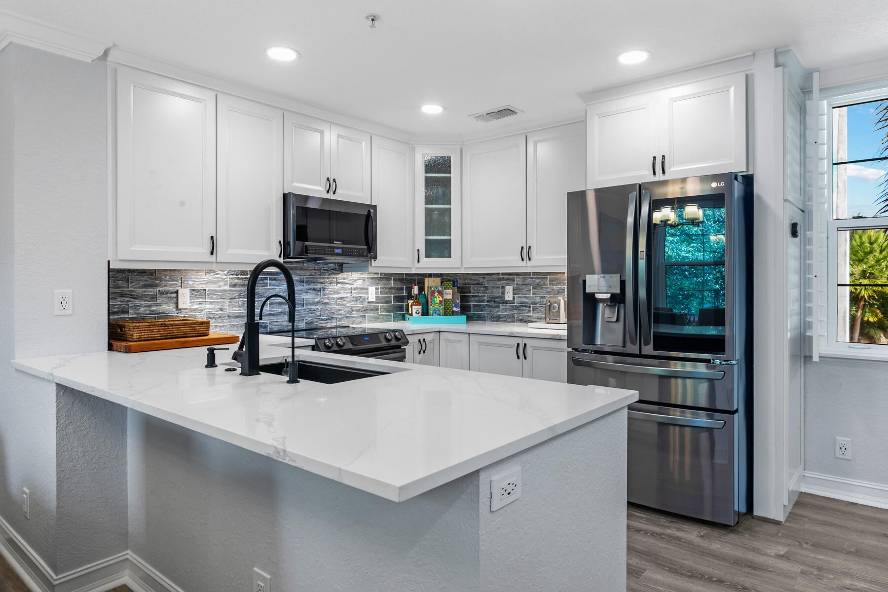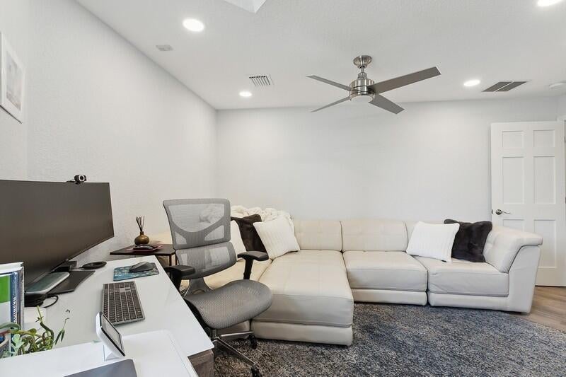LOCATION, LOCATION, LOCATION!! Situated in the HEART of West Palm Beach, is this Pristinely Renovated 3 Bedroom, 3 Bath CBS Town Home in the Beautiful Historic Grandview Heights Neighborhood! Exceptionally bright, move-in ready 3 story home with NEW ROOF, NEW impact windows and sliders, plantation shutters, recessed lighting, Ridge Core Waterproof Vinyl flooring throughout, electric blinds in all bedrooms with light and dark shade options, AC, fans, LG and Samsung appliances, water heater, all new GFI outlets with USB ports and so much more! This home is wired to Google Home offering incredible Smart Home features! Including a Flo Smart Water Moen Monitoring System, Ring Alarm System, 6 cameras, lighting system interior and exterior, garage door opening features, Nest thermostats, ...voice hubs in bedrooms and living room and Eero fast speed internet. Smoke and carbon monoxide systems attached to Ring. Stunning kitchen boasts all new soft close solid wood cabinetry, wide Quartz countertops, stunning tile work, new black stainless steel appliances and kick drawers! All three bathrooms upgraded with gorgeous tile work, custom glass doors for showers and combo tub baths, new vanities, sinks and hardware, oversized medicine cabinets with mirrors inside. First level bath offers WiFi mirror. Primary bath offers dual sinks, extra lighting and Toto toilet in private water closet. Beautiful newly tiled balcony and entry porch look out to charming neighborhood. Spacious 2 car garage has epoxy flooring and room for storage. Furnishings are negotiable. Tucked away in one of the Palm Beaches premiere historic neighborhoods, enjoy being close to absolutely everything! Downtown WPB, Cityplace, The Kravis Center, Convention Center, Howard Park with tennis, dog park and playgrounds, the Armory Art Center, Norton Museum of Art, Palm Beach, Golf Venues, Fine Dining, Shopping, Beaches, Brightline, TriRail, PB International Airport, and so much more! Pack your bag, and get ready to begin living your Florida lifestyle dream today!