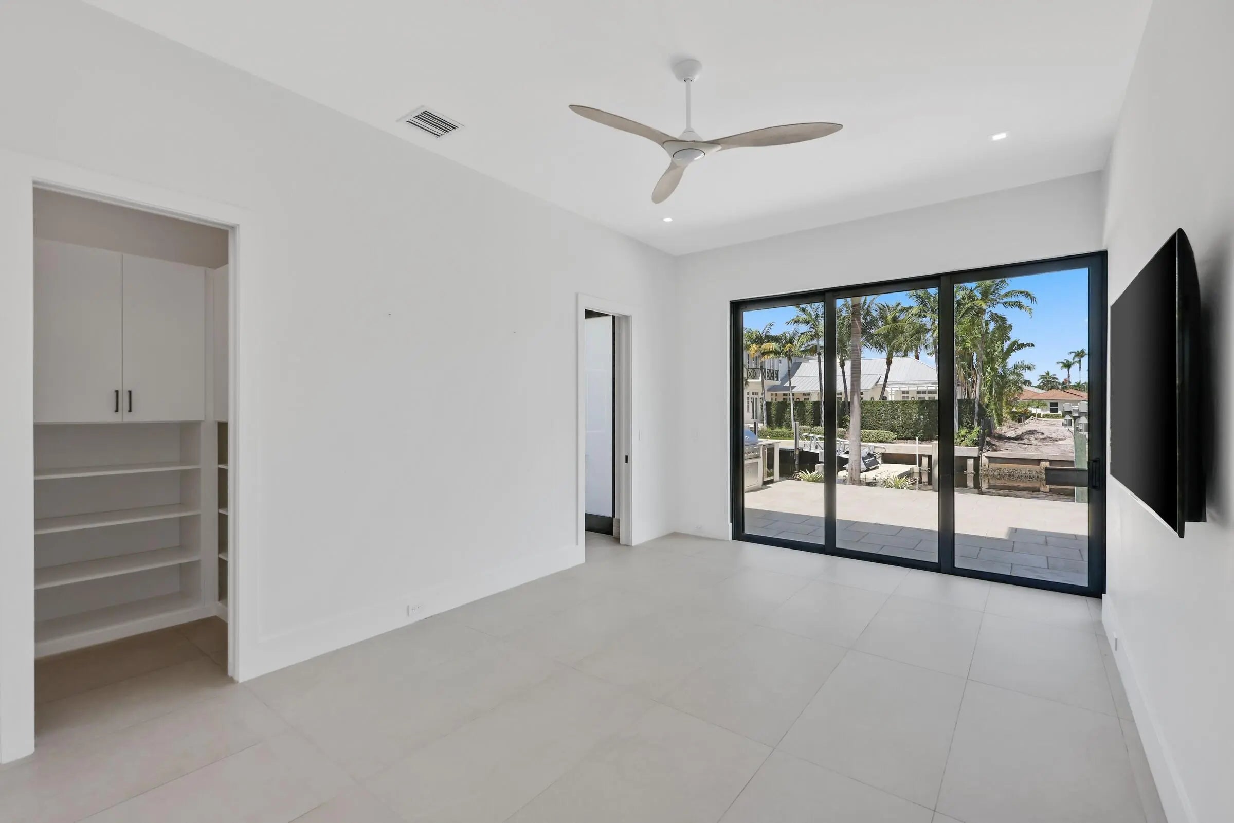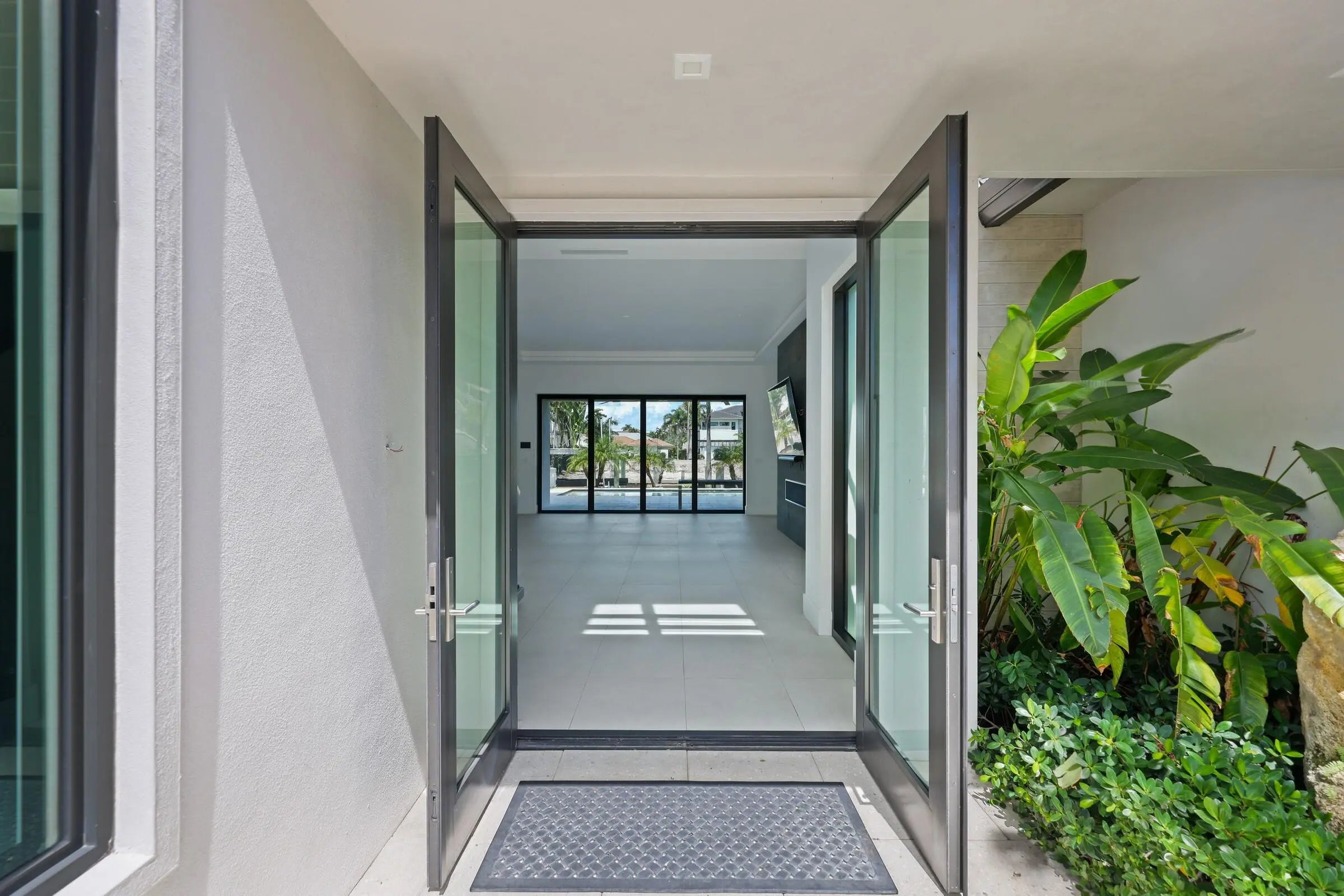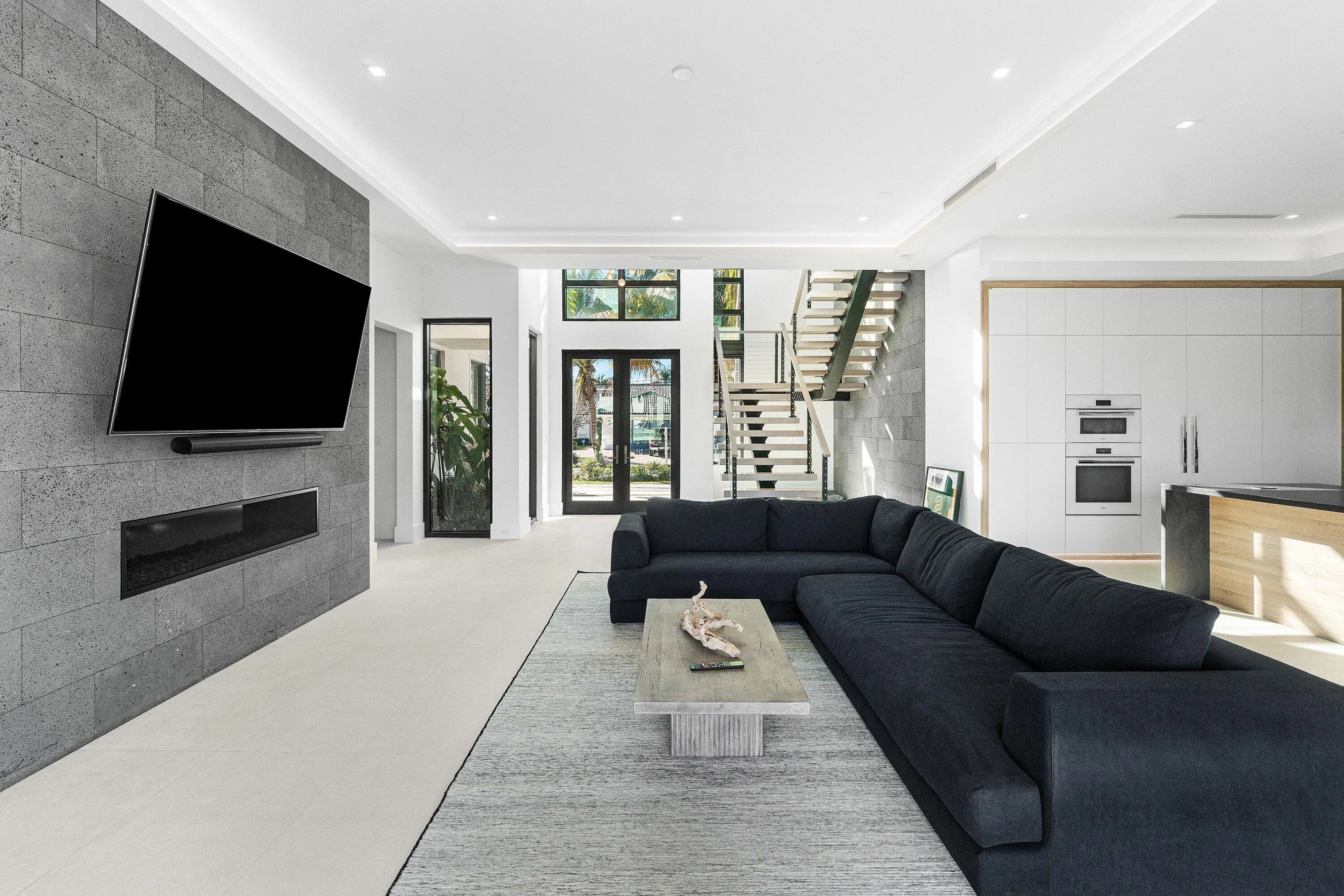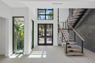 Welcome to your private waterfront oasis in the heart of Delray Beach. Built in 2020 and designed by the late, world-renowned architect Richard Jones, this extraordinary estate offers a seamless blend of modern design, soaring ceilings, and refined coastal living.From the moment you enter, the grand glass staircase and dramatic entryway set the tone for what awaits inside. The home features six spacious bedrooms, six and a half bathrooms, and over 4,500 square feet of carefully crafted living space. Walls of glass invite natural light throughout, while open living and dining areas create the perfect environment for both everyday living and large-scale entertaining.The gourmet chef's kitchen is outfitted with premium finishes and professional-grade appliances, serving as the heart