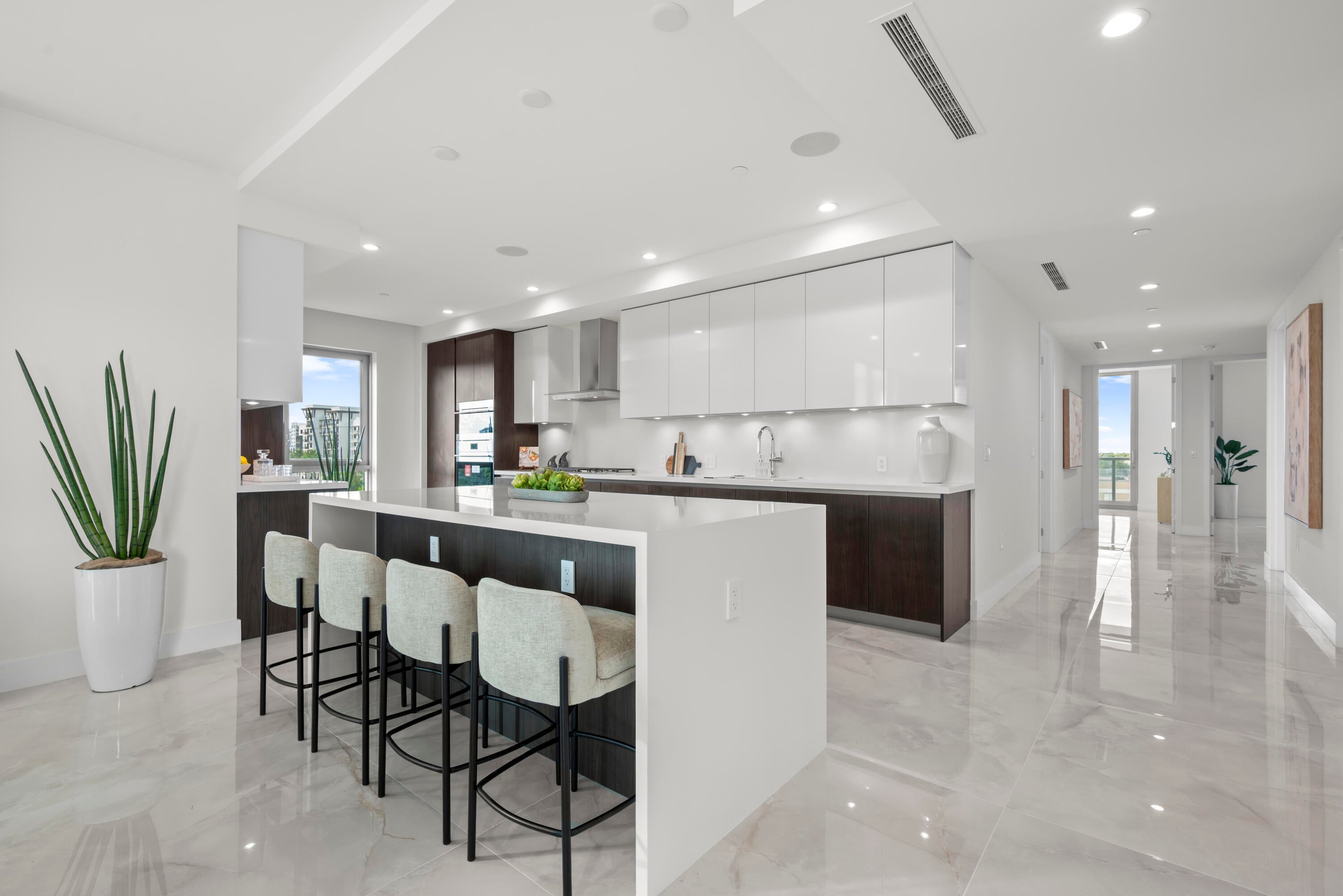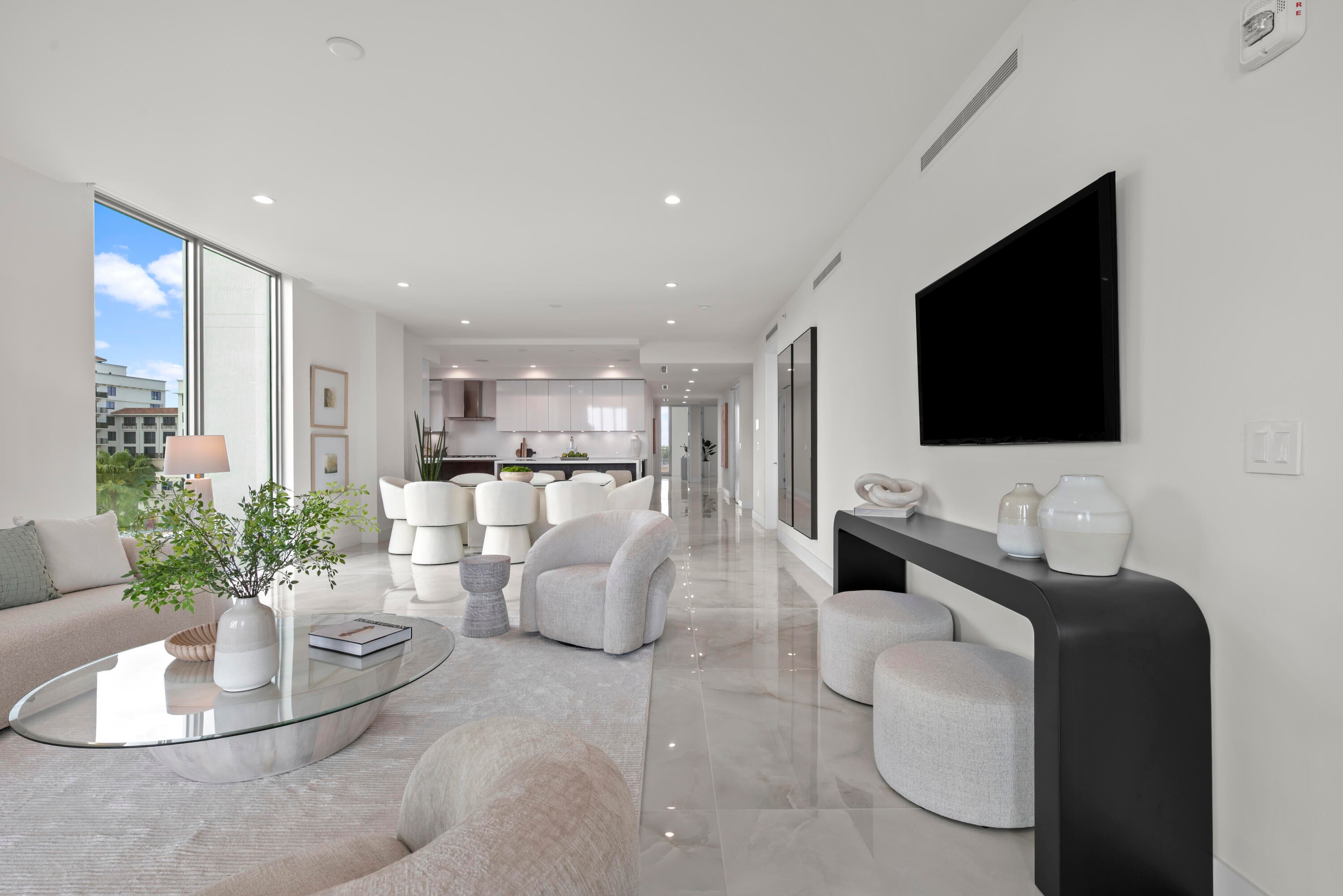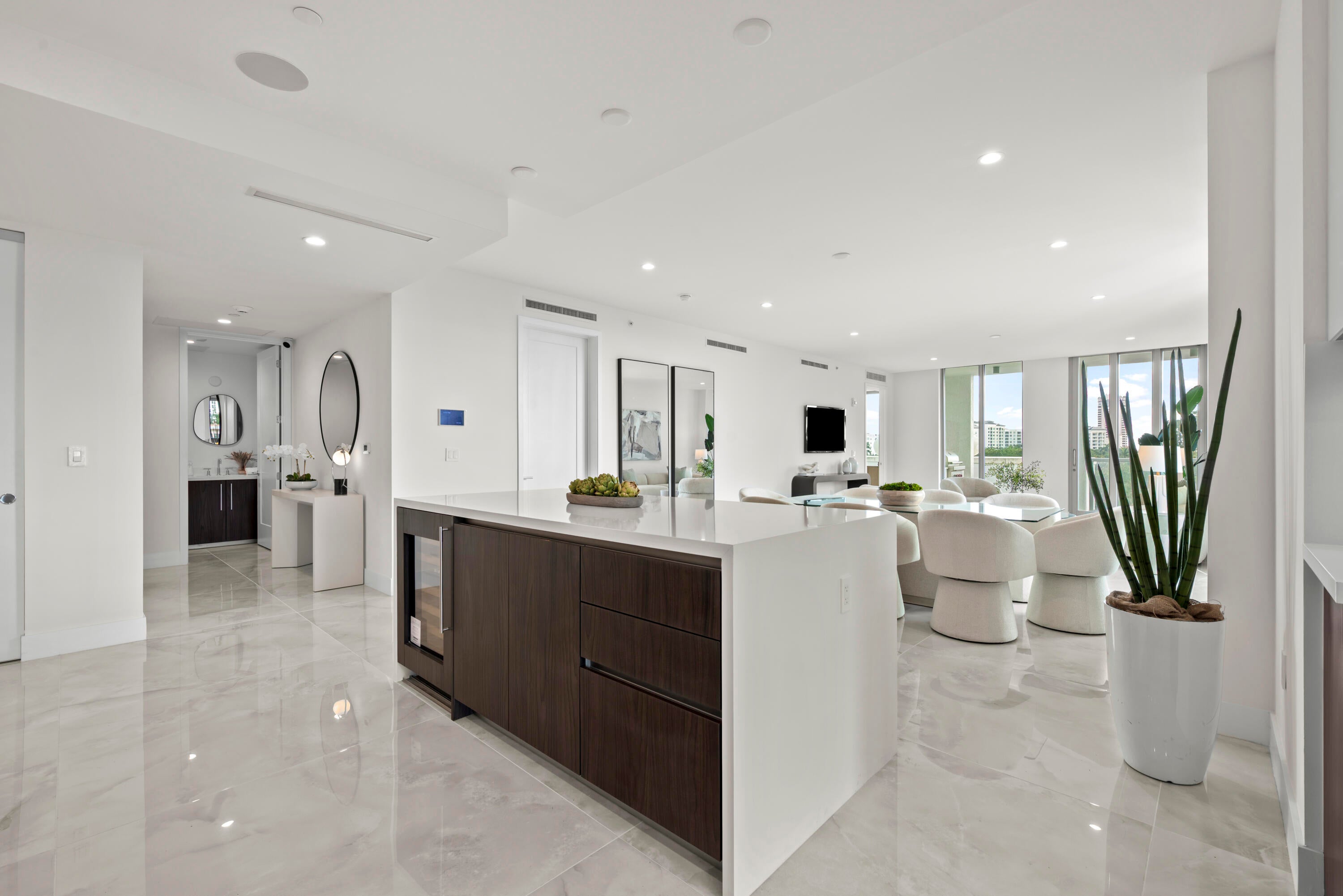 Welcome to your home in the sky! Royal Palm Residences represents the ultimate in luxurious living the heart of East Boca Raton. Unparalleled elegance and modern comforts can be found in this expansive customized corner residence featuring an open floor plan with 4 ensuite bedrooms, half bath and laundry room. The elevator opens directly into this sophisticated 5th-floor corner unit, offering southern, western, and northern views allowing you to savor the panoramic vistas from every angle. The chef's kitchen features sleek Italian cabinetry, Wolf and Subzero appliances, including a gas cooktop and wine refrigeration. The large island with seating is perfect for casual dining or entertaining guests. The kitchen is beautifully finished with elegant quartz countertops and a matchingback splash. The spacious living room is a showstopper with two sets of glass doors that lead out to an enormous wrap around balcony. Here, you can grill on the outdoor Wolf gas summer kitchen or enjoy breathtaking views of the Boca Raton Resort and golf course. Indulge in the epitome of high-rise living in this spectacular home upgraded with Crestron system, TOTO toilets, porcelain flooring in every room and incredible building amenities and 2 parking spots. Close to exceptional restaurants, shops, markets and the beach this is the epitome of luxury in condominium living in East Boca Raton.