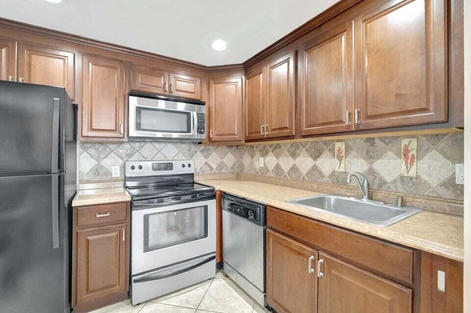 Very Nice one bedroom 1,1/2 bathrooms on the first-floor Park in front of your home, renovated semi open concept kitchen, walk- in shower, and enclosed porch. in a resort style community 6 pools, indoor and outdoor, a Bistro by the Monaco club house, a gym theater, tennis, and Golf, and more...close to the beach and restaurants, courtesy buses take you shopping.