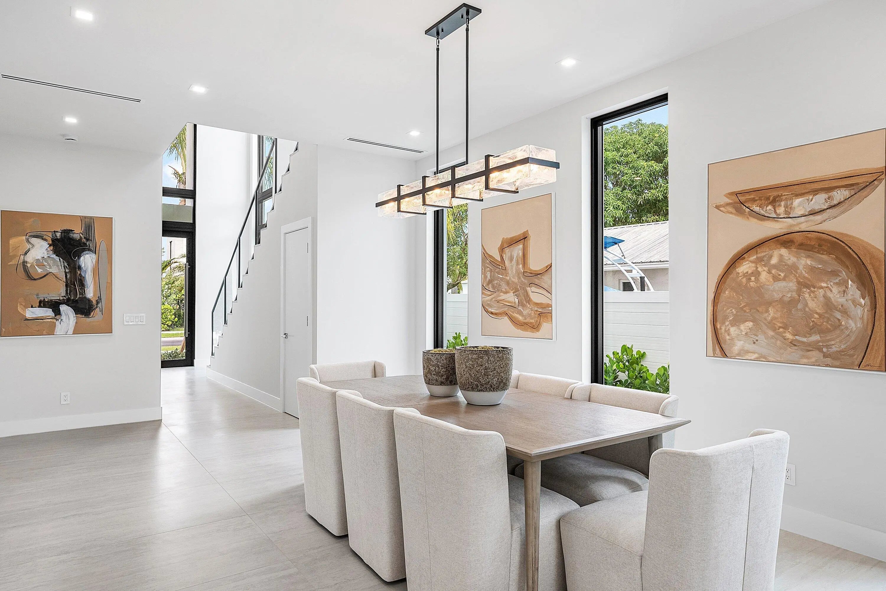 Welcome to Hibiscus House, a curated haven by Stamm Development Group, perfectly situated in one of East Delray's most desirable neighborhoods. This 4-bedroom, 4.5-bath residence offers 3,556 square feet of thoughtfully designed living space, with a total of 4,989 square feet under roof. Every detail of this home has been crafted for seamless indoor-outdoor living, blending sophistication with comfort for both entertaining and relaxation.On the first level, a stunning formal dining room flows effortlessly into the open living area, where floor-to-ceiling sliders invite you to the outdoors. The sleek, neutral-toned gray kitchen--equipped with premium Thermador appliances, including an 8-burner range--caters to the most discerning chef.