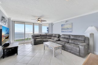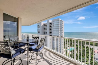 Endless Views. Timeless Style. Coastal Perfection. Indulge in luxury oceanfront living from this spectacular 14th-floor end unit boasting unobstructed, panoramic views of the Atlantic. Wake to breathtaking sunrises and savor the serenity of coastal breezes from your expansive wrap-around balcony. This beautifully appointed 3BR/2BA residence showcases an updated kitchen with new stainless-steel appliances, elegant baths, and accordion shutters for peace of mind. Every bedroom captures a view of the sea, creating a seamless connection to the shoreline. Seabreeze is a private, gated community offering resort-style amenities including a sparkling pool, fitness center, clubhouse, billiards, and tennis. Enjoy deeded beach access, a fishing dock, and kayak launch for endless seaside adventure.A 1-car garage completes this exceptional offering of refined coastal living.