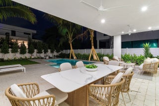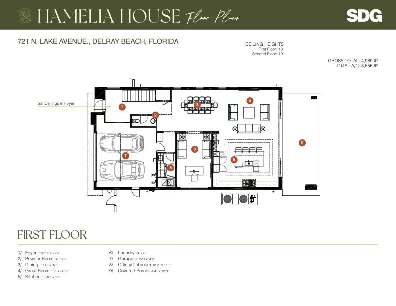 Welcome to Hamelia House, a curated haven by Stamm Development Group, perfectly situated in one of East Delray's most desirable zip codes. This 4-bedroom, 4.5-bath residence offers 3,556 square feet of thoughtfully designed living space, with a total of 4,989 square feet under roof. Every detail of this home has been crafted for seamless indoor-outdoor living, blending sophistication with comfort for both entertaining and relaxation.On the first level, a stunning formal dining room flows effortlessly into the open living area, where floor-to-ceiling sliders invite you to the outdoors. The sleek, neutral-toned kitchen--equipped with premium Thermador appliances, including an 8-burner range--caters to the most discerning chef.