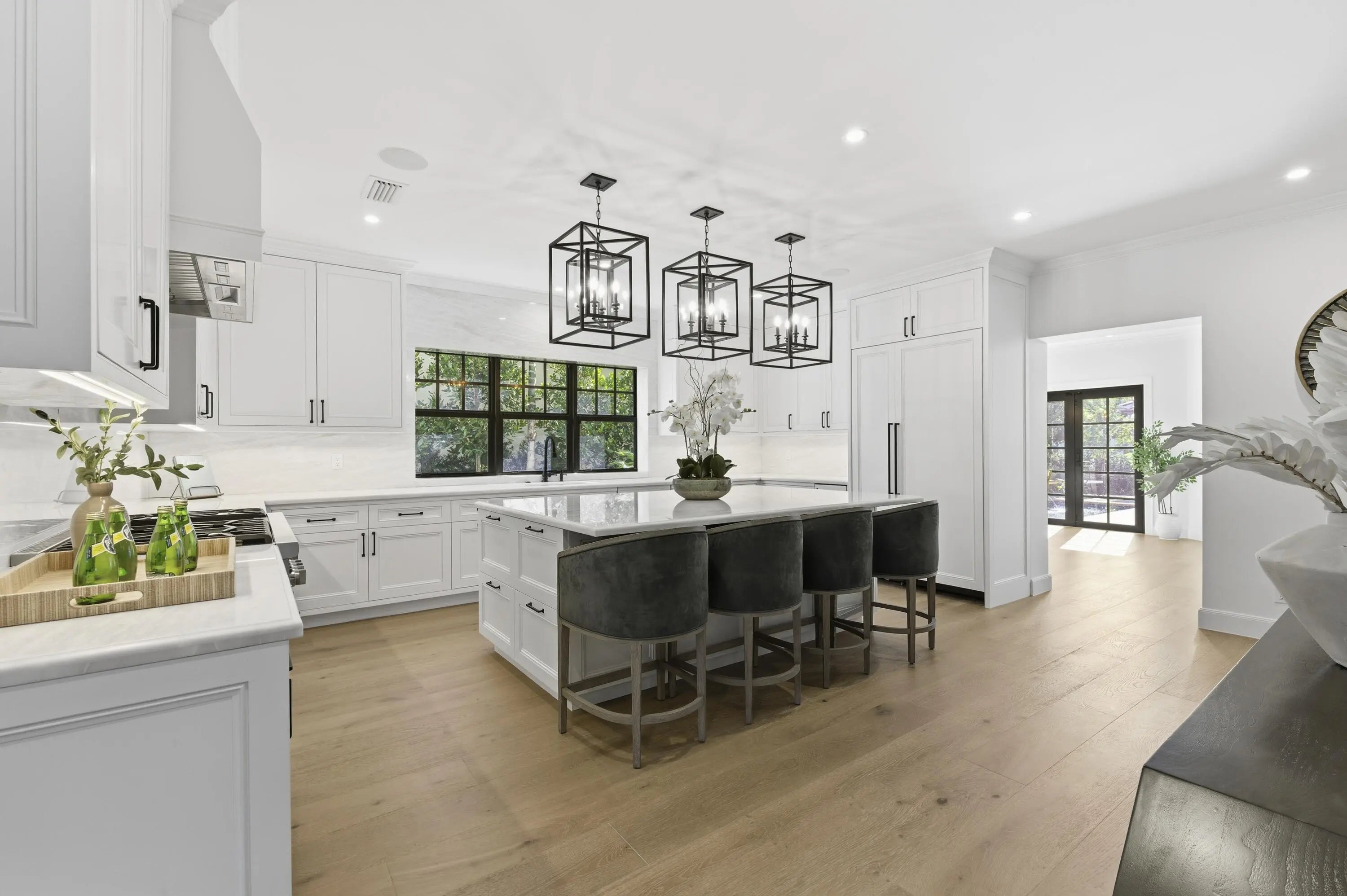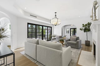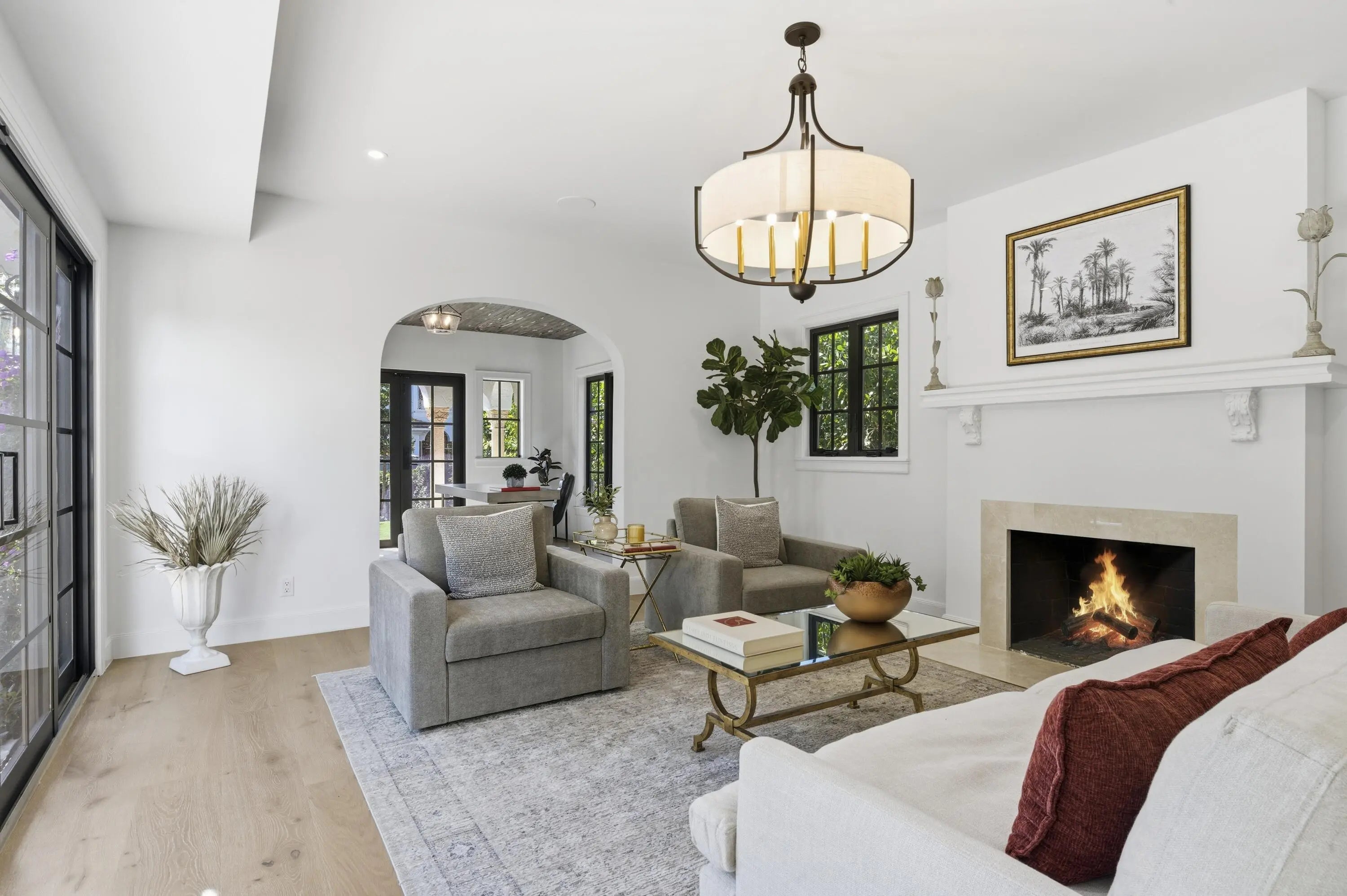 Step into a world where elegance and Spanish-Mediterranean romance come together in perfect harmony. Originally built in 1926 and masterfully reimagined with a full renovation in 2025, this architectural jewel invites you through lush, manicured landscaping into a private Chicago-brick courtyard centered around a shimmering saltwater plunge pool with a tranquil water feature, a serene introduction to the timeless beauty within. Inside, the foyer welcomes you with a signature spiral staircase. At the focal point of the formal living room an original wood burning fireplace and expansive sliders that frame the courtyard and bathe the interiors in natural light. Adjacent, a warm and intimate den/office offers a quiet retreat.