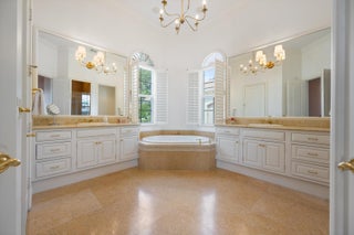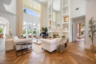 Welcome to 115 Echo Lane, a masterfully reimagined residence that captures the essence of luxury golf course living within The Loxahatchee Club, one of Palm Beach County's most coveted gated communities. Perfectly positioned along the 15th hole of the Jack Nicklaus Signature Course, this elegant home offers 120 feet of sweeping golf frontage framed by lush landscaping and tranquil views.Inside, modern sophistication meets timeless design. Herringbone-patterned hardwood floors flow through gracious living spaces, while the completely renovated kitchen showcases Macchia Vecchia marble countertops and backsplash, a Sub-Zero refrigerator and freezer, custom hood, and Kohler sinks and hardware.Freshly painted cabinetry, designer lighting, and select upgraded window treatments add a refined finishing touch throughout. The powder and cabana baths feature Macchia Vecchia marble countertops and designer wallpaper, seamlessly continuing the home's elevated aesthetic. The primary suite, guest suite, and office are conveniently located on the main level, with two additional guest suites and a versatile loft upstairs. Additional enhancements include new carpeting in the primary and guest suites, all-new lighting and sconces throughout, and complete interior and exterior repainting in 2024. Technology and comfort updates include a new Hotwire alarm system with doorbell camera and a fully digital pool and spa system. Outdoor improvements feature landscape lighting, refreshed grounds with new sod, and the addition of lemon and mango trees. 115 Echo Lane blends thoughtful design, modern comfort, and timeless style in one exceptional Loxahatchee Club residence.