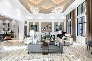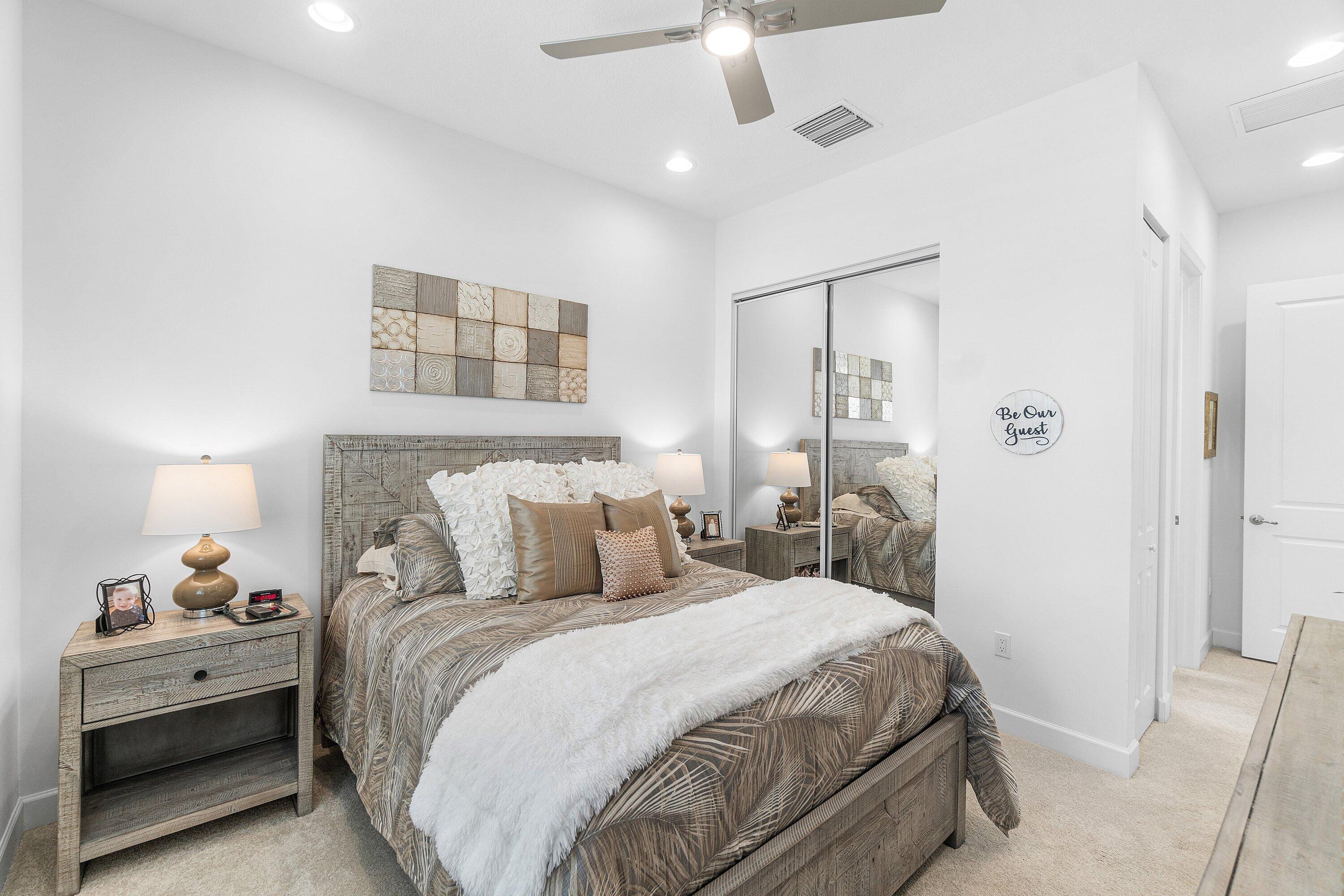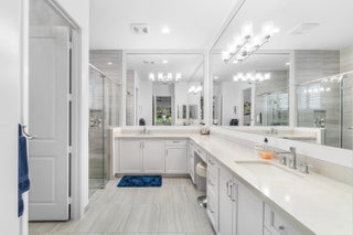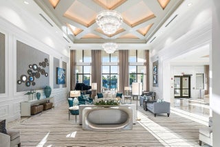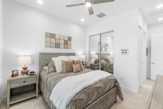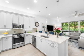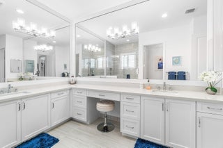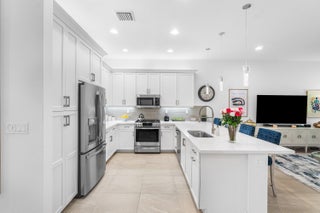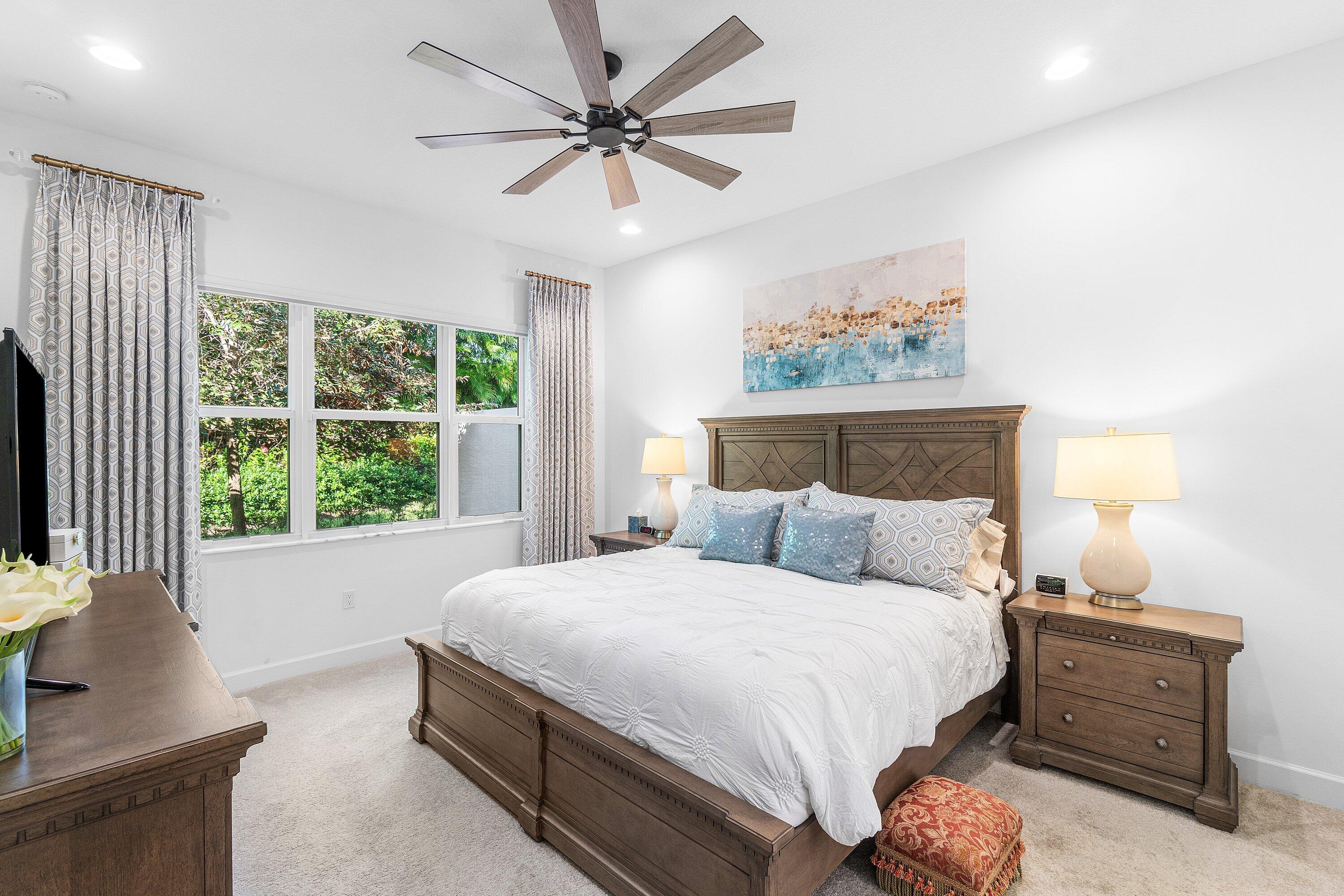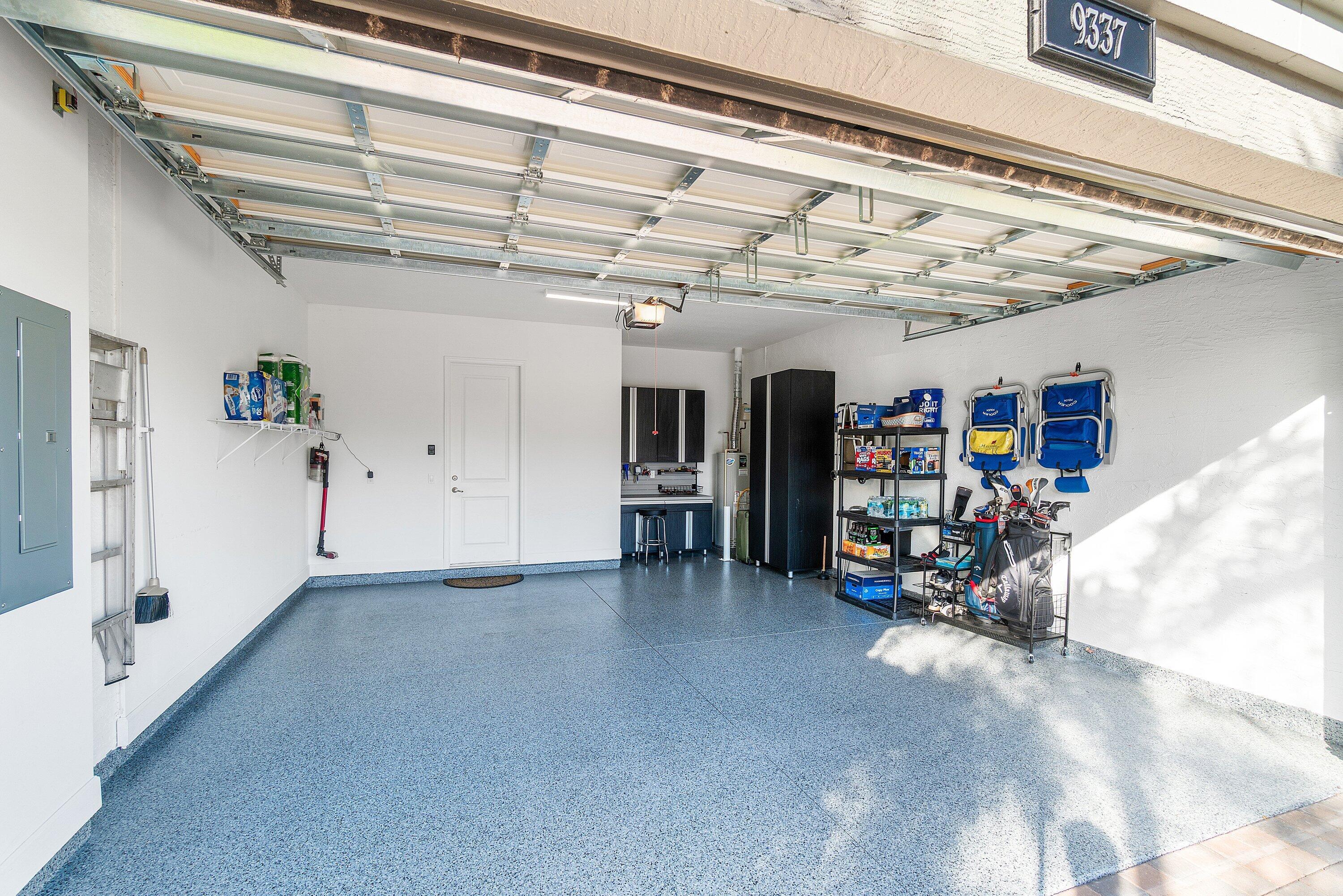 Experience the perfect blend of elegance, functionality, and modern luxury in this stunning Sapphire 2 bedroom PLUS Den model w/over $100,000 in UPGRADES, located in the highly sought-after Valencia Sound community. Every detail has been thoughtfully curated to create a home that is as beautiful as it is comfortable. This is the ONLY Sapphire model on the market at the moment! Step through the etched glass entry door with sidelight into a bright, open concept floor plan featuring stunning porcelain tile throughout living areas, high-end lighting fixtures & ceiling fans, and extra hi-hat lights, highlighting the meticulous attention to detail. The gourmet kitchen is a true culinary centerpiece, showcasing an expansive and gorgeous Quartz island, large single sink, white cabinetry, pristine Quartz countertops, grey glass subway tile, backsplash, trash pull out, pantry, and top of the line stainless steel GE appliances including a natural GAS range! The spacious dining room is open to the kitchen and great room, which is open and airy and lined with impact resistant sliding doors offering tranquil and tropical garden views, and a built in wine bar with lighting! The primary suite is spacious, with plush carpet, motorized blinds and custom drapes, dual walk in closets with custom built-ins including a glass door cabinet and lots of drawers, as well as lovely garden views. The master bath offers a spa-like atomosphere with large glass door shower, dual Quartz vanities, and generous linen closet. Bedroom 2 is ample in size and has an en-suite bath with custom framed mirrors to the ceiling, glass door shower with tiled extended to the ceiling, Quartz vanity, and porcelain tile. The den features a custom made built-in with remote controlled lighting which provides an ideal space for a home office or study, or to use as a 3rd bedroom (no closet) by utilizing a sleeper sofa, and space for a large wall mounted flat screen tv. Designed for comfort and convenience, this home includes impact-resistant glass throughout, natural gas appliances, motorized blinds, professionally epoxyed garage floors, a built in work station and cabinets, steel pull down attic stairs to access ample storage space in the attic, and an extended back paver lanai that seamlessly connects indoor and outdoor living. Lush tropical landscaping completes the picture, providing a serene and inviting setting. This residence combines thoughtful upgrades, sophisticated finishes, and a prime location in Valencia Sound, a [premier active community with an abundance of social opportunities and amenities, including an expansive clubhouse, full service restaurant serving breakfast, lunch and dinner 6 days a week AND sports lounge, resort style pools, state of the art fitness center, aerobics room, bocce ball, billiards, card rooms, theater and social hall, tennis, pickleball, arts and crafts studio, and countless clubs and organizations all awaiting you! This home offers the ultimate in Florida luxury living! *(Hot tub, dining room chandelier and entry chandelier do not convey.)*