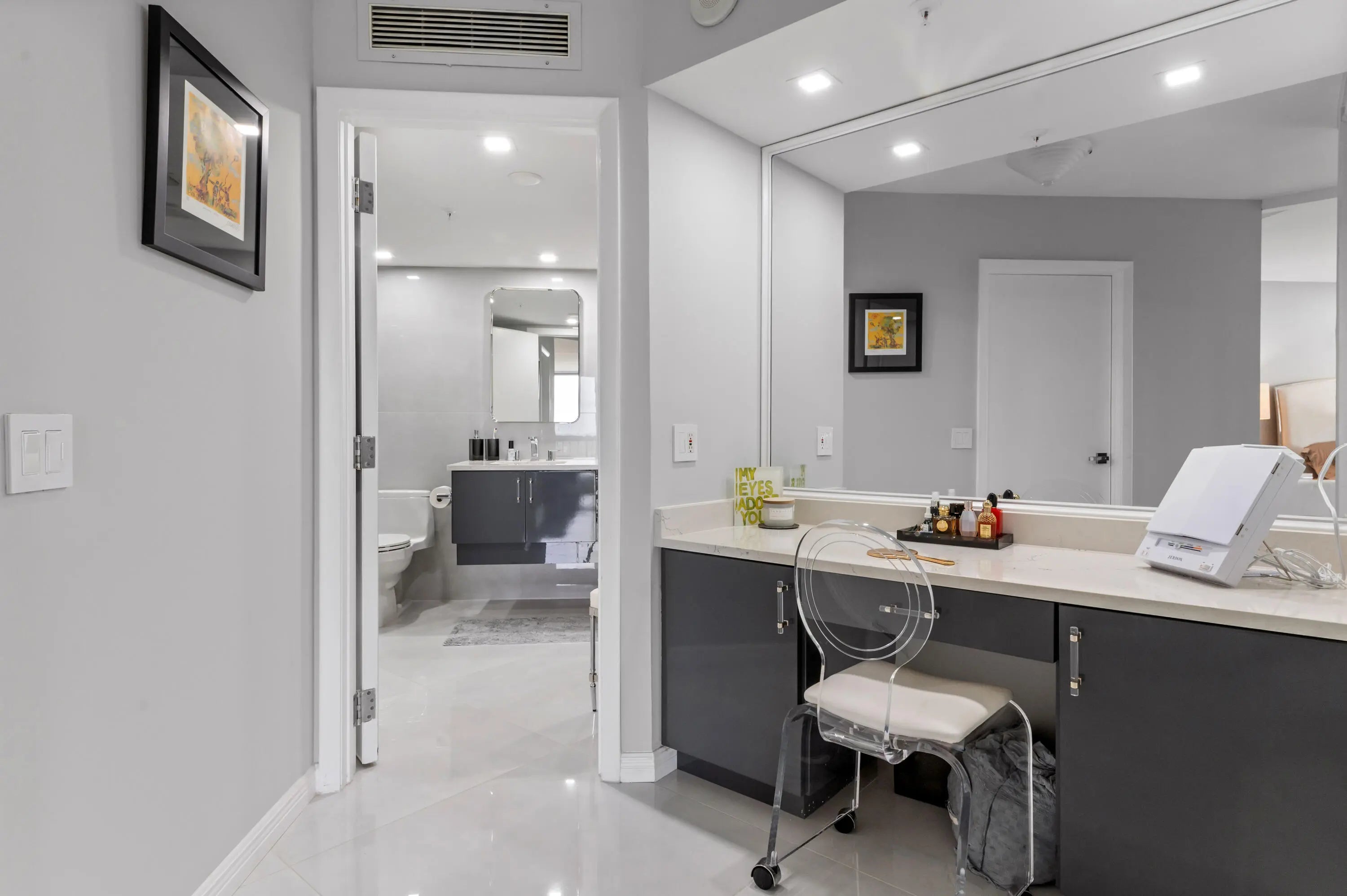 The epitome of elegance in the heart of WPB offering the grandeur of inside & outside living with a 640 sq. ft., wrap around terrace. Sublime and totally newly renovated, with intriguing contrasting colors . Dazzling white kitchen with stone countertops and brand new appliances. The large spaces with porcelain tiles throughout & marble tiles in foyer enhance the spaciousness of the areas. The 3rd BR is opened up to the LR and offers from the floor to ceiling windows/doors expansive mind blowing views on the ocean, lake, golf, and the cities of Palm Beach and West Palm Beach. This unique condo has it all, perfect walls and ceilings, gorgeous bathrooms and Your dreams come true with a huge walk-in closet.