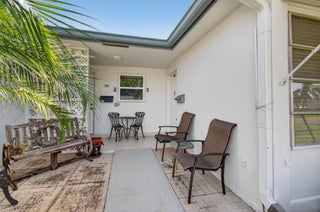 This one-bedroom, one-and-a-half-bathroom condo/villa is located in an active 55+ community. The unit offers approximately 1,040 square feet of living space with neutral tile flooring throughout. The property features two large walk-in closets, providing ample storage space. The air conditioning system was replaced in May 2021, ensuring comfortable living. The water heater was updated in 2020, and the roof was replaced in 2017, providing peace of mind for the next owner. Enjoy Florida living at its best in this very active 55+ community, where you'll find many planned social activities, a large, heated resort-style saltwater pool, a clubhouse, pickleball courts, tennis courts, and shuffleboard. Located close to all amenities, just minutes to the beach and downtown Delray,where you'll discover quaint shops, open-air cafes, fine restaurants, shopping malls, theaters, places of worship, and more, close to I-95/Turnpike. Each building of 4 villas shares a coin-operated washer and dryer. This lovely villa is offered turnkey/furnished.