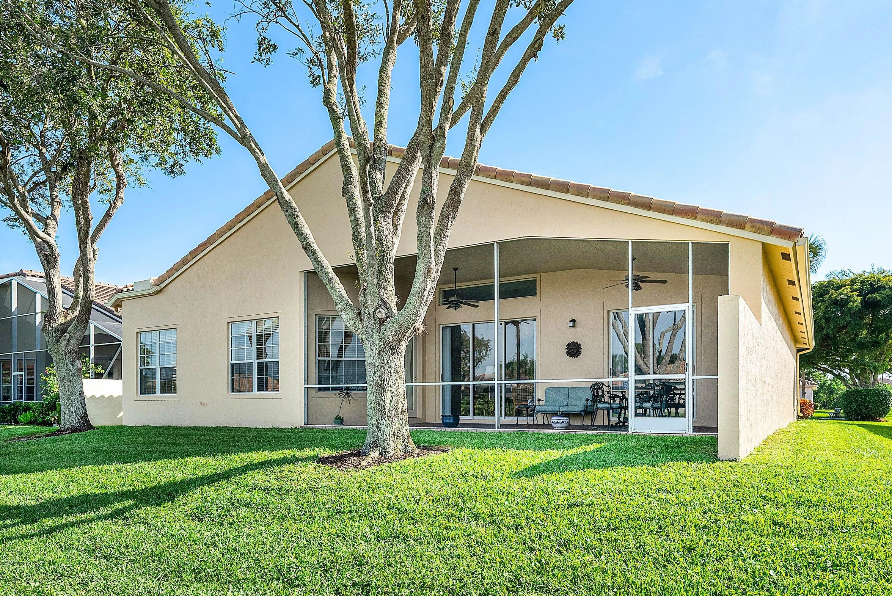 BRAND NEW 2026 ROOF being installed! This sought-after Rubicon model with three bedrooms plus an office. is perfectly positioned on a tranquil cul-de-sac with lush green space and lake views. With a generous setback, this home unfolds like a private estate. Located in a gated active adult community with a newly renovated luxury clubhouse and a soon to come sports complex, Ponte Vecchio offers something for everyone.