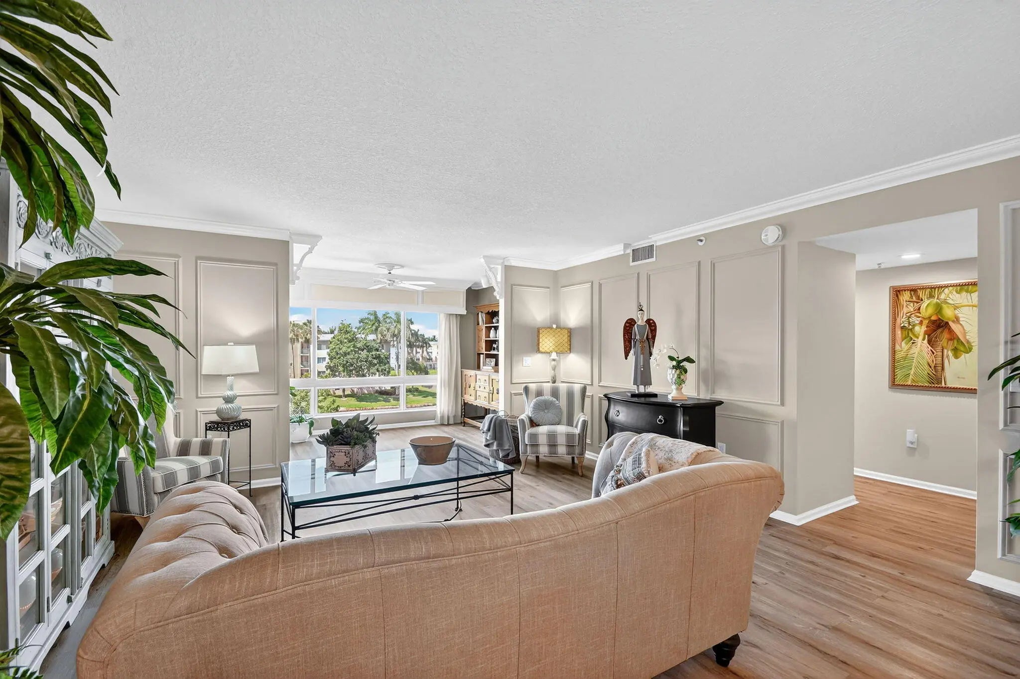 Live the Life You Deserve in This Rarely Available Majesty Model at Coral Lakes: Welcome to your slice of paradise in Coral Lakes, one of South Florida's premier 55+ communities. This home offers 1,869 square feet of beautifully remodeled penthouse living with breathtaking panoramic lake views. Designed for comfort and style, this two-bedroom plus den, two-bath residence features an enclosed Florida room perfect for morning coffee or sunset relaxation. The spacious primary suite is a true retreat, complete with a walk-in closet and spa-inspired bathroom with dual vanities, a Roman tub, and a separate glass-enclosed shower. Thoughtful upgrades throughout the home include rich wood-look laminate flooring, crown molding, and plantation shutters.