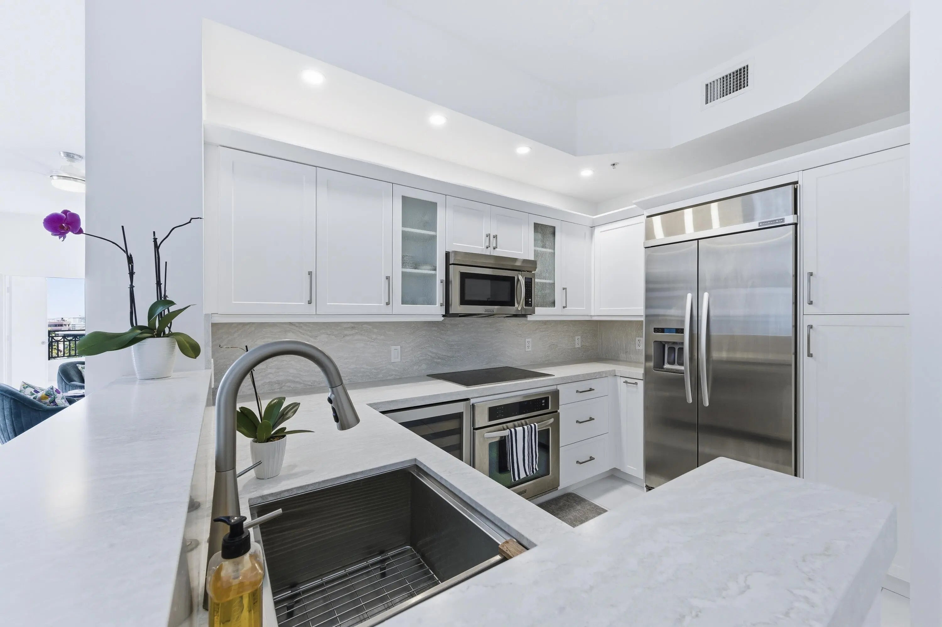 Highly desirable 2 BD/2 BA unit with a den. North and West exposures, conveniently close to CityPlace, with beautiful views in the heart of downtown West Palm Beach. This residence boasts a wrapped balcony offering sweeping city views and beautiful sunsets. The unit has an updated kitchen with quartz counters, new cabinets and high-end appliances, including dishwasher and induction cooktop and new commercial grade garbage disposal. Bathrooms have been updated with new fixtures, toilets, showerheads and related plumbing. Further upgrades include new HVAC, Washer/Dryer, paint, lighting, Sonos AV and impact doors and windows.