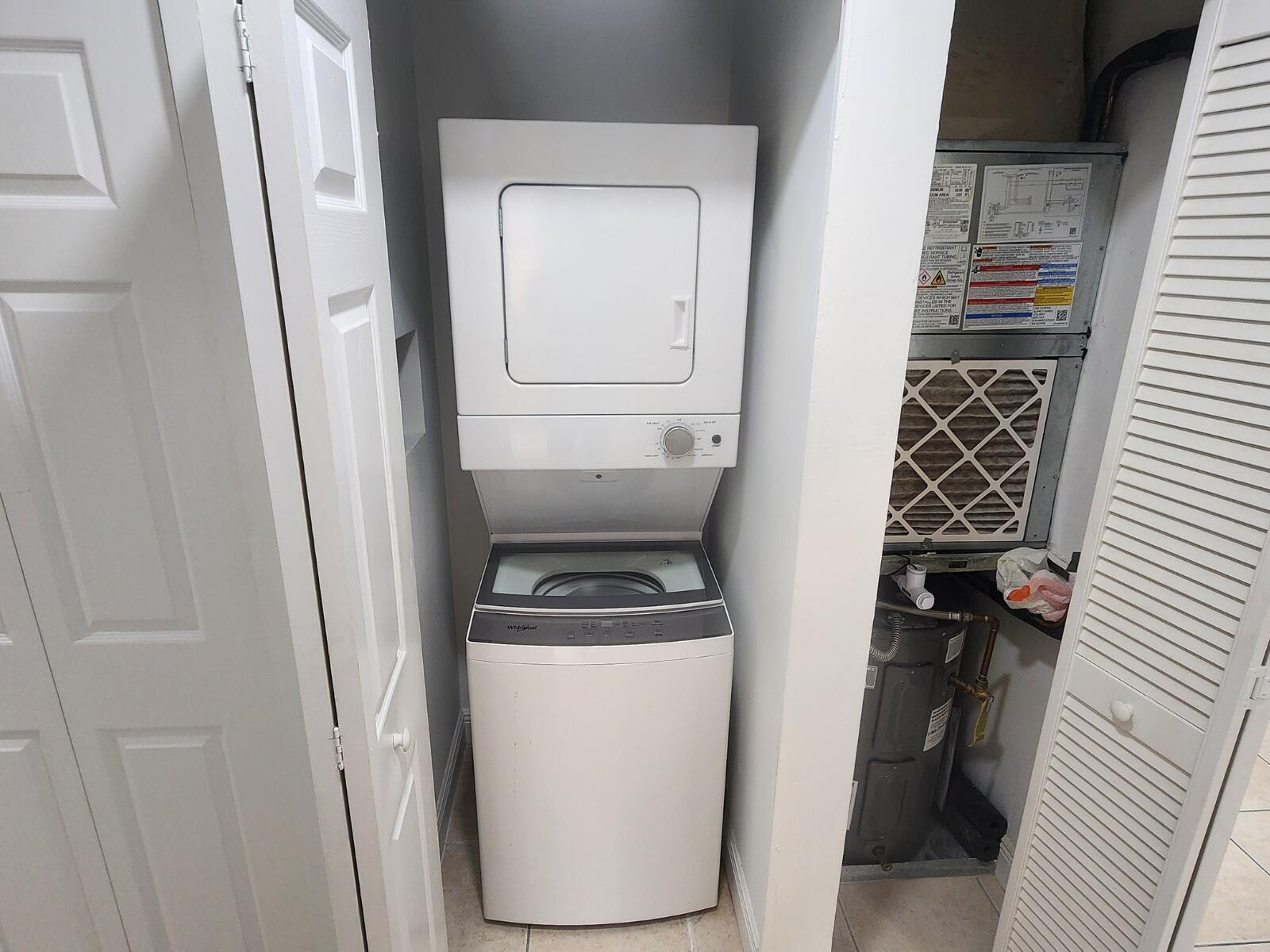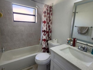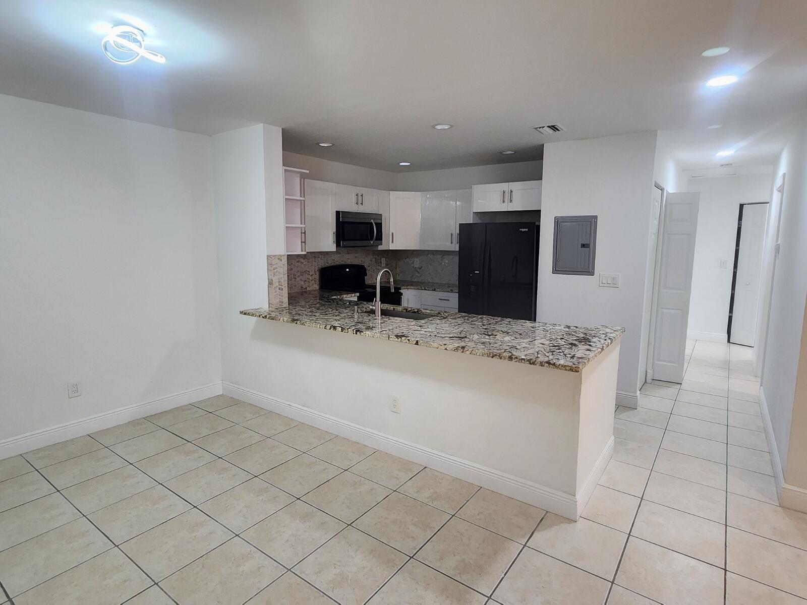 Charming and beautifully renovated 3-bedroom, 2-bathroom condo located on the second floor. The unit features spacious tile floors, new ceiling fans in the bedrooms, and a fully renovated open-concept kitchen with brand-new cabinets, appliances, and granite countertops. It also offers a new air conditioning system and in-unit washer and dryer for added comfort. This condo is move-in ready and perfect for immediate enjoyment. Residents enjoy access to a large pool, tennis courts, and two assigned parking spaces for convenience. The property also includes accordion hurricane shutters for peace of mind.