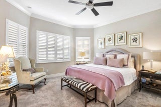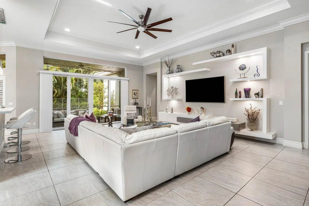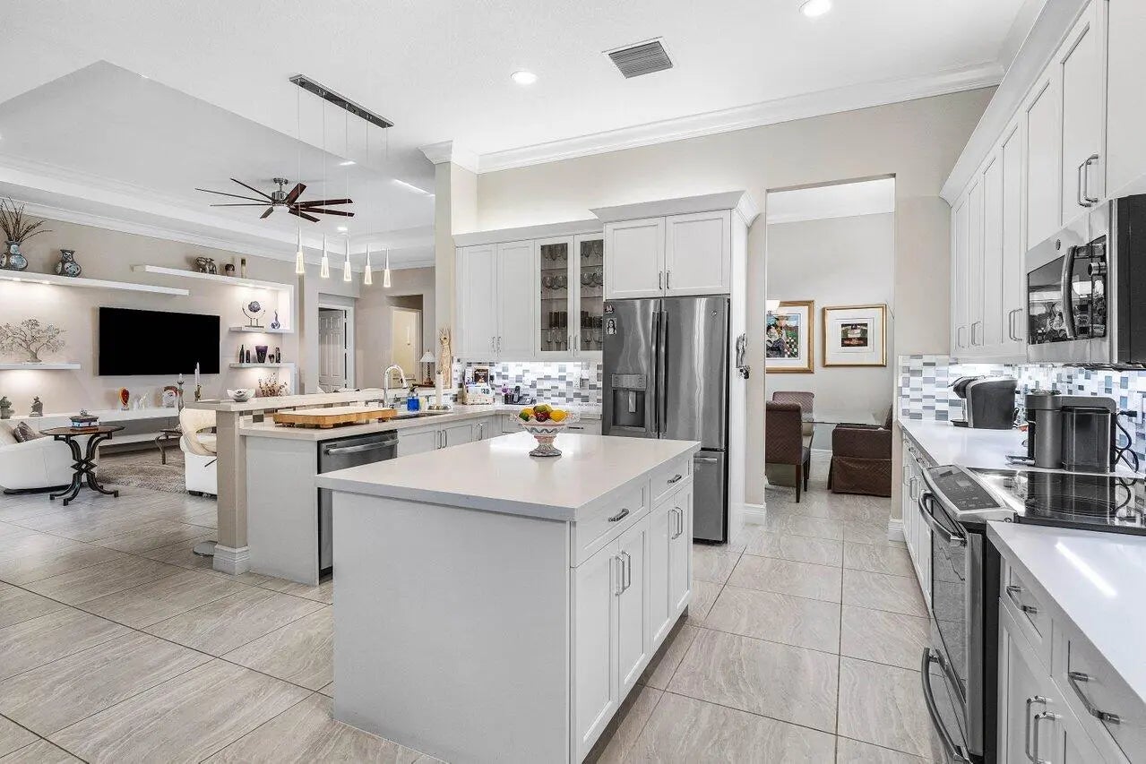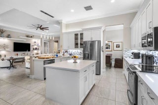 Experience refined living in this elegantly appointed and highly coveted Julia floor plan, perfectly situated on a lush, private, and lot. This home radiates curb appeal with its soothing gray exterior, decorative driveway, 3-car garage, and professionally designed landscaping with sculpted topiaries.Inside, you're greeted by dramatic volume ceilings, custom crown molding, abundant recessed lighting, natural sunlight, and pristine tile floors throughout. The open-concept Great Room is both stylish and inviting, featuring a stunning contemporary built-in entertainment wall, illuminated display shelves, and a high-end ceiling fan--ideal for effortless entertaining or relaxing.The light and bright chef's kitchen is a true ...