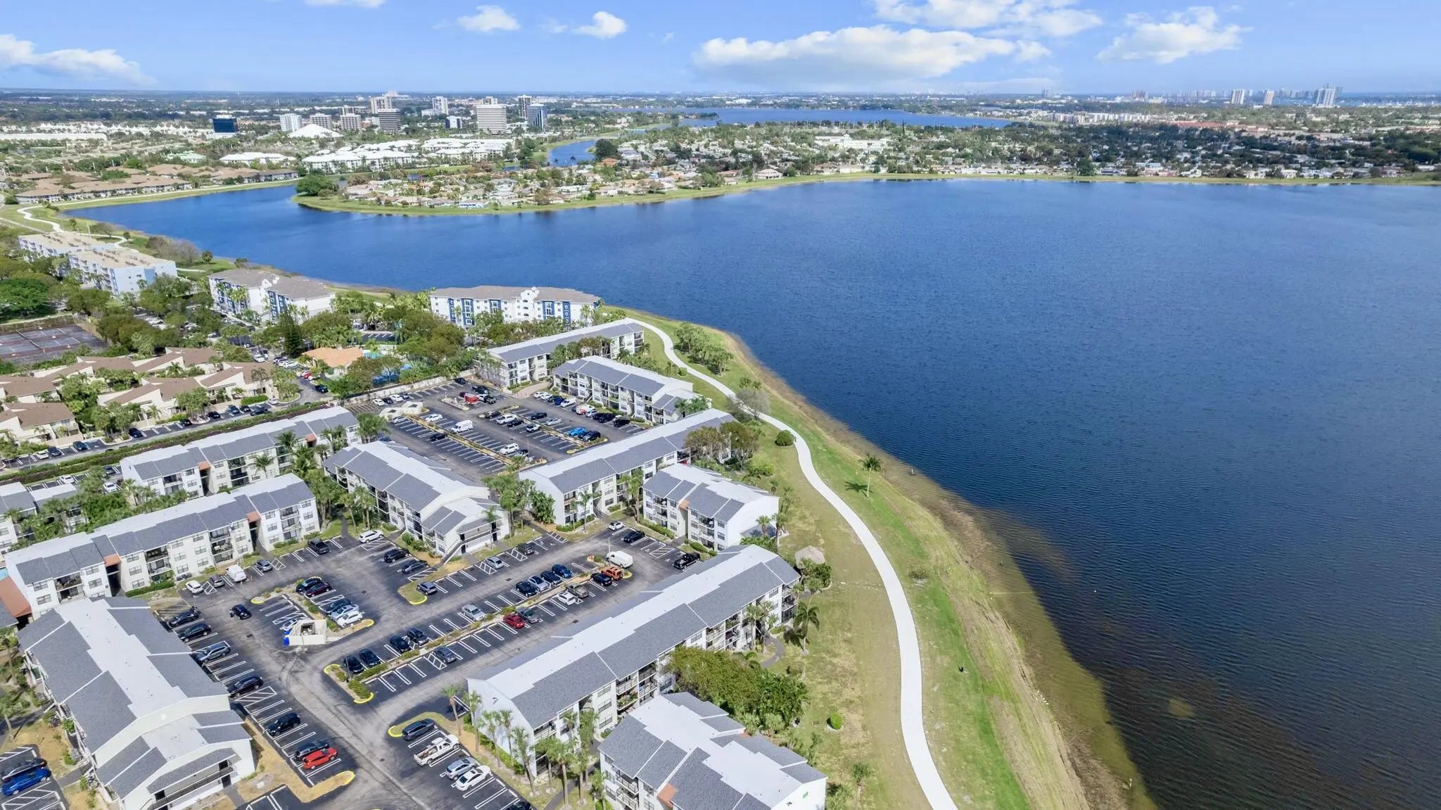 Offering waterfront and downtown skyline views from every room, plus an updated kitchen with new appliances, sleek black countertops and porcelain flooring throughout. Bright, open layout with large walk in closet. The lakefront community features resort-style amenities including tiki huts, BBQ areas, gym, and pool. Minutes to downtown West Palm, Clear Lake trails, Brightline, and I-95. Ideal as a first home, seasonal retreat, or high-demand rental.Part of The Executive Collection, available individually or as part of an income-producing package. Owner Financing Available with 30% down.