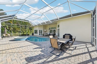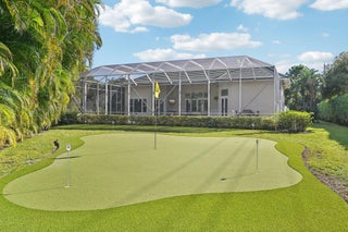 Experience refined living in the heart of Jupiter. This elegant estate features three spacious bedrooms, a private office, and four beautifully appointed bathrooms, all highlighted by soaring ceilings and generous room sizes. Remodeled kitchen with an induction range, great for cooking. Impact windows throughout. Set back for added privacy, the home offers a serene backyard retreat with a salt pool, spa, and custom putting green, perfect for relaxing or sharpening your short game before visiting Jupiter's nearby world-class courses. A true blend of luxury and tranquility in one of South Florida's most desirable locations. AC's 2024 & 2018, Washer & Dryer 2024, brand new bedroom flooring, new Master bath vanities.