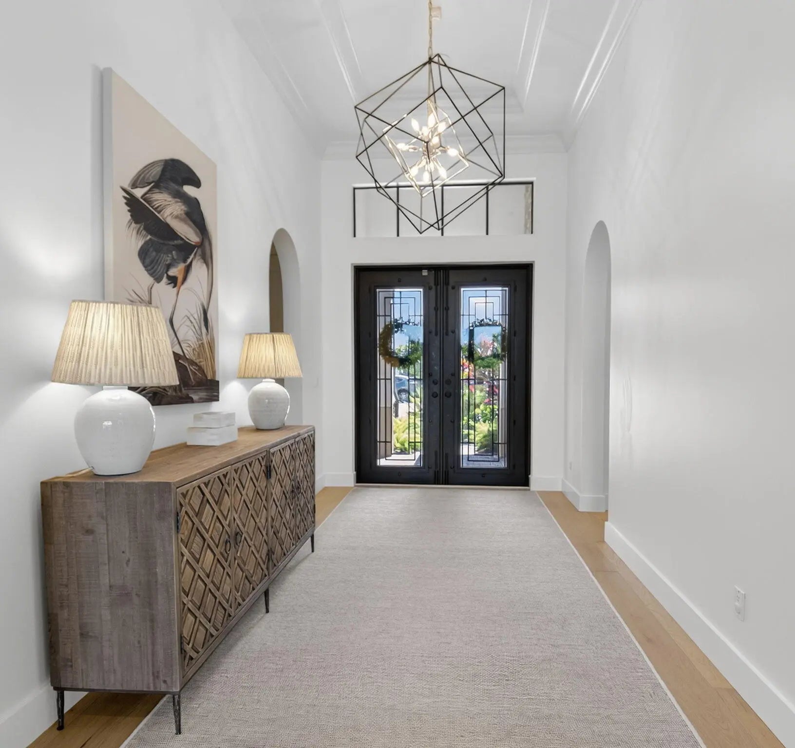 Bar, Built-in Shelves, Foyer, French Door, Kitchen Island, Laundry Tub, Pantry, Roman Tub, Split Bedroom, Volume Ceiling, Walk-in Closet