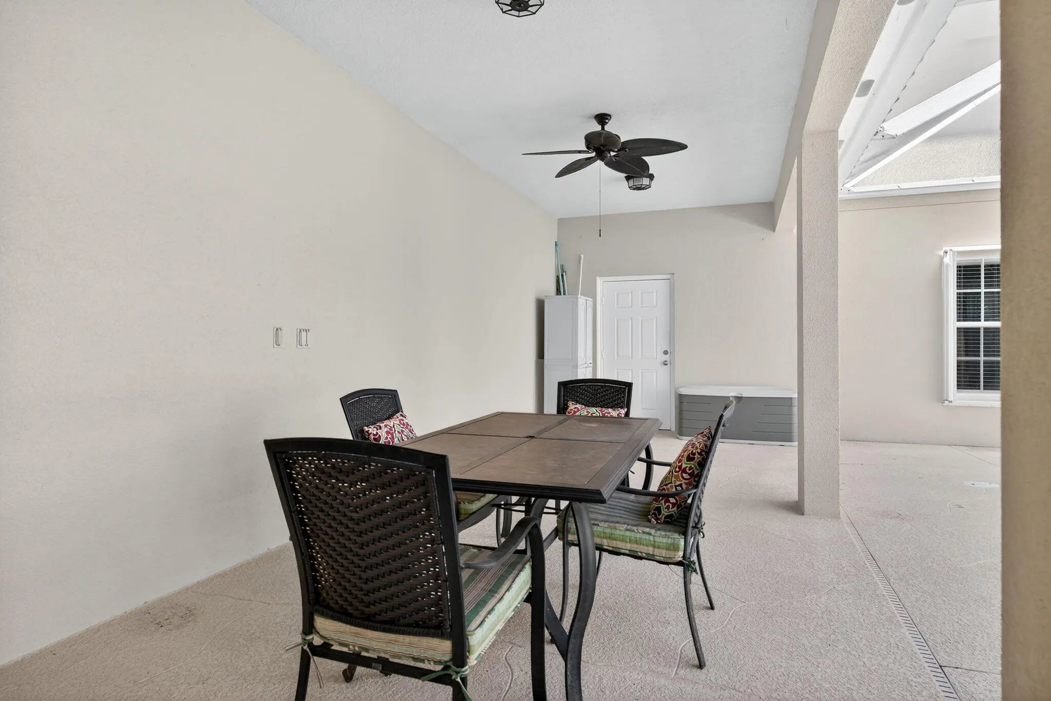 Covered Balcony, Custom Lighting, Open Balcony, Screened Patio, Shutters