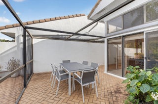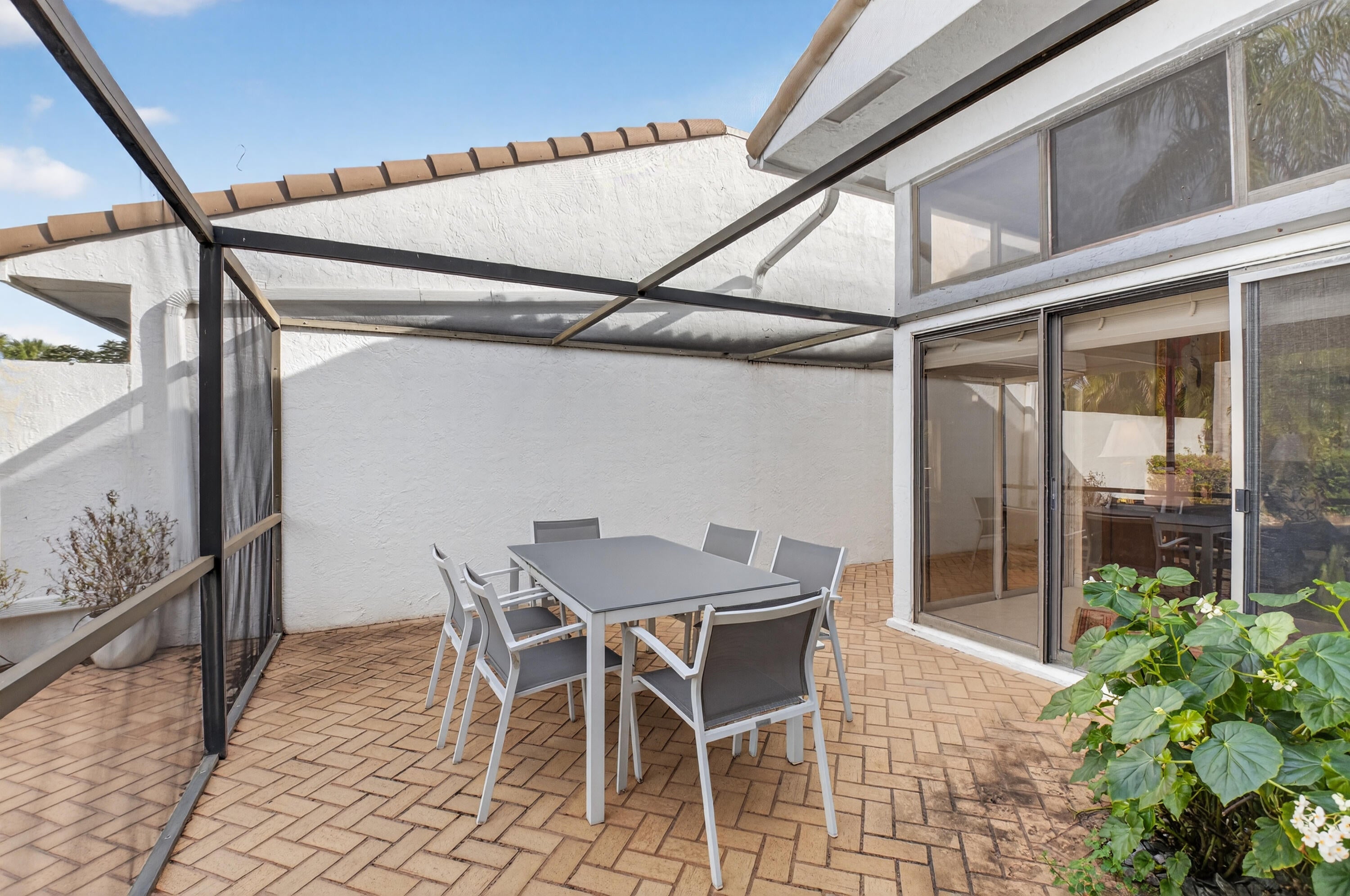 Baywood Driftwood Model 2 story Town Home with golf course and water view. High vaulted wood beam ceilings in the living room. Large 24'' tile floors in all rooms on the main level. Wood parquet floors in all areas on the second level including all 3 bedrooms. Separate den and powder room on the main level that could be converted into a 4th bedroom. Large master bedroom on the second level overlooking the golf course and lake area. Master bath has a separate walk-in whirlpool tub. Open pool/patio area with heated pool plus separate screened in porch. A very clean and well appointed home in move in condition. Seller prefers a delay closing date with terms to be negotiated at time of contract. Country Club membership required at $150,000. plus dues and $10,000. to Boca West Master Assoc.