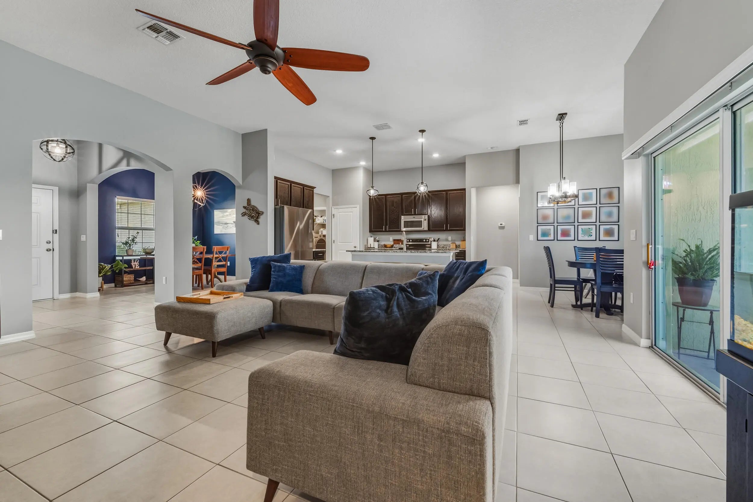 Sought after Torino area. Welcome home to this beautifully maintained 4-bedroom, 3-bath residence built in 2017, offering 2,400 square feet of thoughtfully designed living space and a 2-car garage. The open-concept kitchen is the heart of the home, showcasing rich wood cabinetry, stainless steel appliances, and a spacious breakfast area--perfect for everyday living and entertaining.The light-filled primary suite provides a relaxing retreat with dual sinks and a walk-in shower. Enjoy Florida-style outdoor living year-round on the large covered patio overlooking a fully fenced backyard that offers exceptional privacy. Conveniently located near shopping, dining, banking, and easy interstate access. Schedule your private showing today--this home is a must-see.