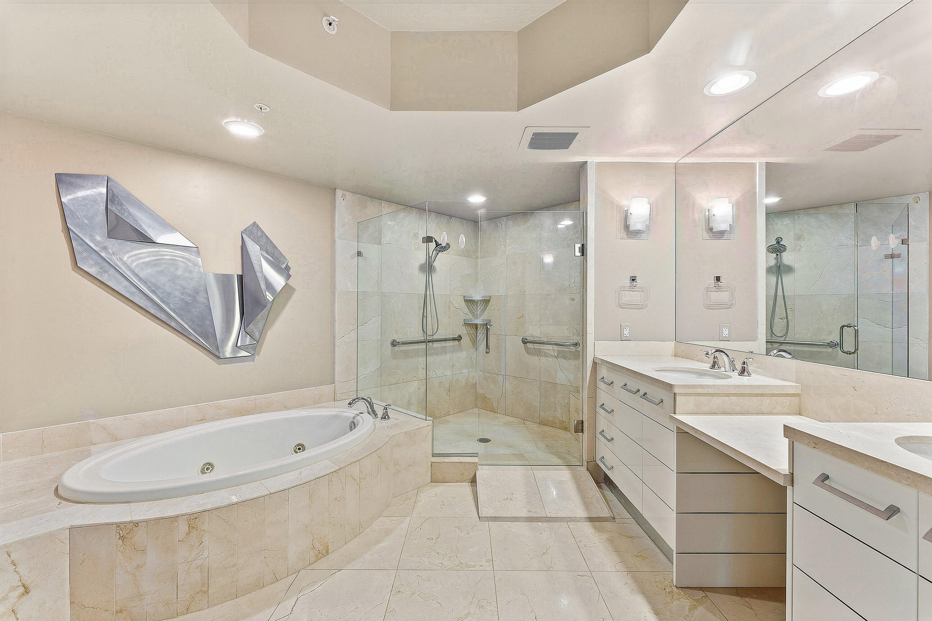 Immaculate three-bedroom, three-bath residence in The Landmark at the Gardens, one of Palm Beach Gardens' most prestigious luxury high-rise condominiums. This refined home offers a flexible, thoughtfully designed floor plan featuring a grand salon, morning leisure area, formal dining space, and a private den--ideal for both everyday living and elegant entertaining. The primary suite is a true retreat, offering generous proportions and a spa-inspired bath with dual vanities, private water closet, separate whirlpool tub, and walk-in shower. Guests are comfortably accommodated in a beautifully appointed suite with a private bath, while the third bedroom--perfect as an office or study--features a semi-private bathroom. Step onto the spacious covered terrace and enjoy one of the building's more..desirable views, ideal for morning coffee or evening relaxation. The Landmark is a pet-friendly, full-service luxury building offering 24-hour valet and concierge services, an elegant residents' lounge with bar, media theater, library, and game room. Resort-style amenities include a sun deck, heated pool, state-of-the-art fitness center with steam room, barbecue area, and putting green. Ideally located just minutes from The Gardens Mall, Downtown at the Gardens, world-class golf, fine dining, and premier shopping, this residence delivers refined living at its finest.