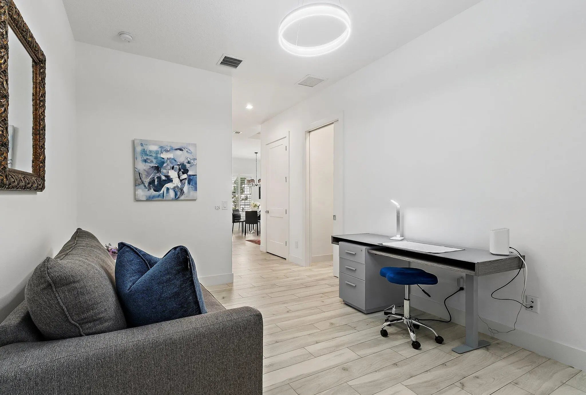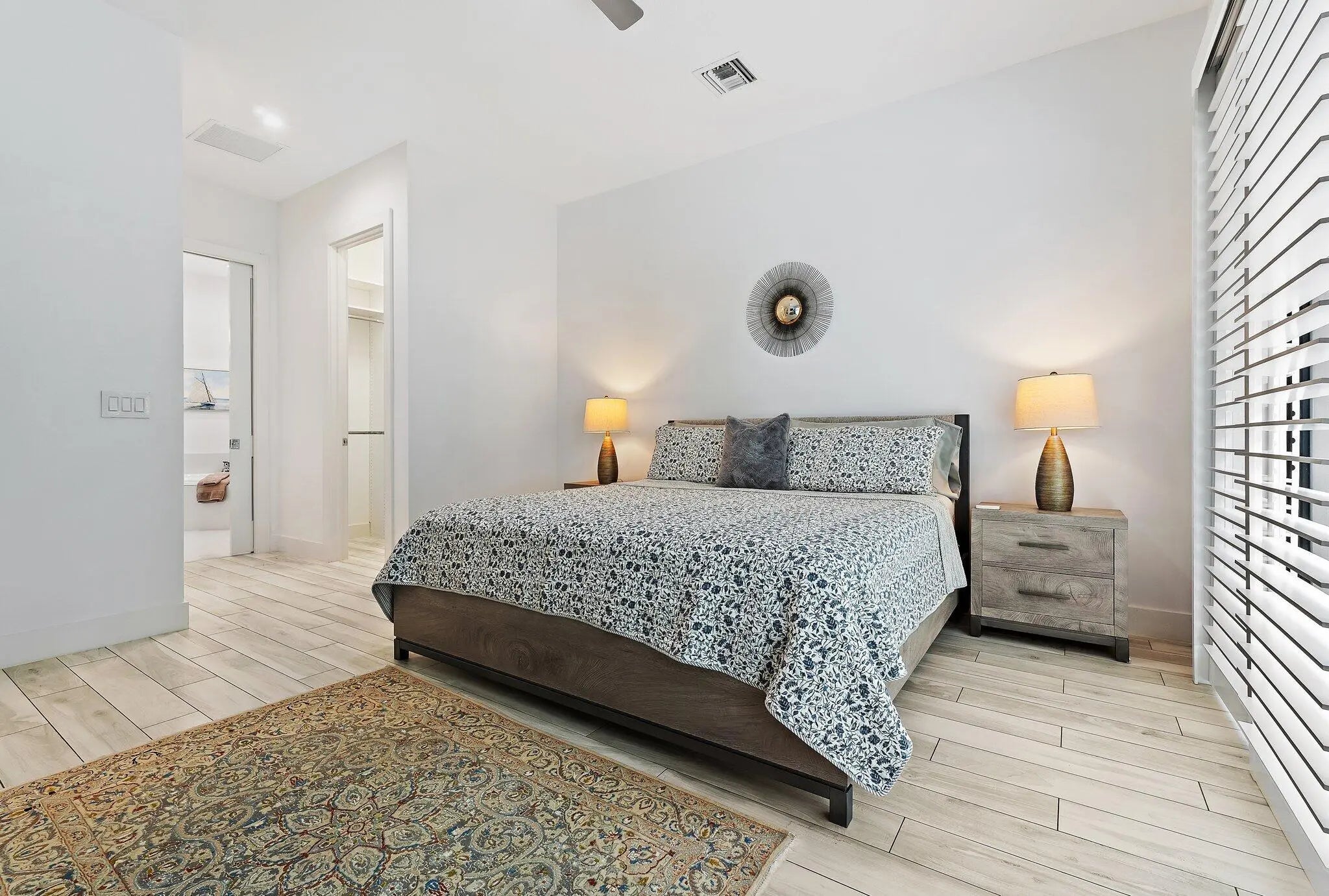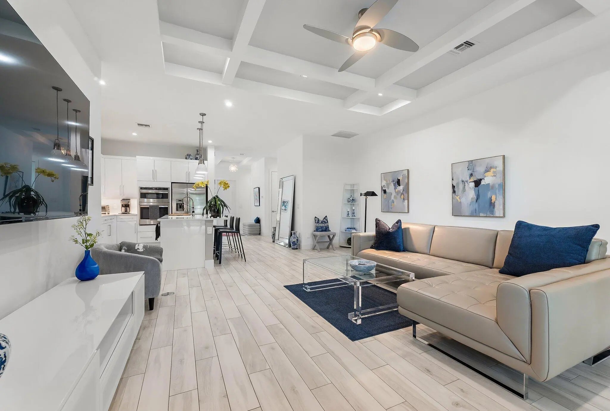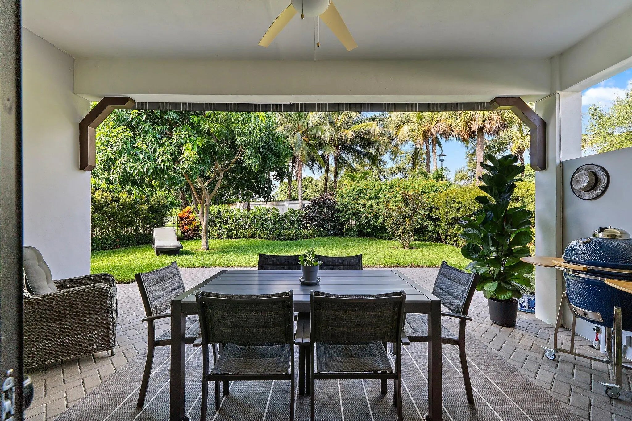 Welcome to this beautifully furnished and thoughtfully appointed home in the exclusive community of Banyan Cay. This newer construction 2 bedroom plus den, 3 bathroom residence in the heart of West Palm Beach offers the perfect blend of style, comfort, and convenience. Featuring many beautiful upgrades throughout like wood look tile flooring, plantation shutters, built out closets, an upgraded patio with electric awning and the Egg BBQ. This gorgeous home offers a formal dining room and an open floor plan kitchen as the perfect space to entertain and cook. The adjoining large family room opens up to a private backyard for plenty of room to entertain, play and lounge. Solar panels ensure impressively low energy costs, making this home as efficient as it is beautiful. Banyan Cay is located