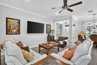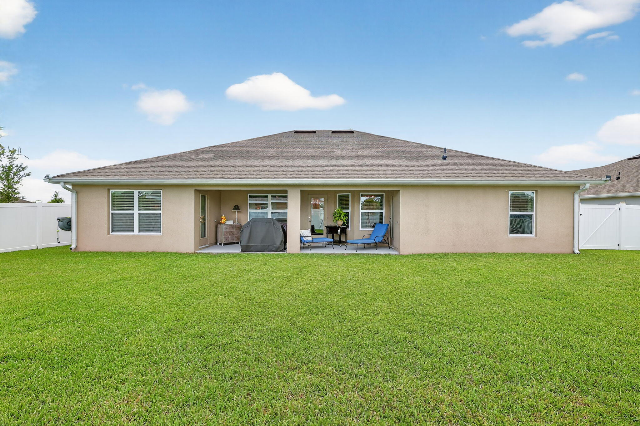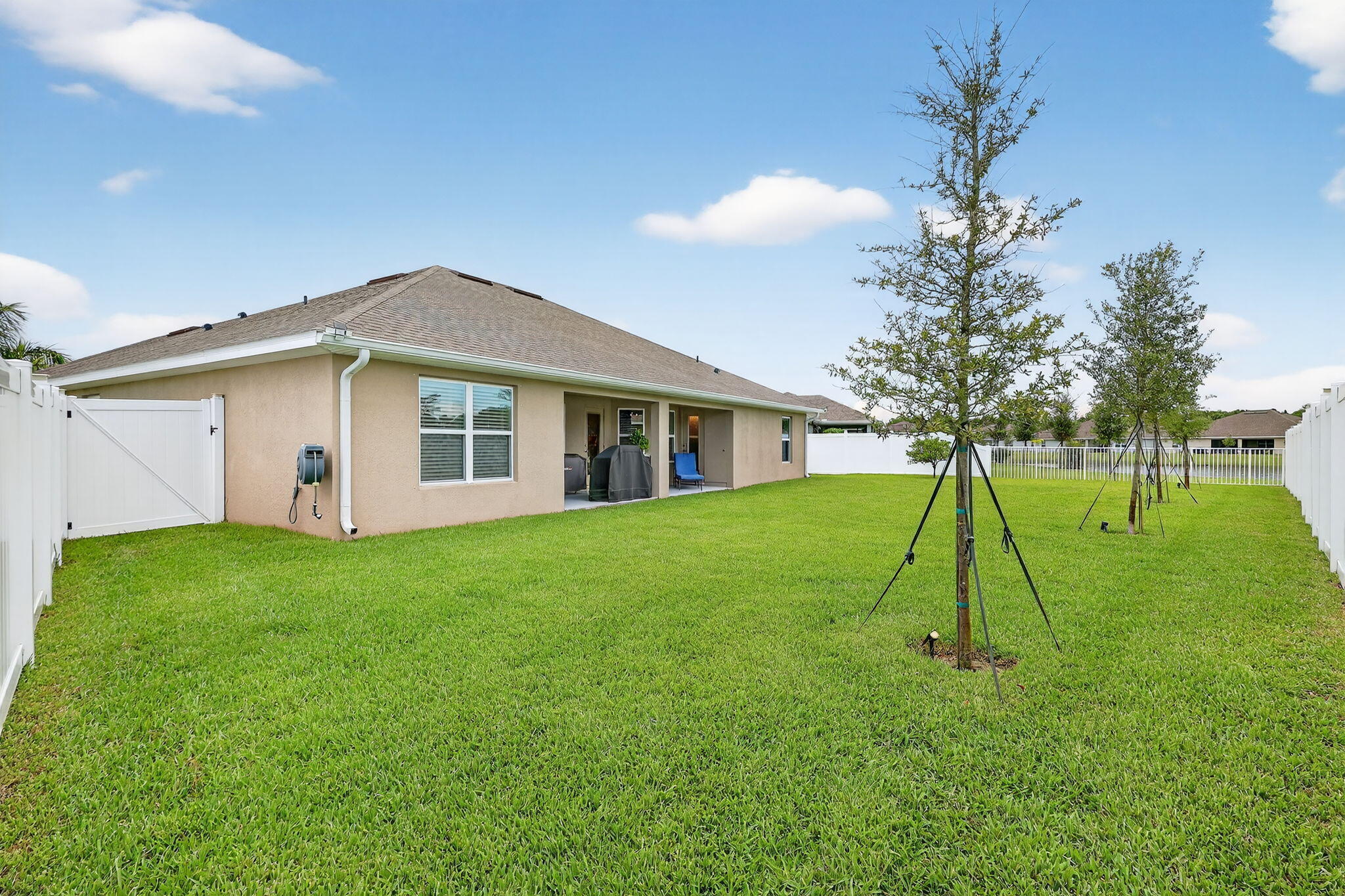 This home is a STEAL! Priced under what they paid & + improvements 4/3/3 Better than NEW 2023 built.Premium .27 acre 11,761sf Corner Lakefront Lot (35K upgrade from builder) 34K+ in after purchase upgrades including: Premium vinyl & metal fence. Seamless gutters. Your OWN Irrigation well which saves thousands a year on your water bill & keeps your yard looking lush and beautiful! Meticulously maintained. 4 spacious bedrooms & 3 bathrooms including a cabana bath, den, covered patio & a massive 3 car garage. Crown Molding, lighting, backsplash, 3'' Blinds. HOA is a low $129 a year! Waterstone has lots of amenities Community pool, fitness room, playground, sidewalks, volleyball, tennis and pickleball courts. County only property taxes! Room for a pool. Only 20 min to the beach.Improvements after purchase list: 1. Irrigation well. $4,000 (for $300-$400 savings a month in city water) 2. Vinyl & metal Fence. $10,000 3. Lighting. $ 4,000 4. Crown molding $ 2,000 5. Seamless Gutters. $2,500 6. Landscaping. $ 2,500 7. Backsplash. $ 1200 8. 3 inch Blinds & Rods. $3,900 9. Attic Flooring $700 10. Garage door openers w/key pads $600 11. Tv Mounts $300 12. Seamless gutters $2,500 13 Premium Refrigerator $4,000 14 Premium Stove $2,500
