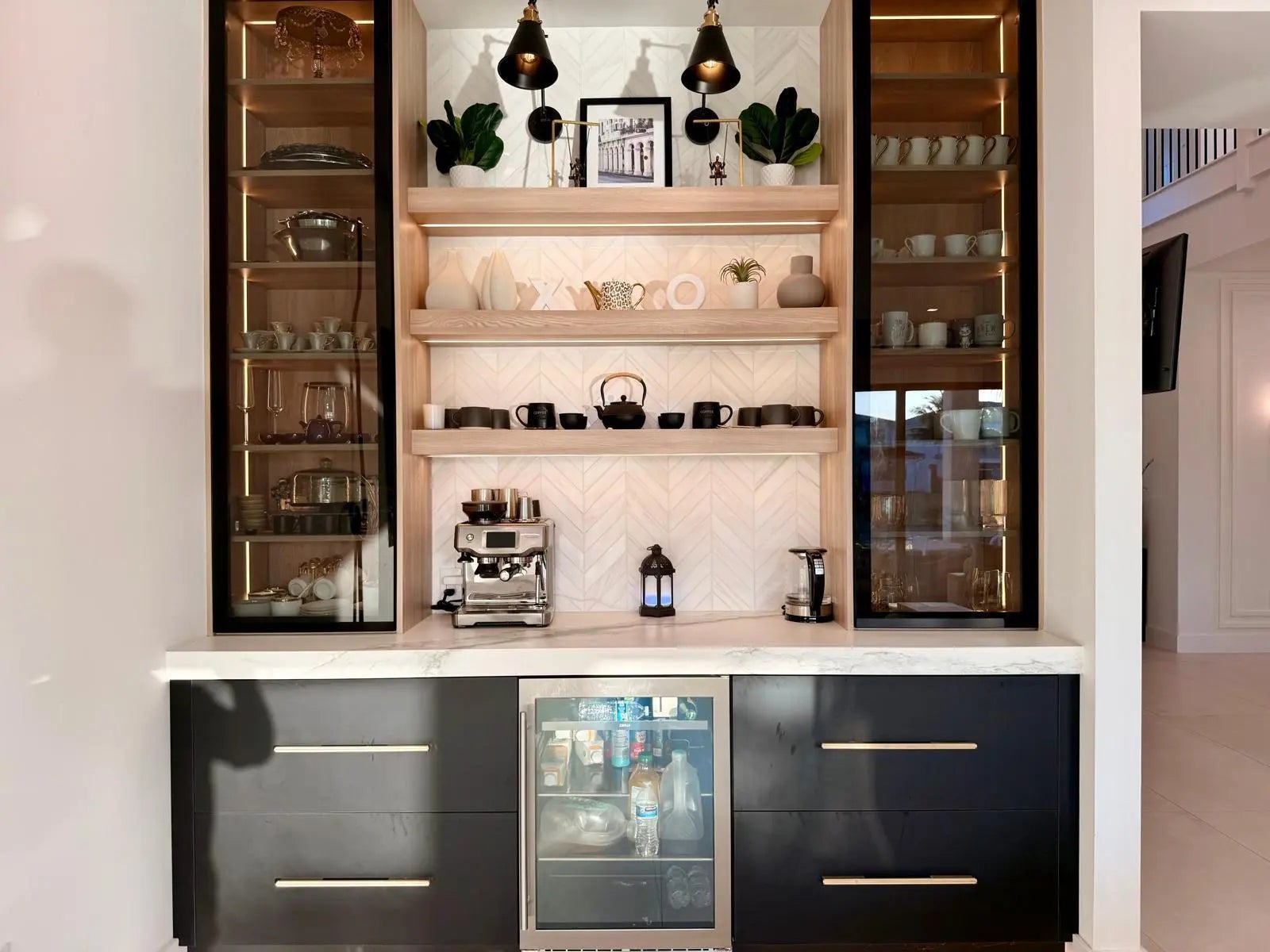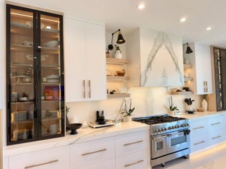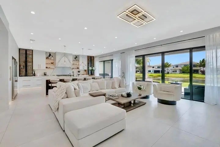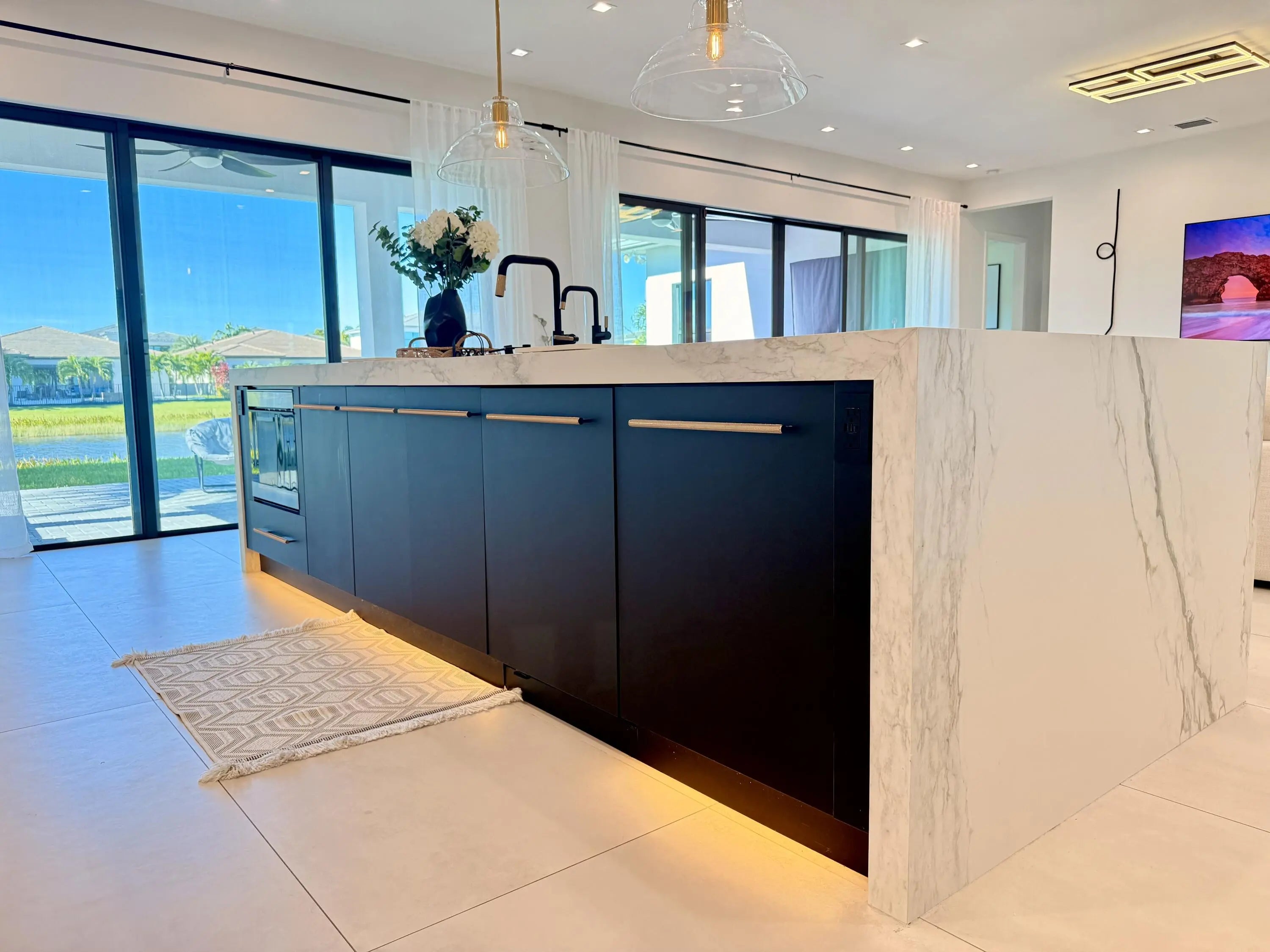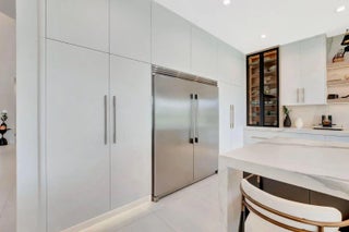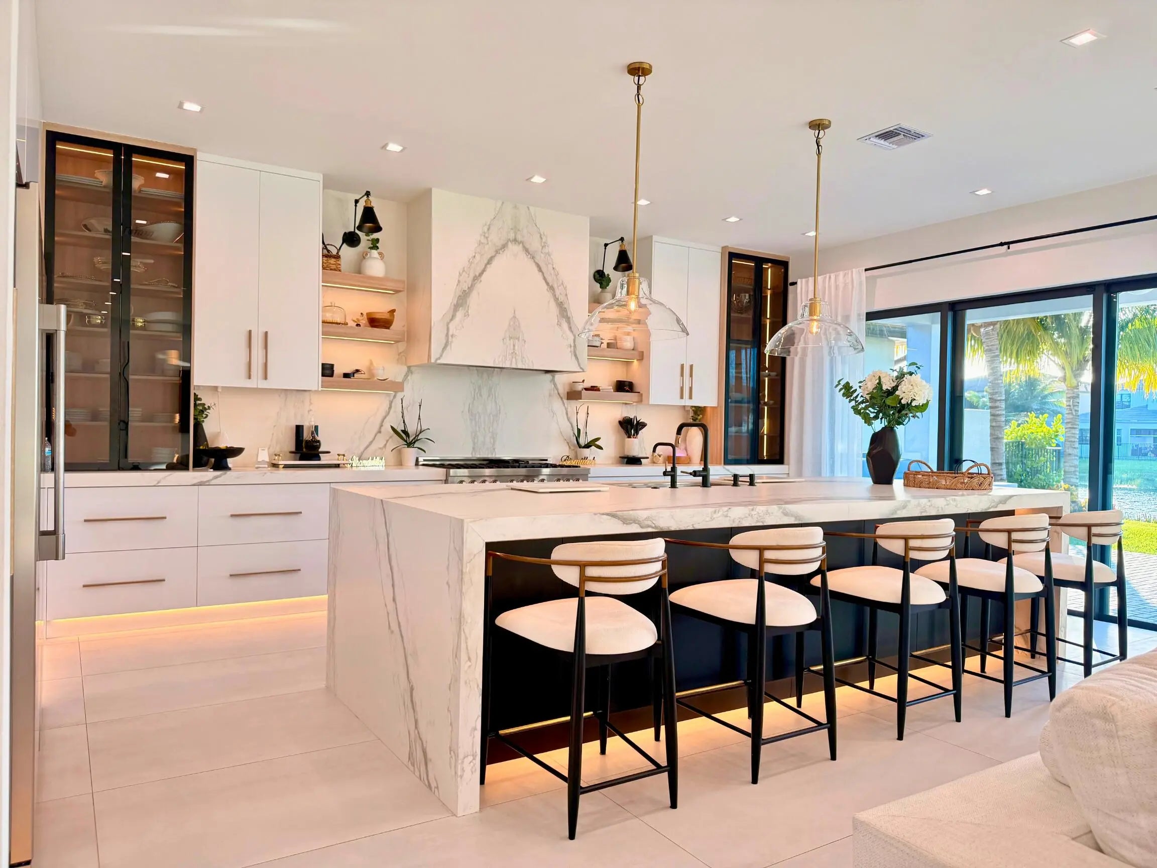 Home will be sold with a pool construction contract in place. Pool construction will begin after closing and will be paid for, with flexibility for the buyer to customize or modify the design to suit personal preferences. The home is offered fully furnished, providing a seamless, move-in-ready experience. Inside, the residence features a completely redesigned, one-of-a-kind kitchen, fully removed and rebuilt far beyond the original builder's layout. Expanded in both size and functionality, the kitchen showcases premium custom cabinetry, an oversized waterfall island, high-end porcelain surfaces, a 66'' built-in refrigerator, 48'' gas range, microwave drawer with air-fryer, paneled dishwasher, dual oversized pantries with interior lighting, and refined designer finishes. Not an average hou