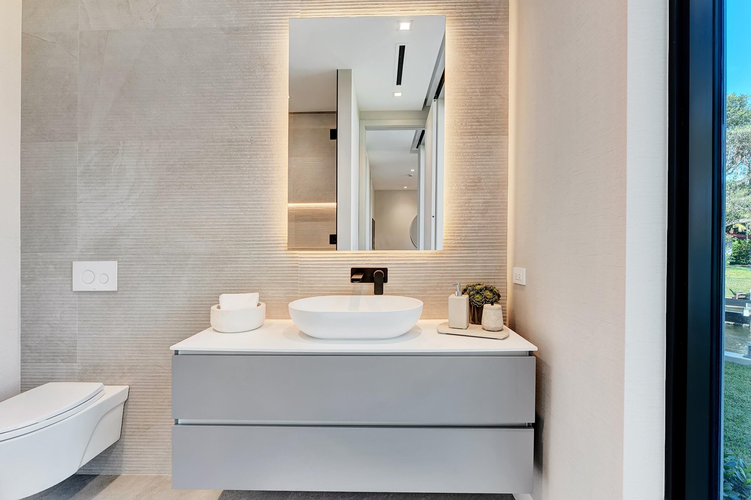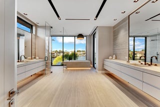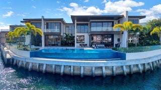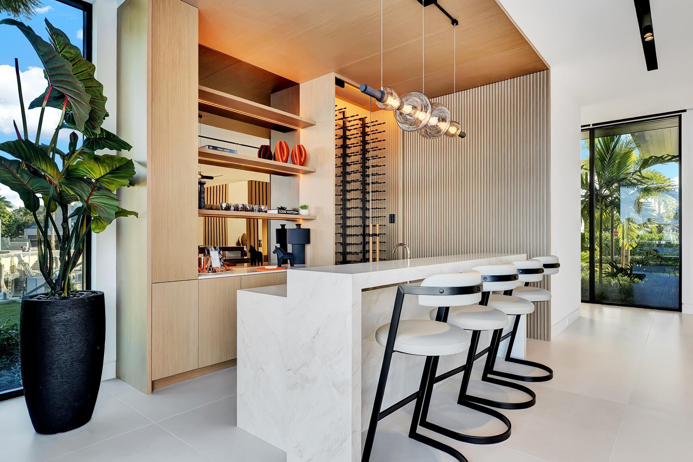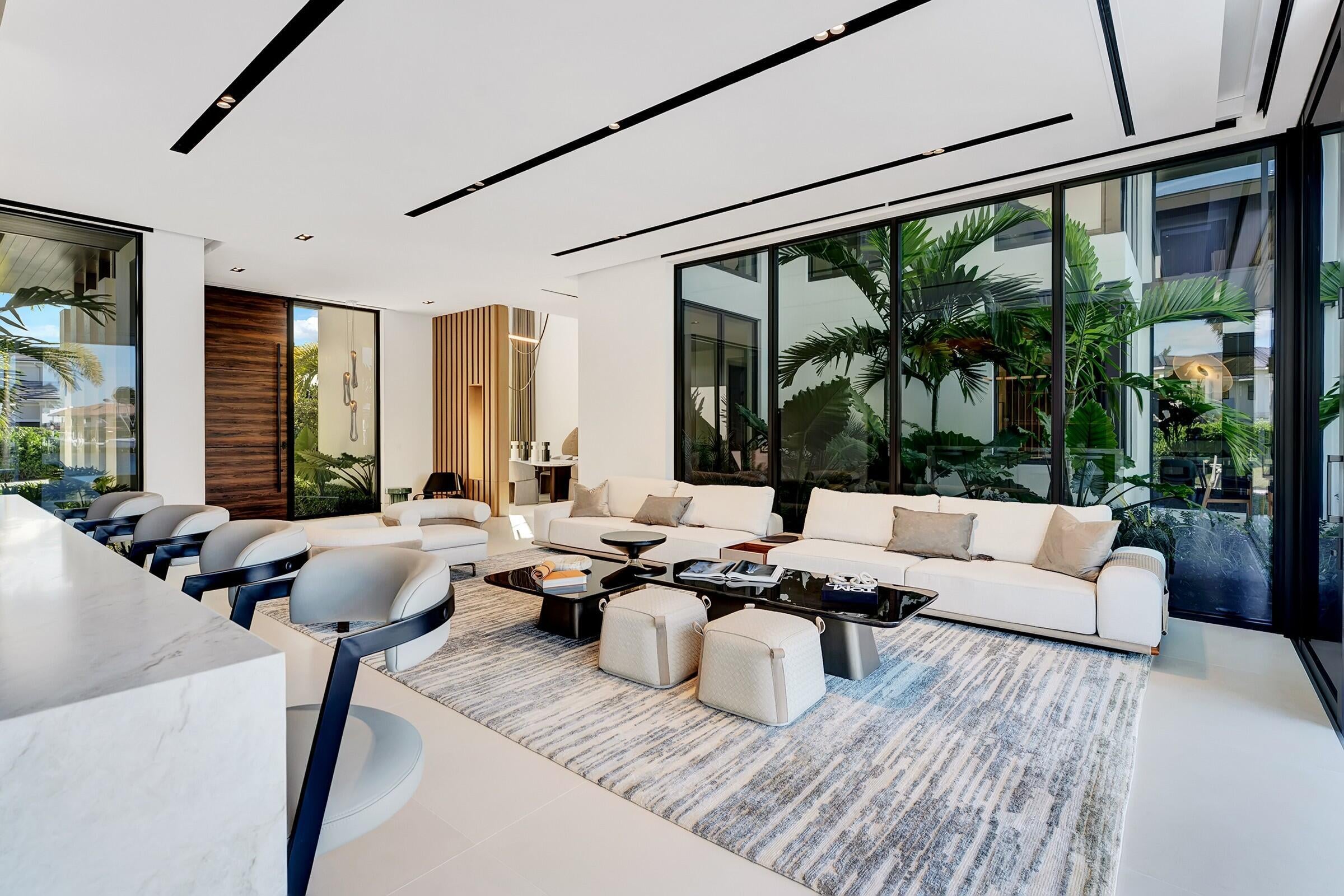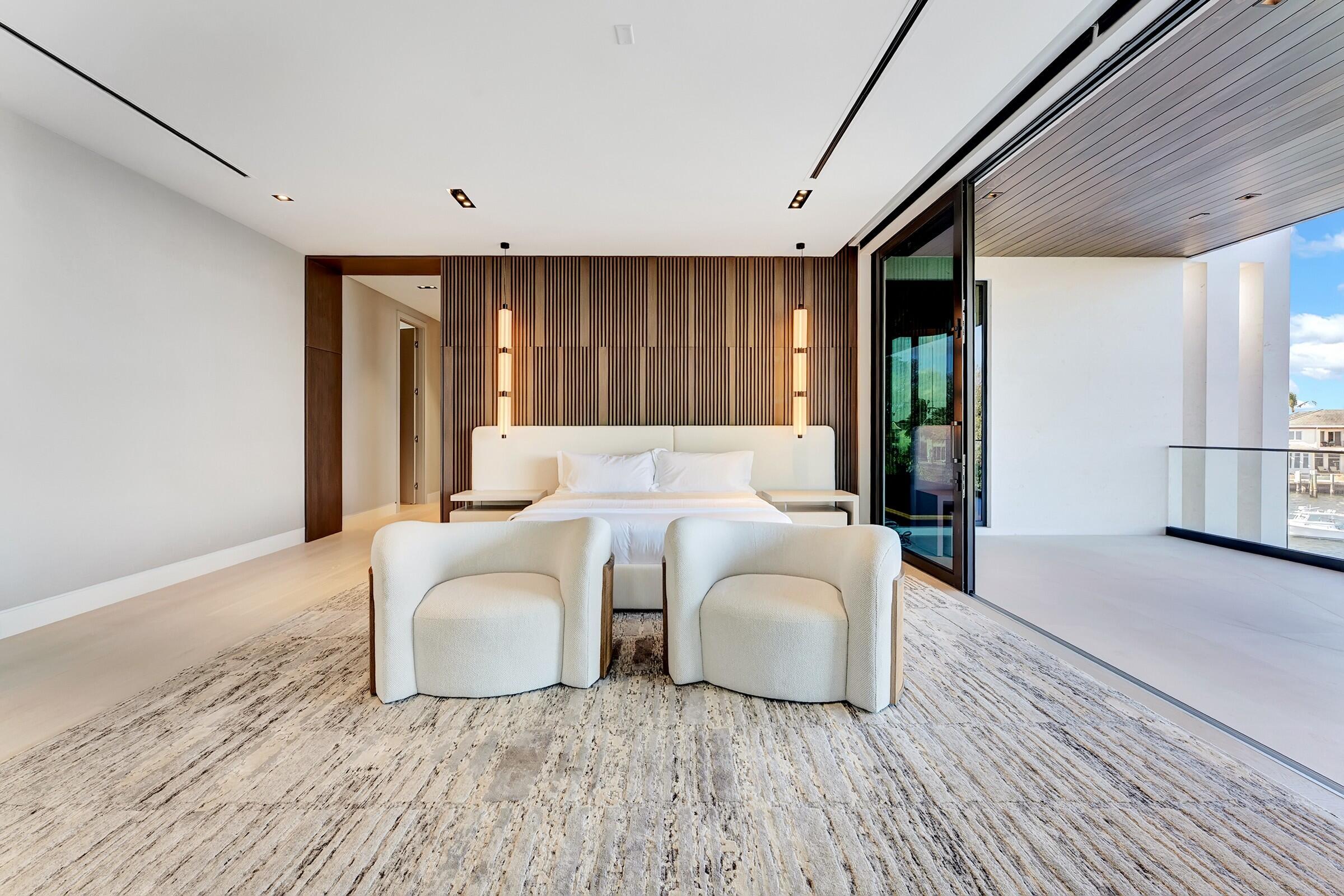 Brand-new Intracoastal estate in Orchid Point offering approximately 230' of waterfront with protected side dockage in a no-wake zone -- plus additional dock space on the northwest corner of the property. Positioned on a prime point lot, the residence captures some of the longest Intracoastal views in Boca Raton.A collaboration by Jag Development, In-Site Design Group and Farache Bromberg Design Studio, the home blends modern architecture with warm organic finishes. Floor-to-ceiling window walls, bleached oak flooring, custom millwork and designer lighting enhance the open, light-filled interiors. A fully integrated smart-home system controls lighting, climate, security and entertainment. The main level includes spacious living and family areas, a club/media room, dedicated bar, and downstairs office creating a layout that is truly an entertainer's dream. A private downstairs suite with its own entrance provides convenient access to the dock and is ideal for captain/crew quarters, guests, or a separate workspace. The auto plaza includes a 3-car garage plus additional garage space suitable for captain/crew storage, golf cart or specialty vehicles. Upstairs, the primary suite features sweeping Intracoastal views, two boutique closets, a sitting area, and a spa-style bath with soaking tub overlooking the water. Two additional ensuite bedrooms and an upstairs laundry room complete the second level. Outdoor living centers around a gorgeous infinity-edge pool overlooking the Intracoastal, sun shelf, covered lanai and summer kitchen. The 80'± concrete dock is tucked away in its own private canal, offering protected mooring, along with a newly constructed 230'± seawall and cap. Built above FEMA elevation with impact glass and modern mechanical systems. Located minutes to Boca beaches, The Boca Raton and Beach Club. Shown by appointment only. Proof of funds required for all showings.