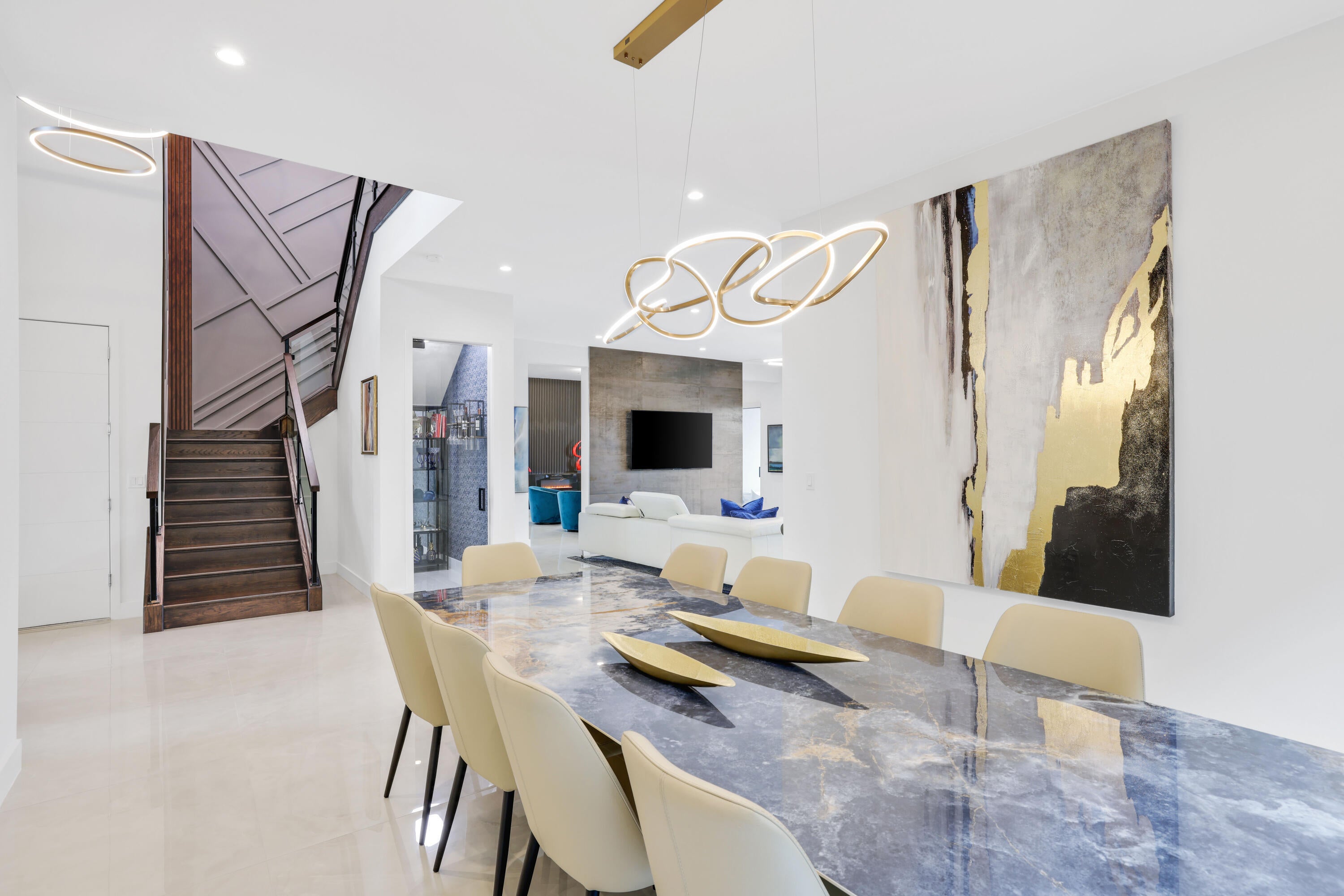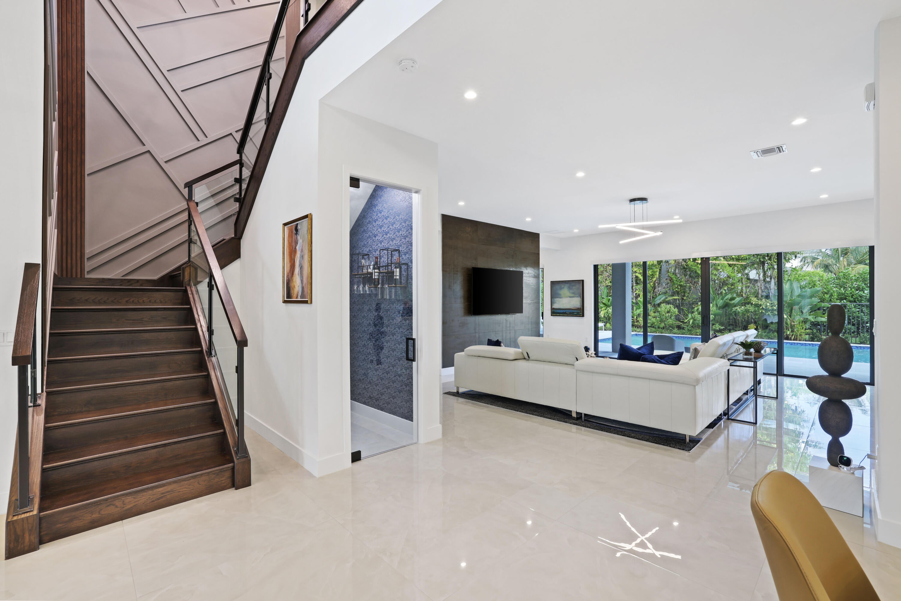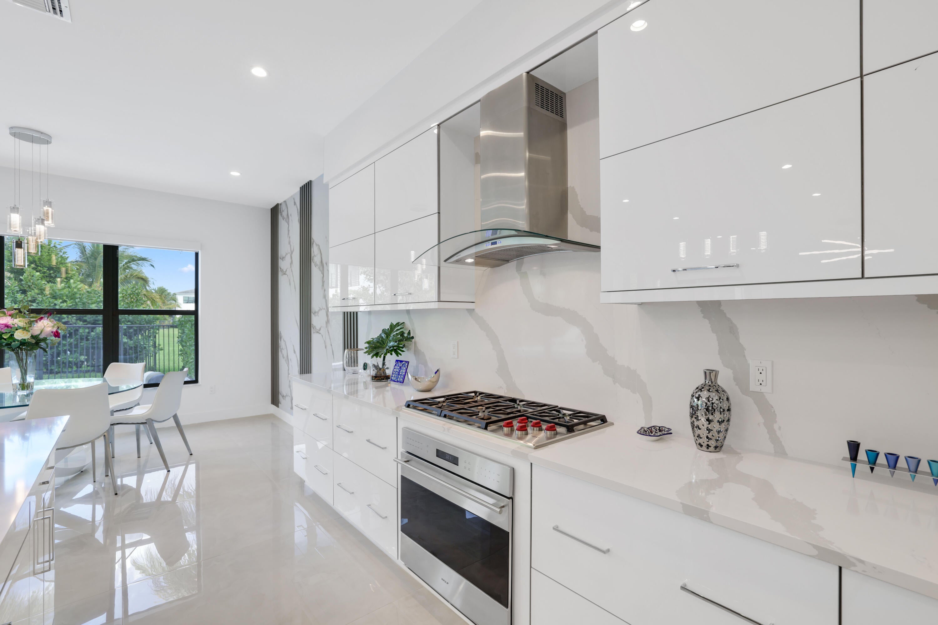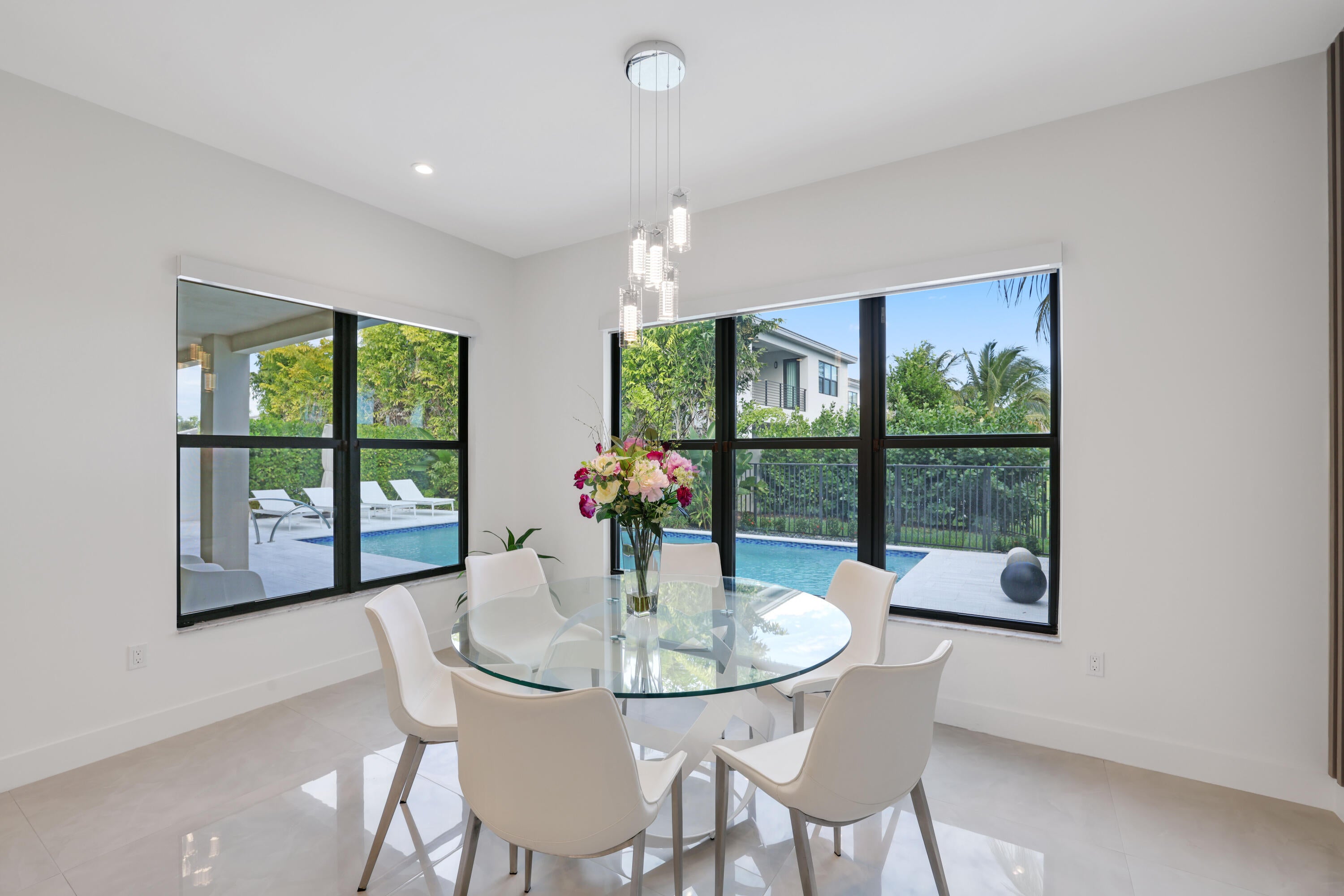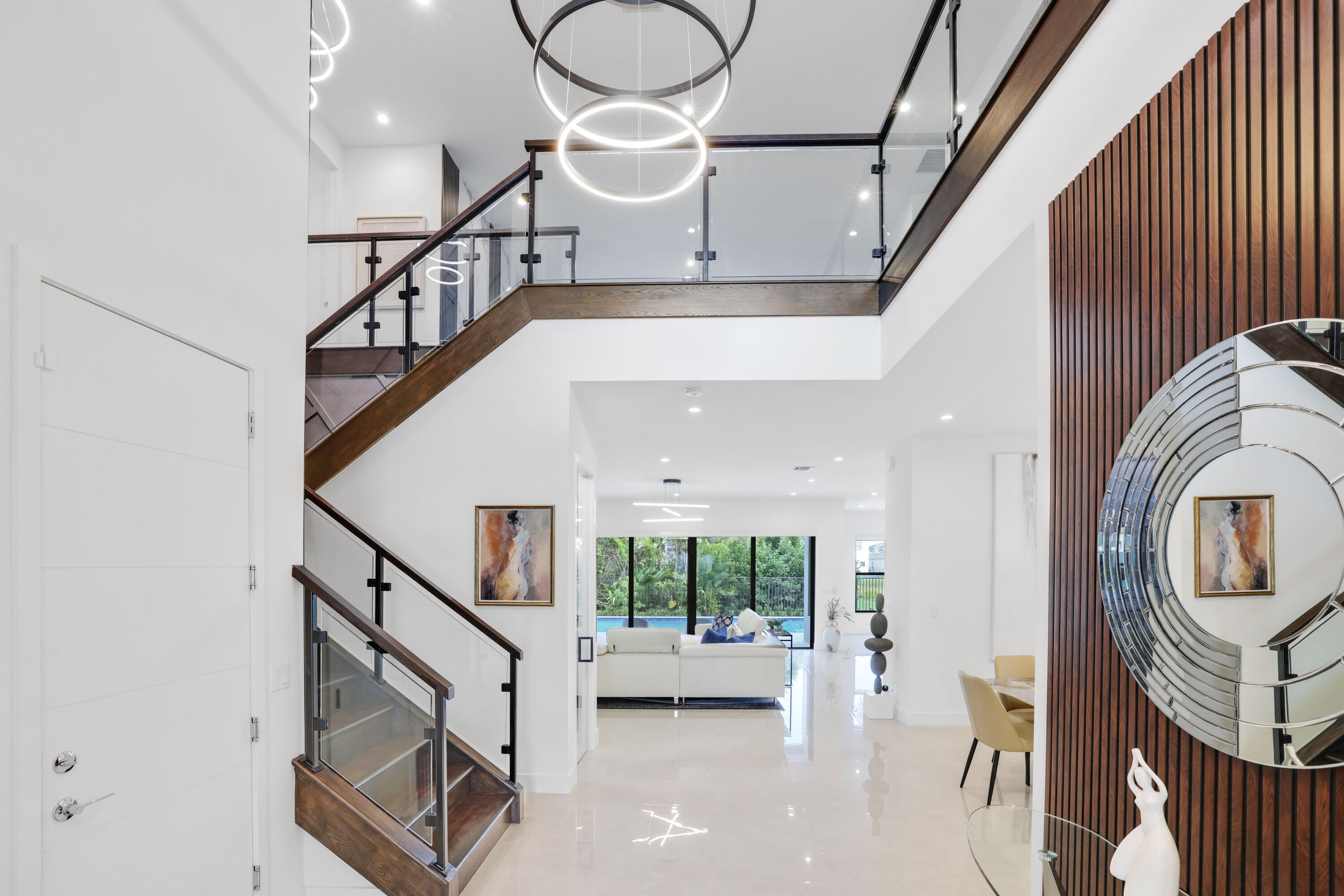 Turnkey luxury in Boca Raton's most prestigious community, the Maldives model in Lotus by GL Homes. This upgraded residence offers 7,246 total square feet with 5,378 under air and premium finishes throughout. The gourmet kitchen features Wolf appliances, upgraded cabinetry, and a center island. Italian porcelain tile enhances the first floor, with wood flooring upstairs. The spa inspired primary bath includes a soaking tub and frameless glass shower. Highlights include a glass wall Club room, glass wine closet, and glass banisters. The state of the art media room comes fully equipped with all media equipment and designer furnishings, delivering a private theater experience that will amaze! Electric shades, upgraded lighting, and designer wall treatments complete this must see home.The property includes a 400-amp electrical service, multiple televisions, and a decorative fireplace. All bathrooms have been upgraded with premium fixtures and countertops, and extended mirrors add a touch of luxury. Outdoor living is highlighted by a saltwater pool measuring 17 by 34 feet, a cabana bath, and tropical landscaping, with a 2-foot garage extension featuring finished floors and a parking lift, as well as widened driveways for enhanced curb appeal and guest parking. This residence sits in one of Boca Raton's most prestigious neighborhoods, known for luxury living, with access to a state-of-the-art 30,000+ square foot clubhouse that offers a resort-style pool, a fitness center, tennis and pickleball courts, a children's splash park, and versatile spaces for gatherings and fitness classes. This home blends luxury finishes, modern comfort, and resort-style living in a premier Boca Raton setting, making it a turnkey showcase ideal for entertaining and everyday living alike.