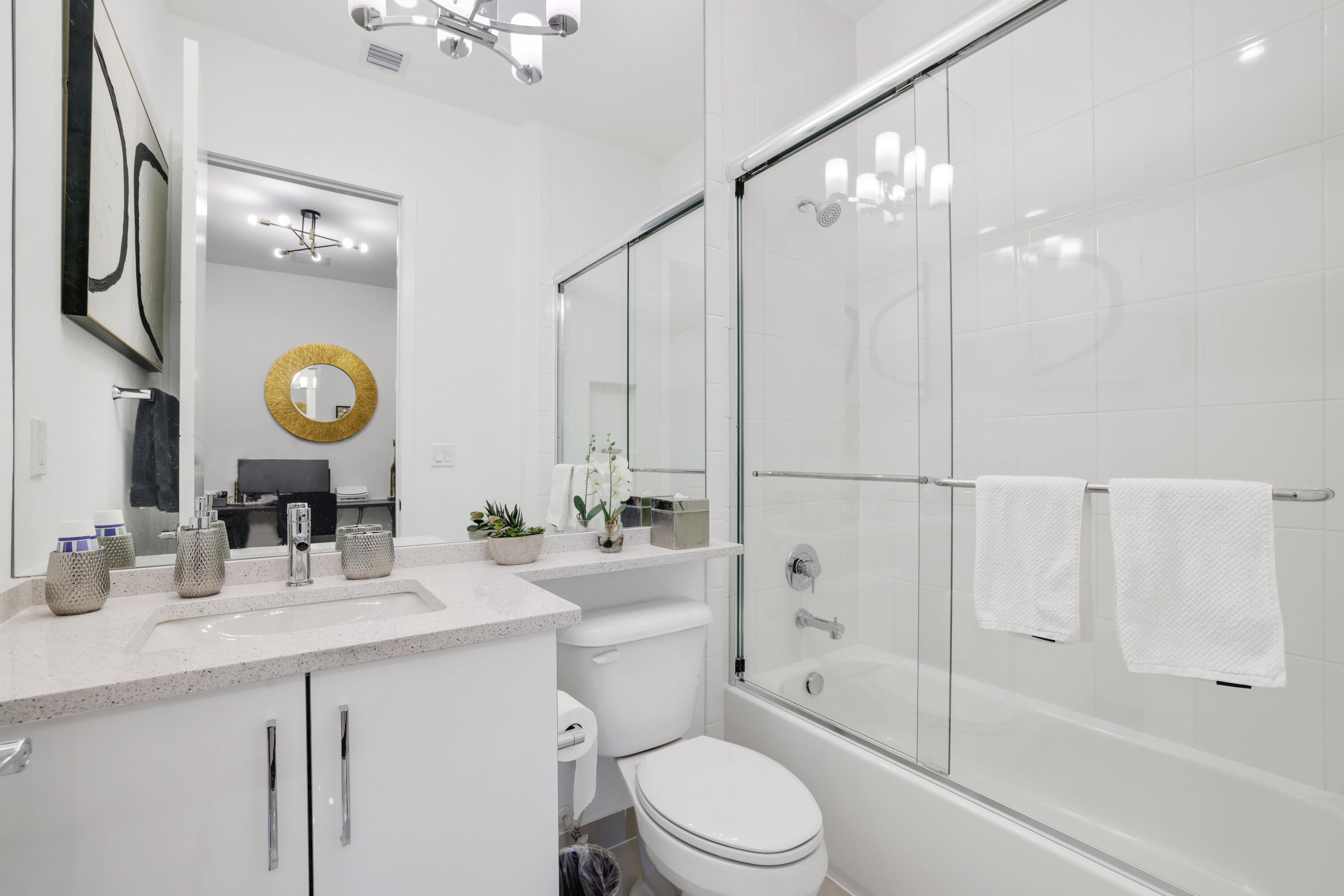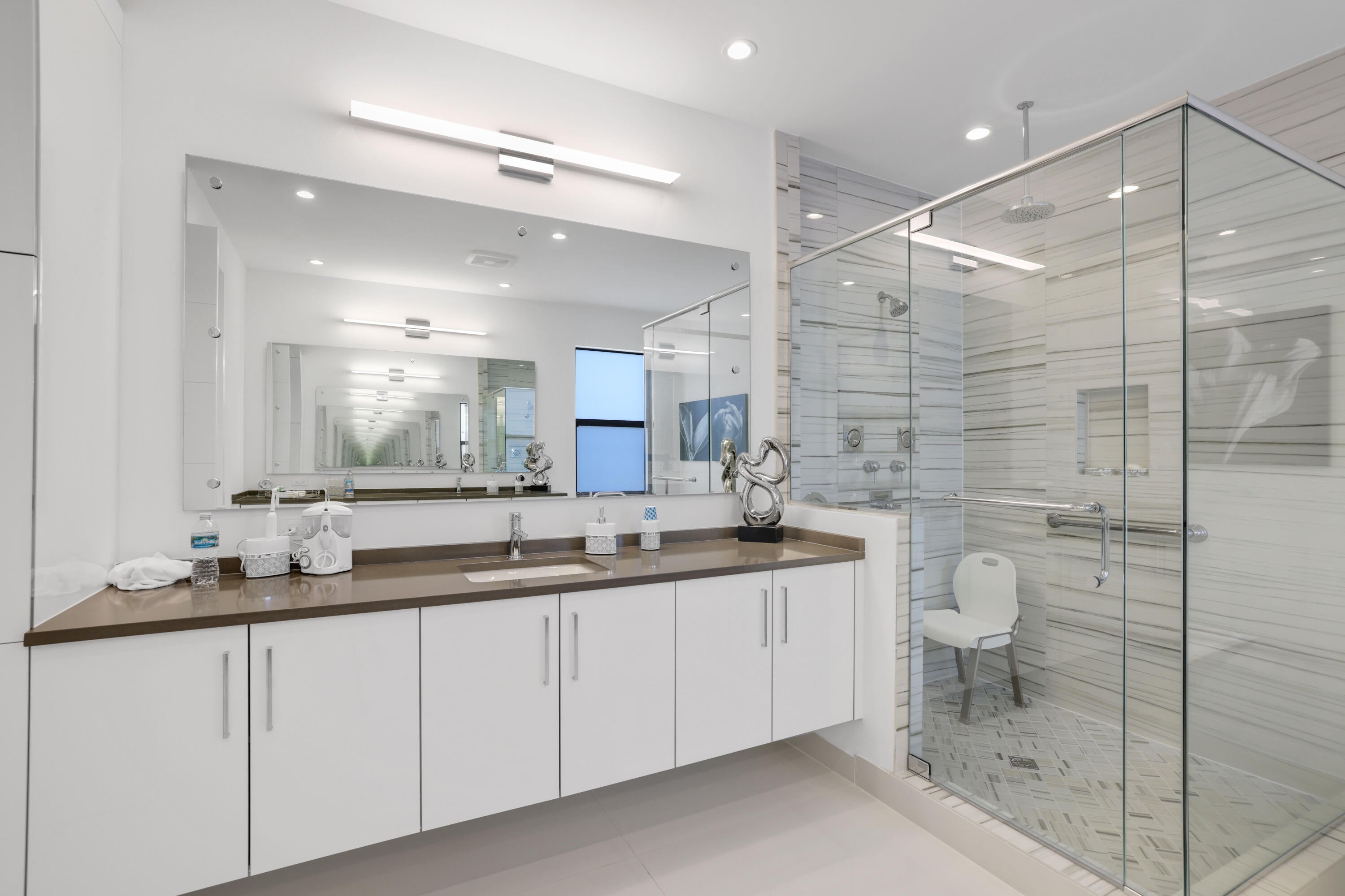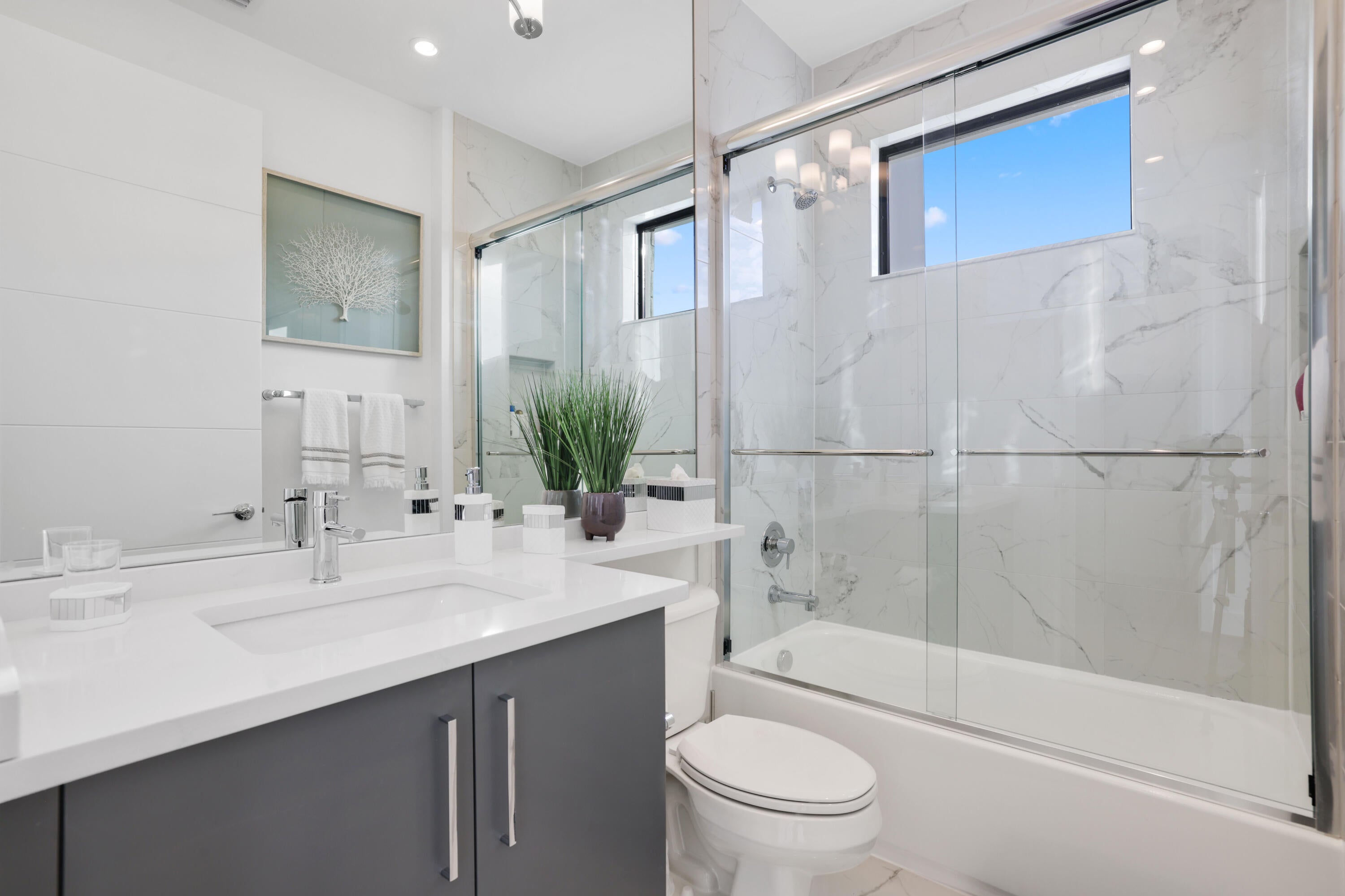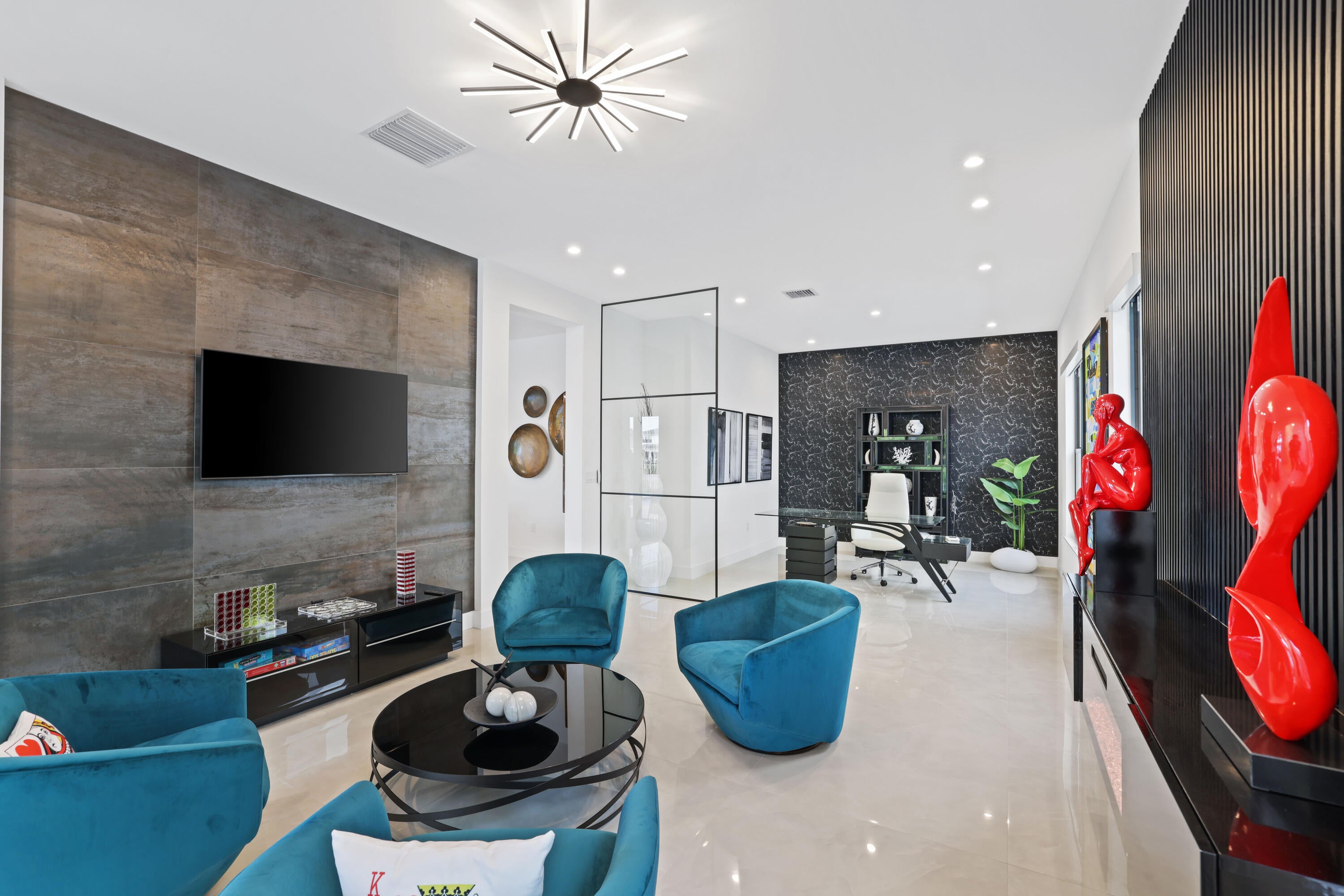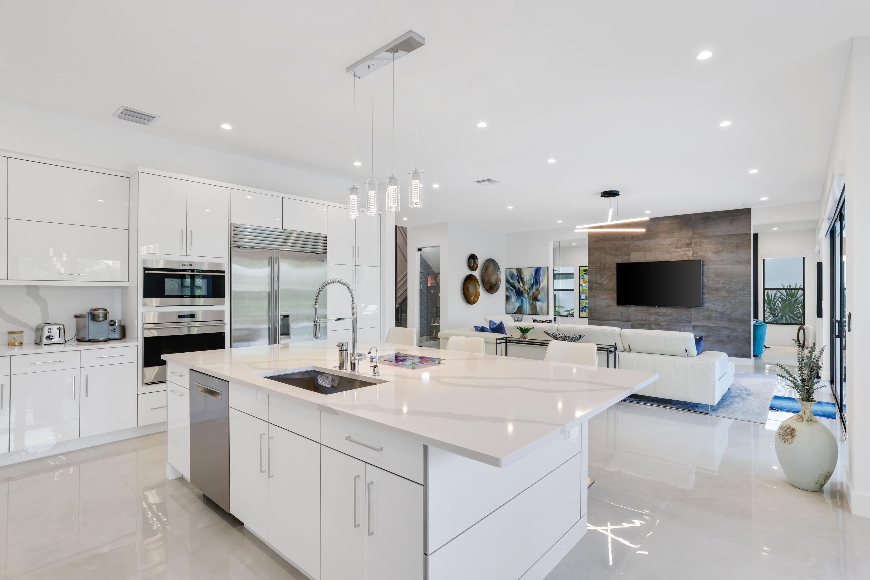Turnkey luxury in Boca Raton's most prestigious community, the Maldives model in Lotus by GL Homes. This upgraded residence offers 7,246 total square feet with 5,378 under air and premium finishes throughout. The gourmet kitchen features Wolf appliances, upgraded cabinetry, and a center island. Italian porcelain tile enhances the first floor, with wood flooring upstairs. The spa inspired primary bath includes a soaking tub and frameless glass shower. Highlights include a glass wall Club room, glass wine closet, and glass banisters. The state of the art media room comes fully equipped with all media equipment and designer furnishings, delivering a private theater experience that will amaze! Electric shades, upgraded lighting, and designer wall treatments complete this must see home.The property includes a 400-amp electrical service, multiple televisions, and a decorative fireplace. All bathrooms have been upgraded with premium fixtures and countertops, and extended mirrors add a touch of luxury. Outdoor living is highlighted by a saltwater pool measuring 17 by 34 feet, a cabana bath, and tropical landscaping, with a 2-foot garage extension featuring finished floors and a parking lift, as well as widened driveways for enhanced curb appeal and guest parking. This residence sits in one of Boca Raton's most prestigious neighborhoods, known for luxury living, with access to a state-of-the-art 30,000+ square foot clubhouse that offers a resort-style pool, a fitness center, tennis and pickleball courts, a children's splash park, and versatile spaces for gatherings and fitness classes. This home blends luxury finishes, modern comfort, and resort-style living in a premier Boca Raton setting, making it a turnkey showcase ideal for entertaining and everyday living alike.