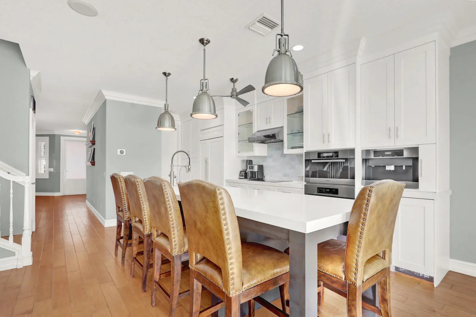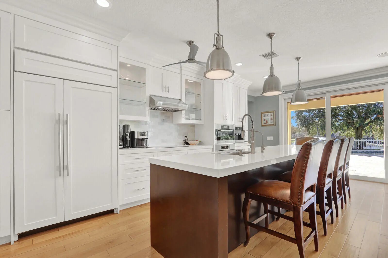 No stone has been left unturned in this rarely available 4 BR/3BA DiVosta ''E-model'' on one of the largest lots with incredible golf course views in the Island of Abacoa. Just to name a few of the upgrades: Gorgeous custom built-in kitchen and 12 foot island with large mitered custom edge quartz countertops. Premium high end appliances, Subzero main refrigerator, freezer, and separate ice maker for entertaining, Wolf cooktop and vent hood, Miele oven, steam oven, and built-in coffee machine. Anderson hand scraped maple flooring and 3 1/2'' plantation shutters throughout. Custom built-in office in the front den with 2 dedicated work stations, and built-in cubbies for your pets. 168 bottle walk-in temperature controlled wine room.