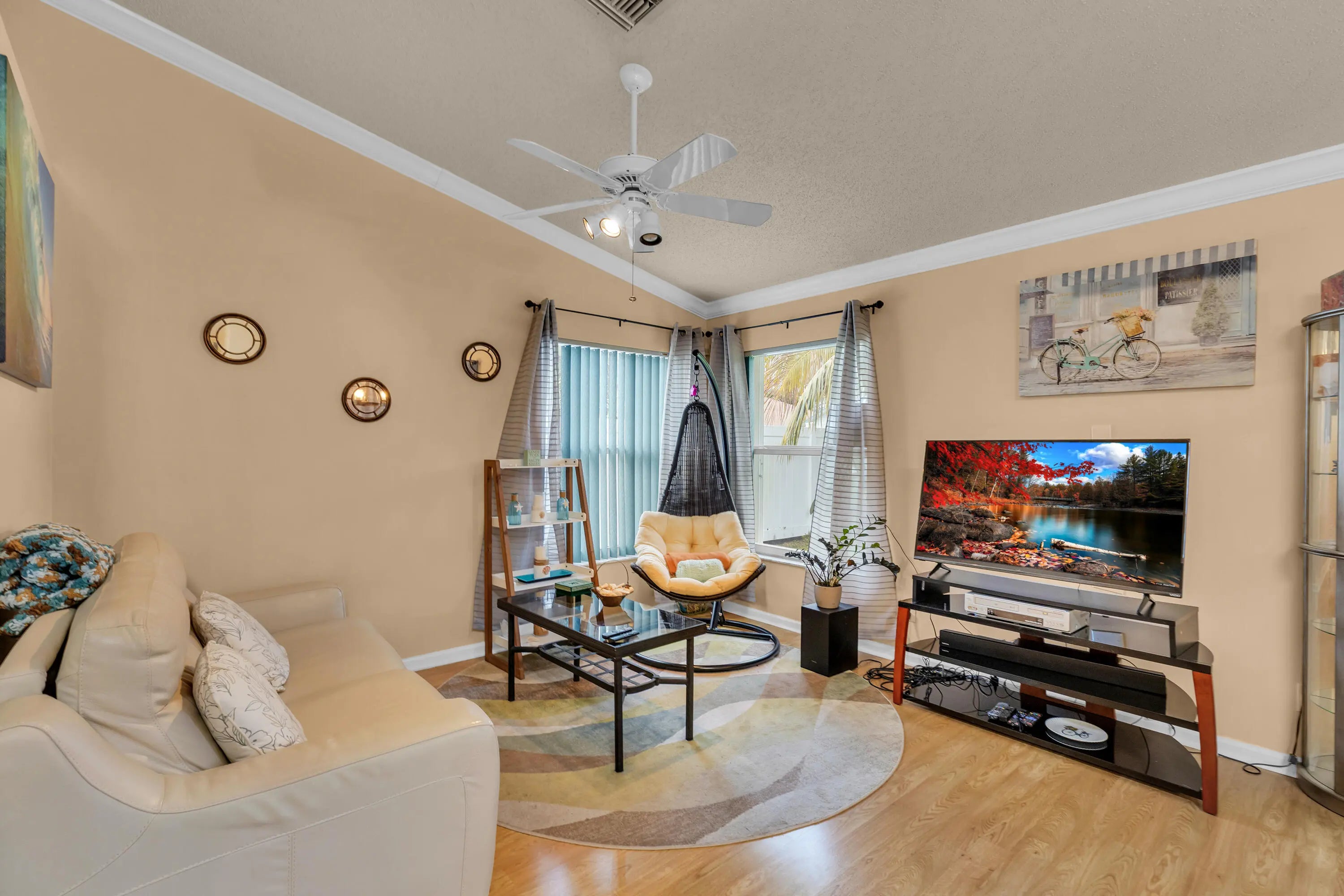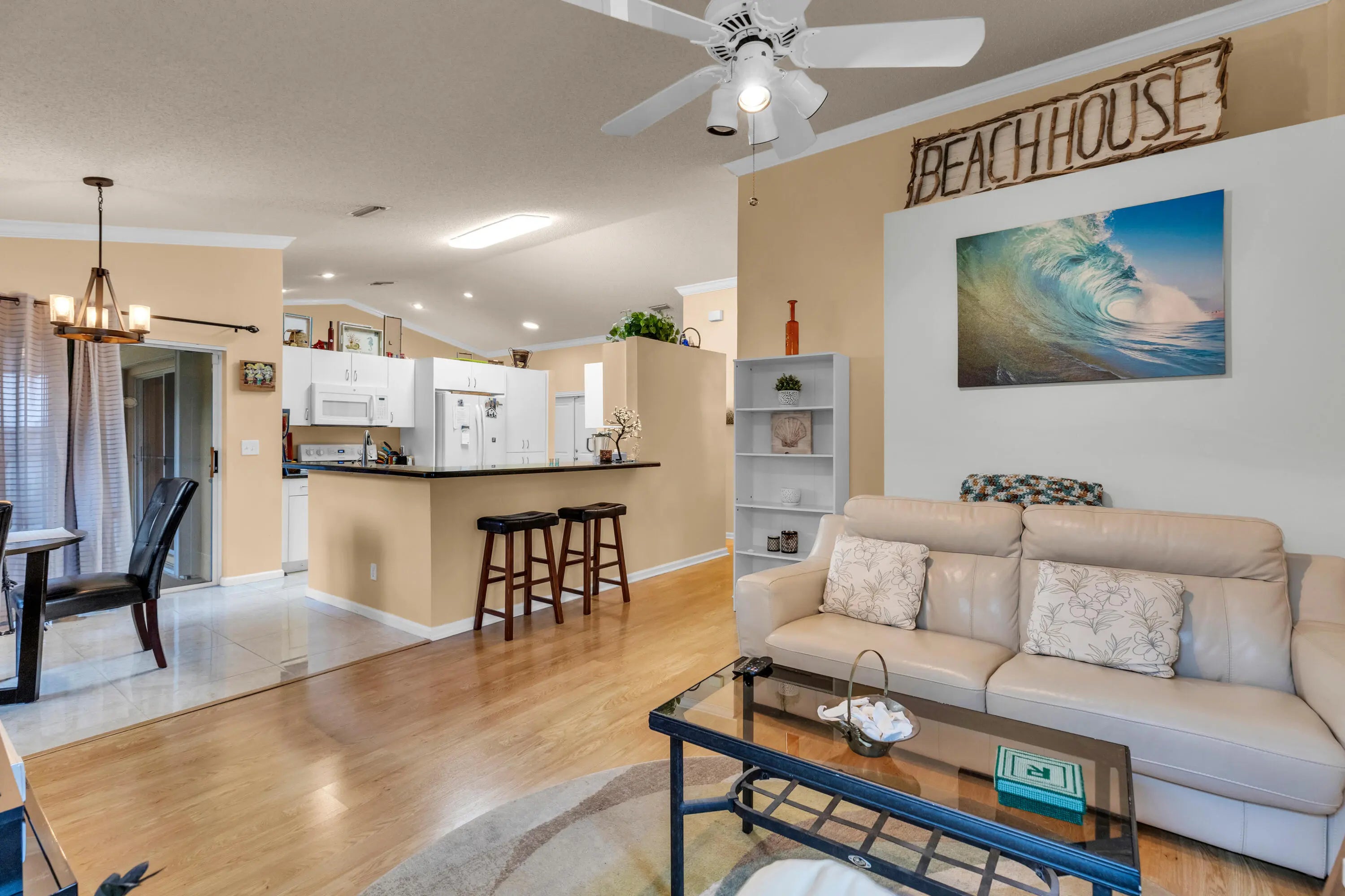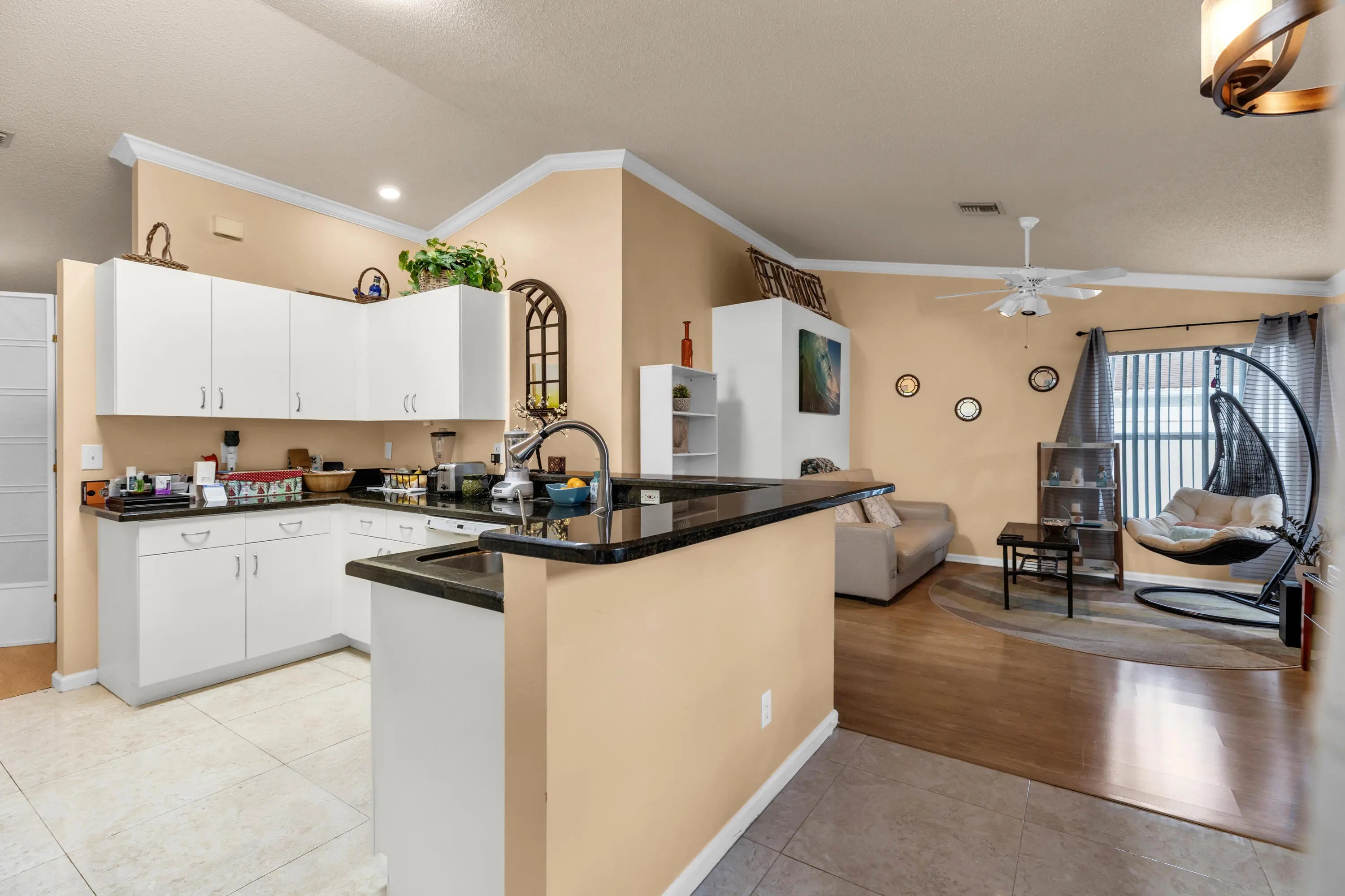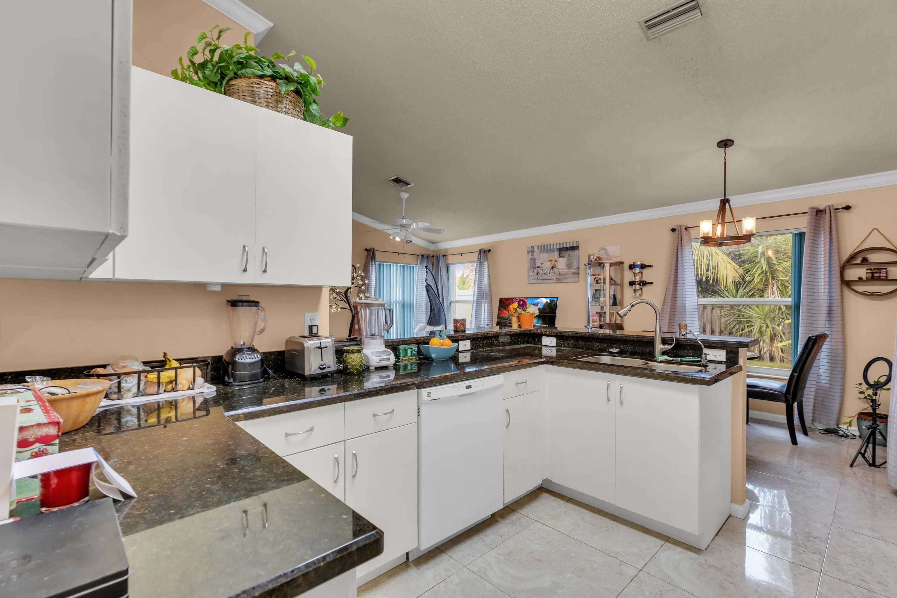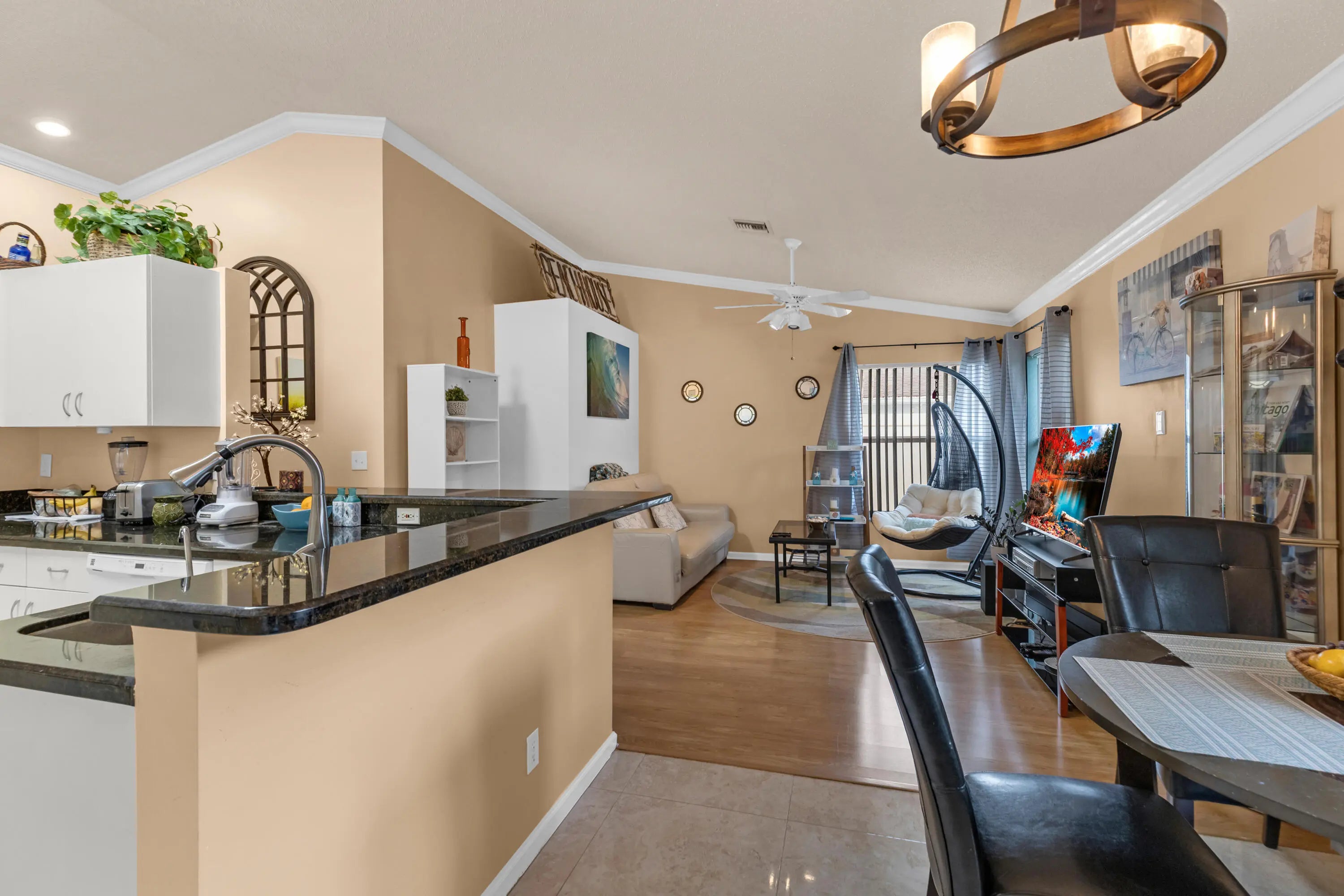 This well-maintained 3-bedroom, 2-bath single-family home is located in the desirable Cinnabar at Rainbow Lakes community, zoned for best rated schools, with the elementary school within walking distance.The home features impact windows, impact-rated front entry and garage doors, and accordion shutters on sliders, providing peace of mind and energy efficiency. A newer 2015 roof adds significant value.Inside, enjoy a bright, open layout with vaulted ceilings, a split-bedroom floor plan, and laminate flooring throughout the main living areas and two bedrooms, with tile in the kitchen and bathrooms. The updated kitchen offers granite countertops, newer faucet, ample cabinetry, and a full appliance package.
